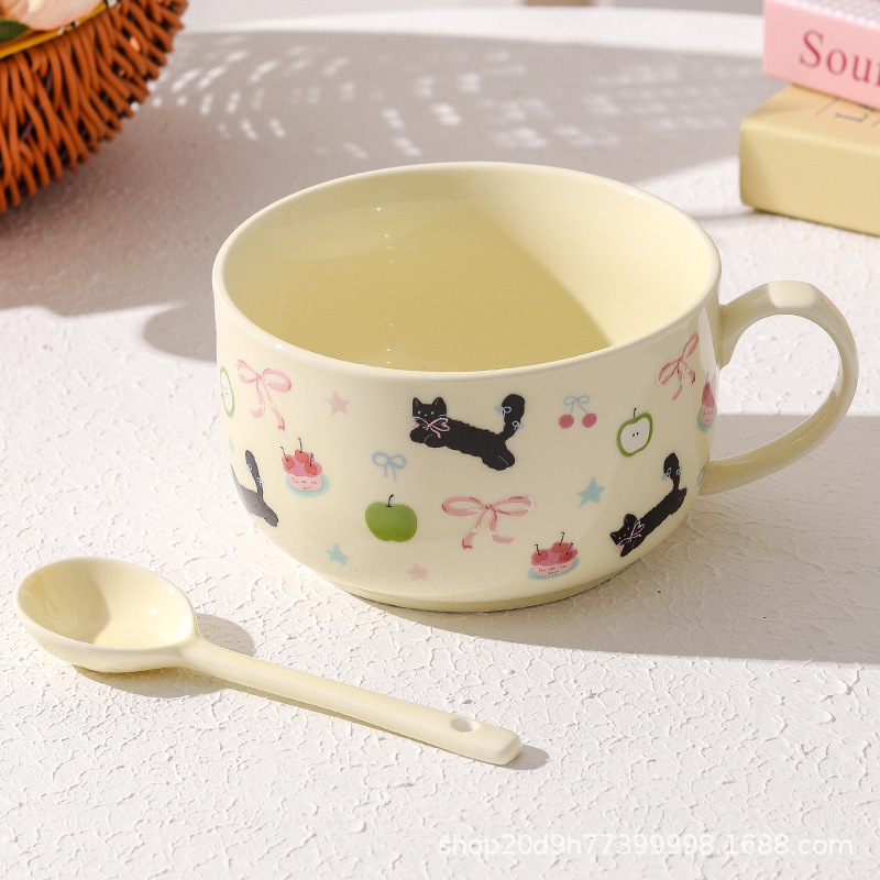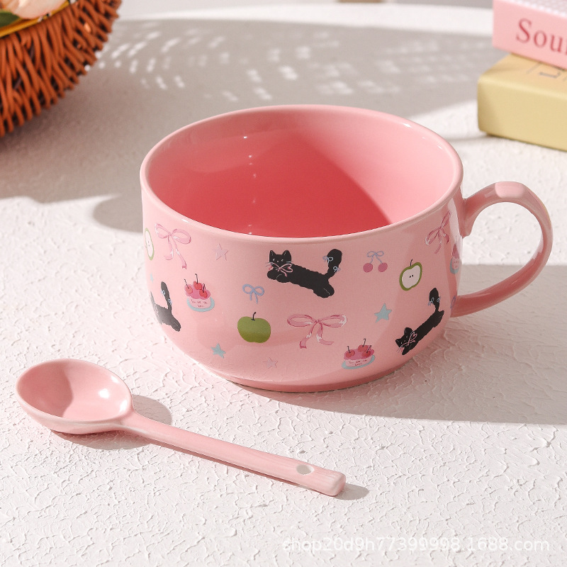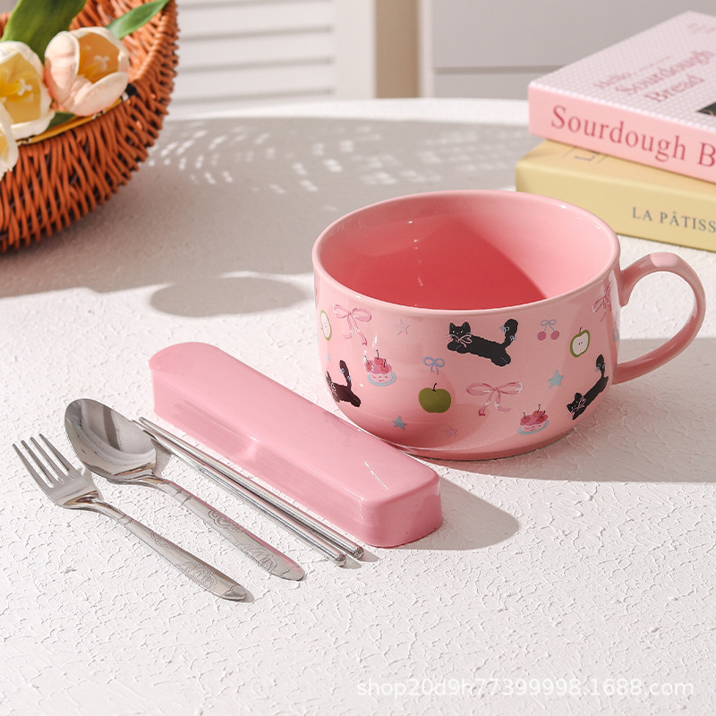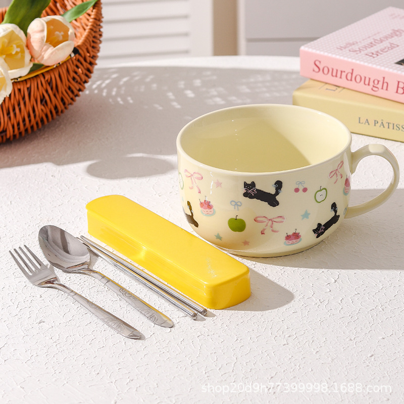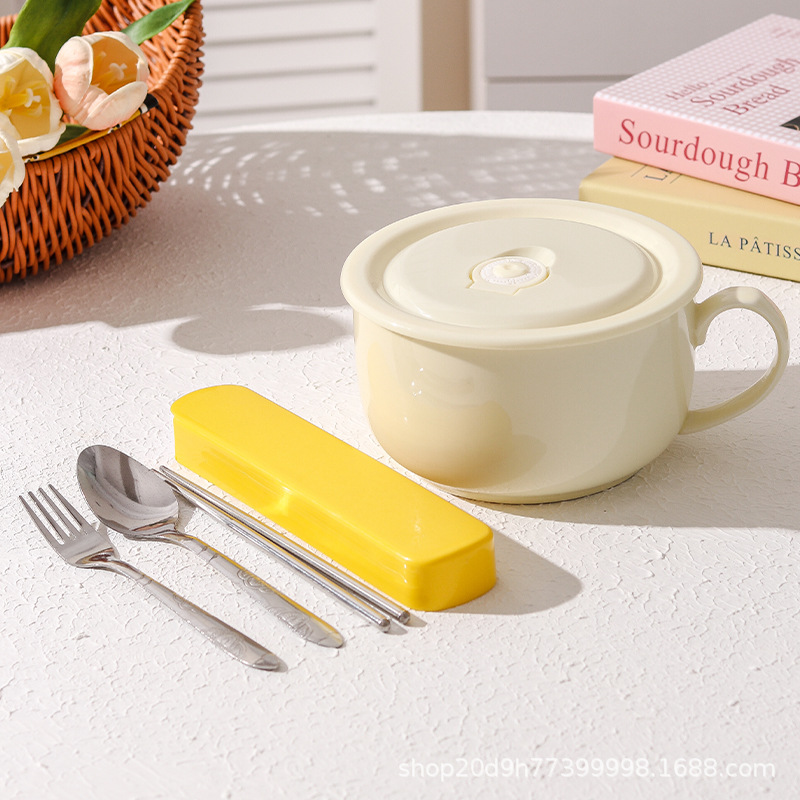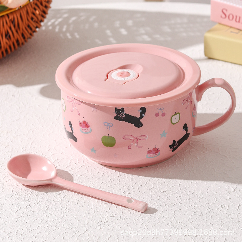 뚜껑 세라믹 국수 그릇 귀여운 여성 학생 기숙사 홈 수프 그릇 뚜껑 전자 레인지스토어 가기