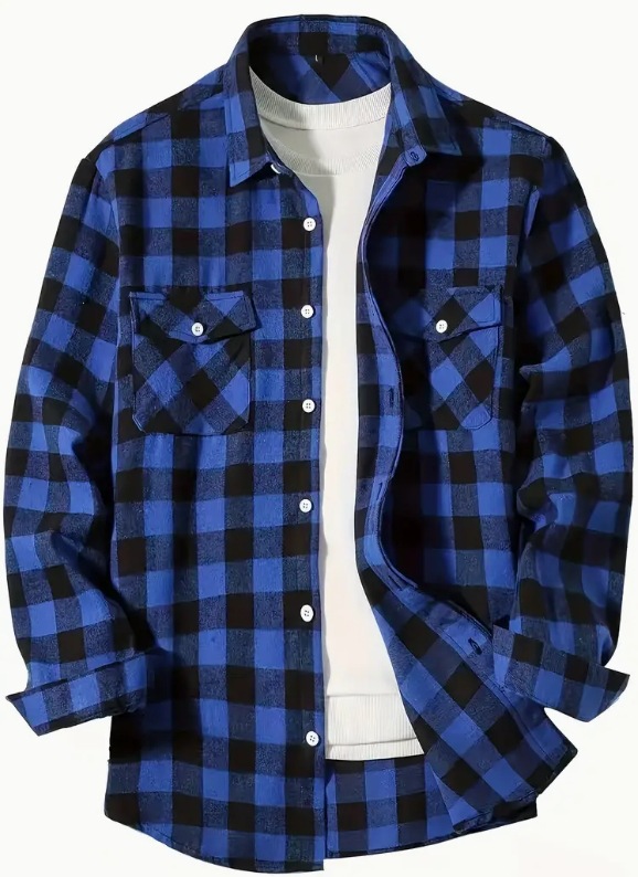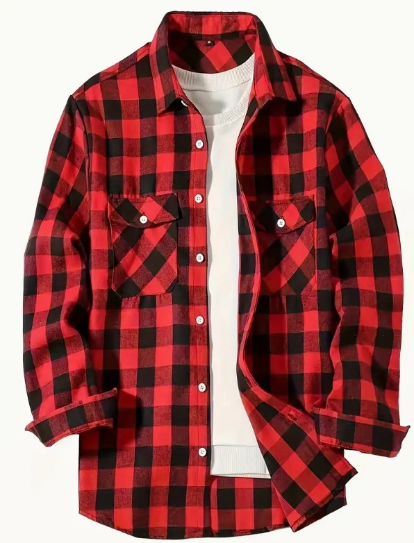 2025 새로운 Amazon Flannel 격자 무늬 후드 셔츠 유럽과 미국 사이즈 남성용 3 피스 더블 포켓 캡 셔츠