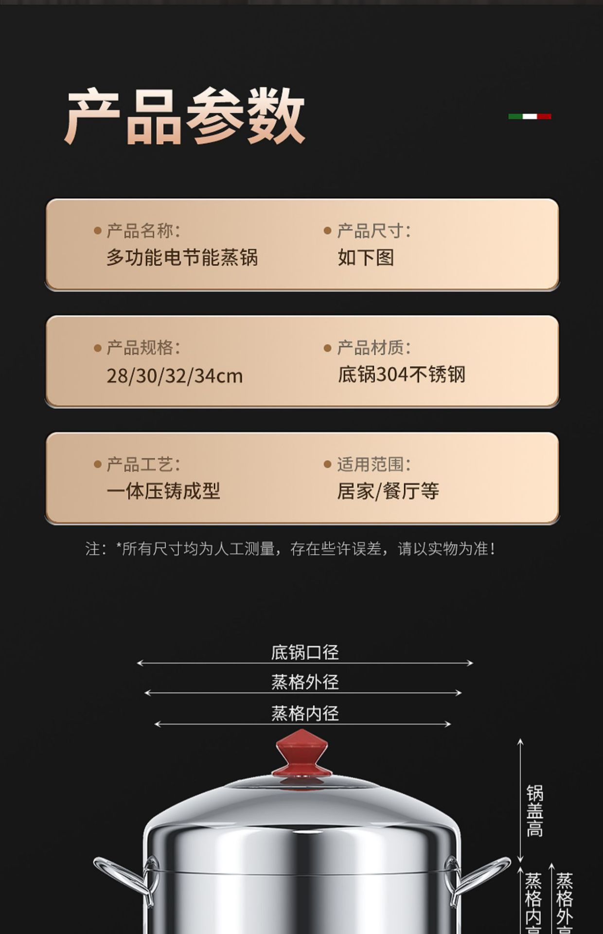 • 34cm 냄비 1개, 뚜껑 1개, 찜기 2개 (약 8~10명)