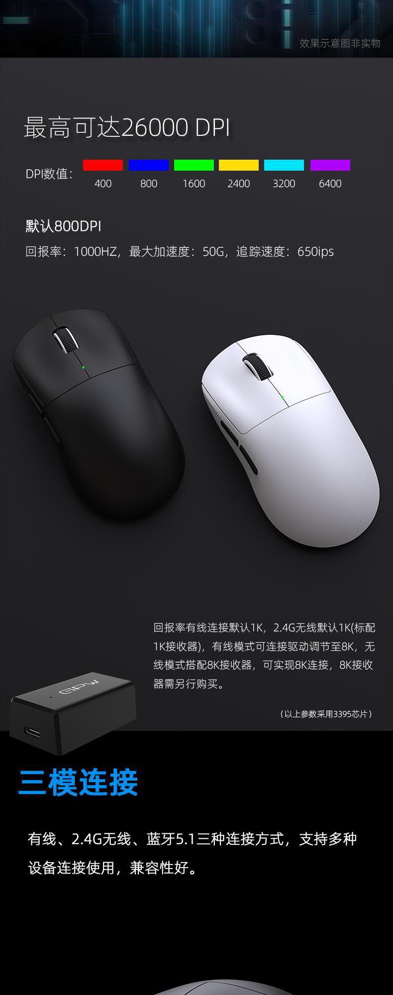 국경 간 GPW G3 e 스포츠 게임 마우스 무선 3 모드 경량 PAW3311 컴퓨터 헛소리 킹 gpw3스토어 가기