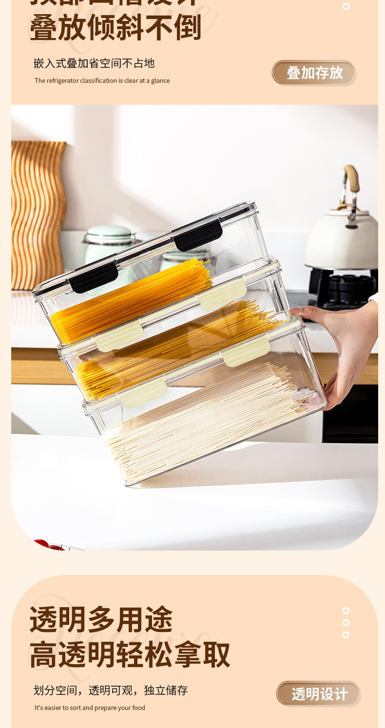 가정용 투명 국수 밀봉 상자 수분 방지 곤충 방지 대용량 스파게티 저장 상자 다기능 냉장고 신선한 보관 상자