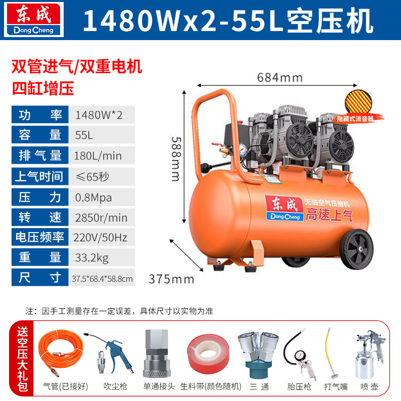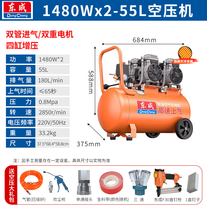 Dongcheng 공기 압축기 220V 새로운 오일 프리 자동 고압 공기 압축기 공기 펌프 스프레이 페인트 목공 장식 공기 파운드스토어 가기