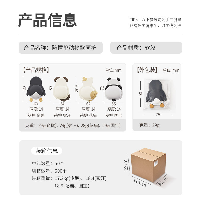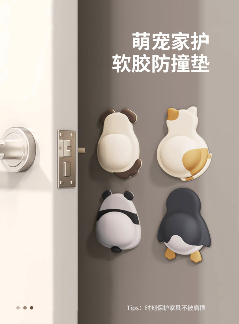 귀여운 애완동물 충돌 방지 패드, 부드러운 고무 도어 스티커, 충돌 방지 도구, 가전제품 도어 뒤 벽 스티커, 펭귄, 팬더 완충 패드 도매스토어 가기