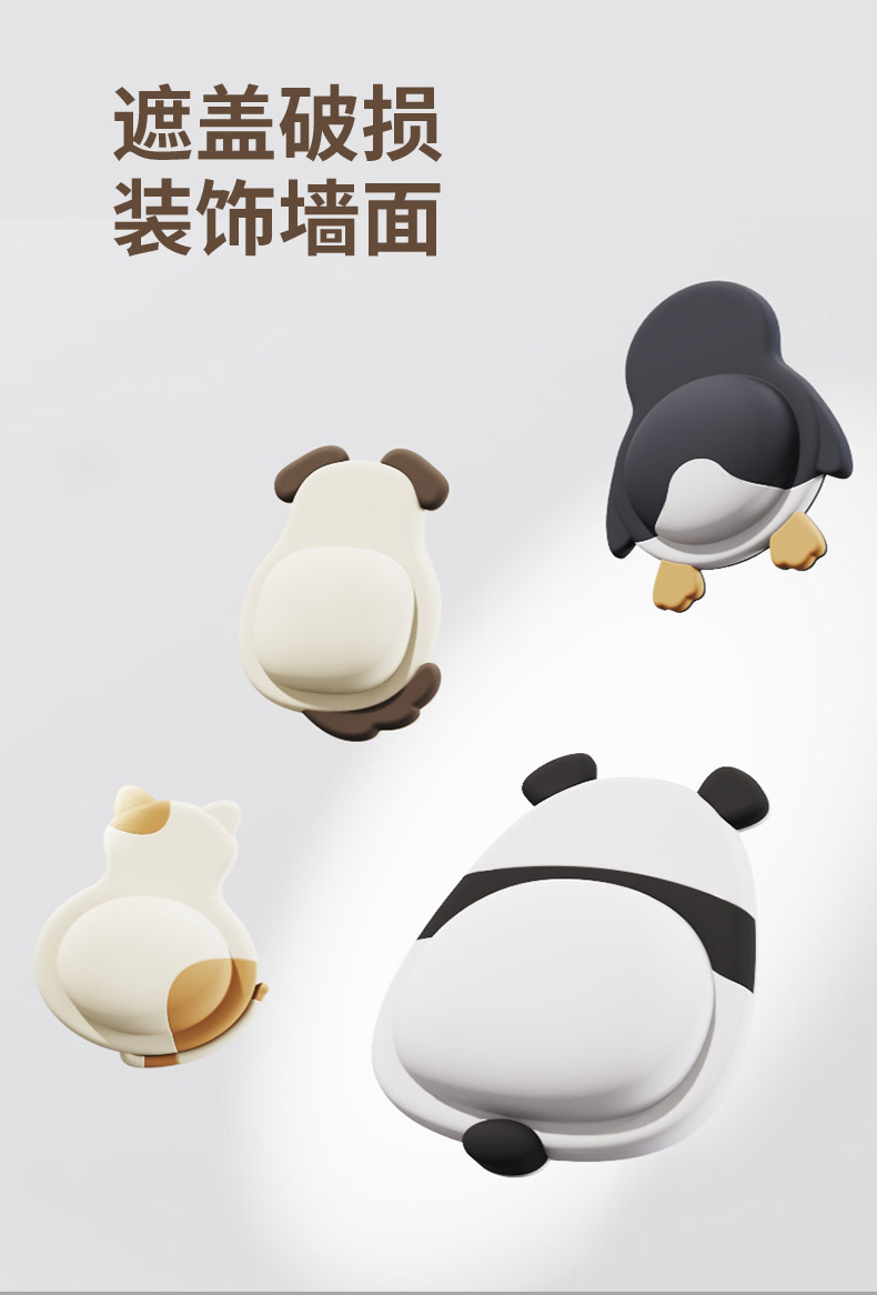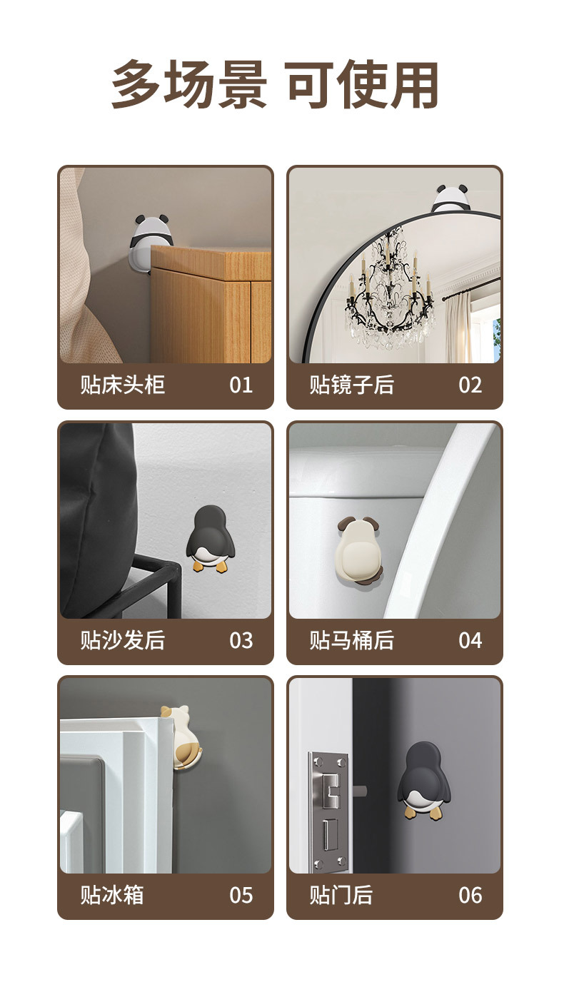 귀여운 애완동물 충돌 방지 패드, 부드러운 고무 도어 스티커, 충돌 방지 도구, 가전제품 도어 뒤 벽 스티커, 펭귄, 팬더 완충 패드 도매