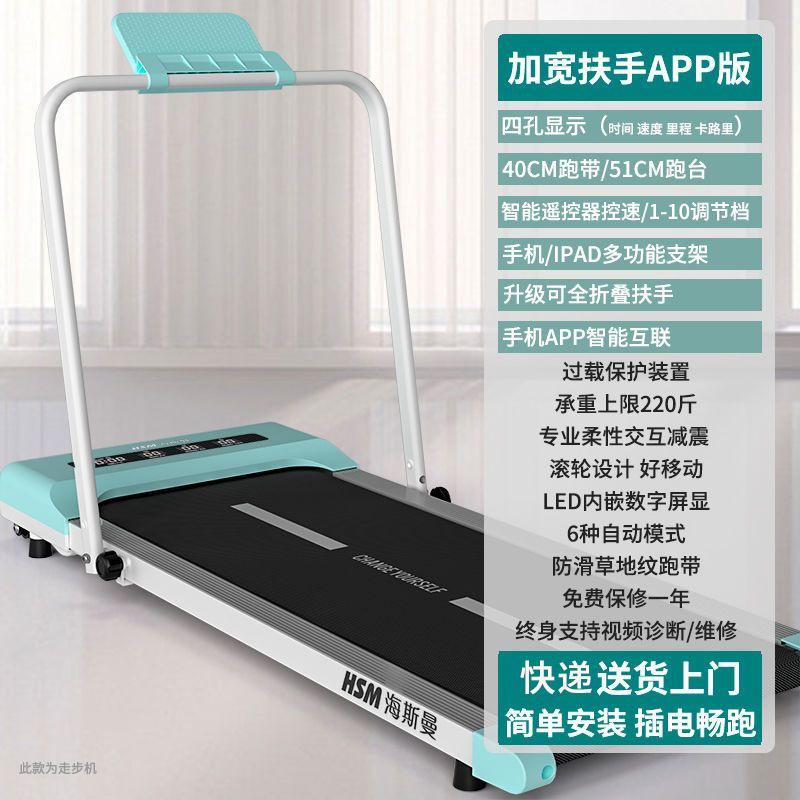 • [블루 51 런닝머신] 가로형 팔걸이-지능형 연결/속도 제어-원격 속도 제어-