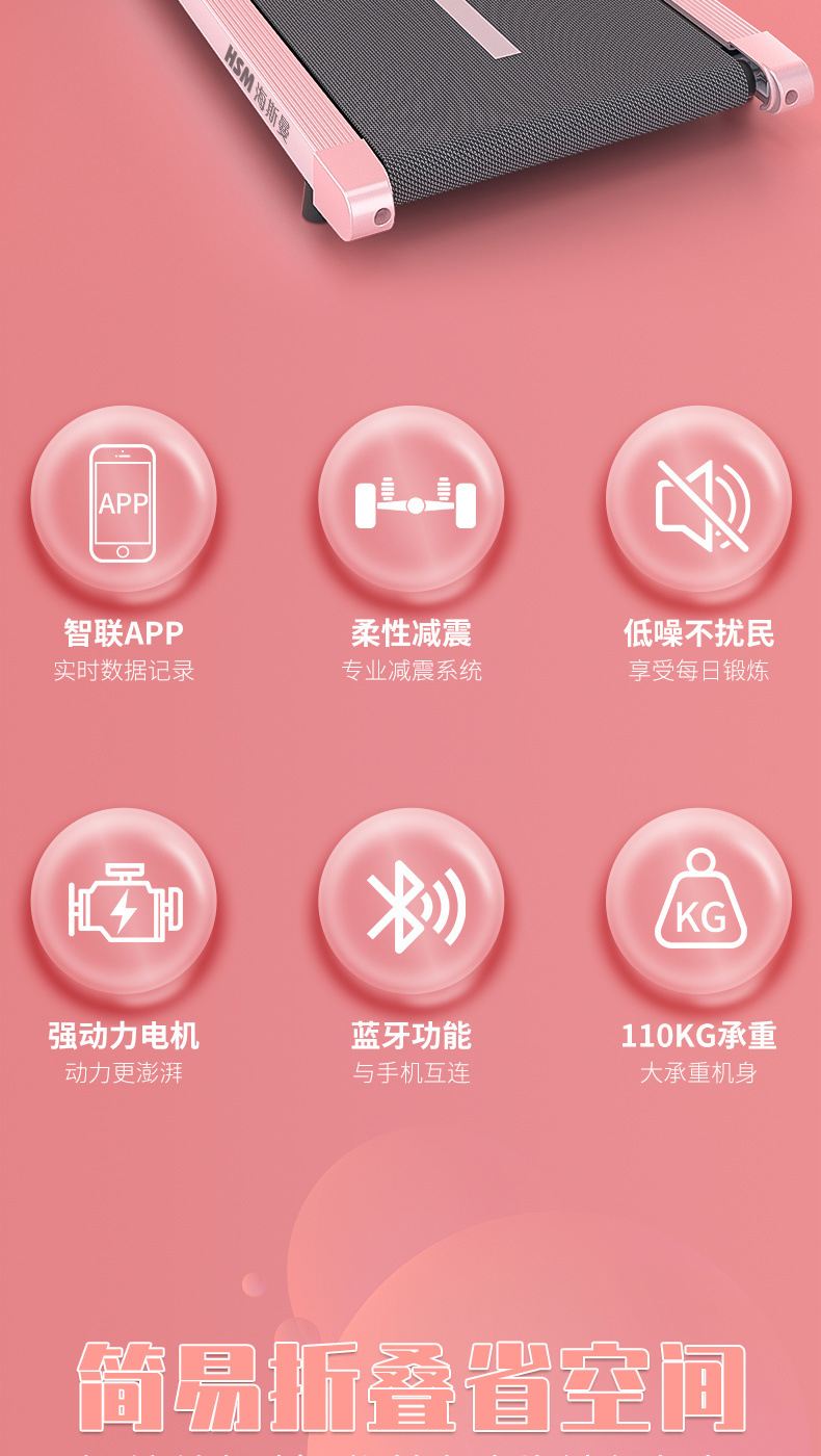 • [핑크 51 런닝머신] 지능형 연결/속도 제어-원격 속도 제어/휴대폰 홀더
