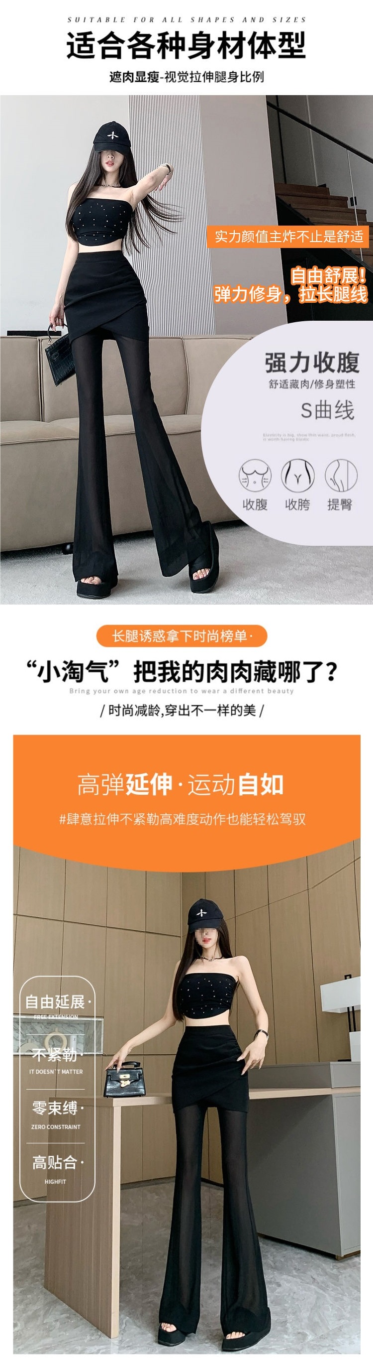 가짜 투피스 퀼로트, 살짝 드레이프한 디자이너 힙 커버, 엉덩이 커버, 바닥 길이 쉬폰 팬츠, 여성용 2024 새로운 스타일스토어 가기