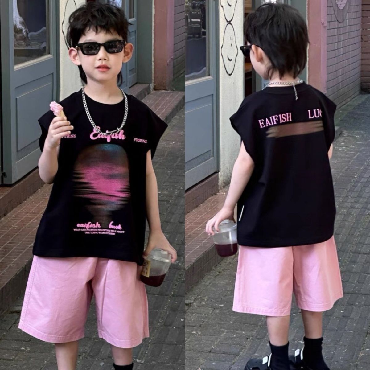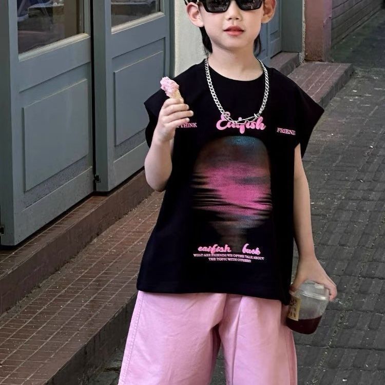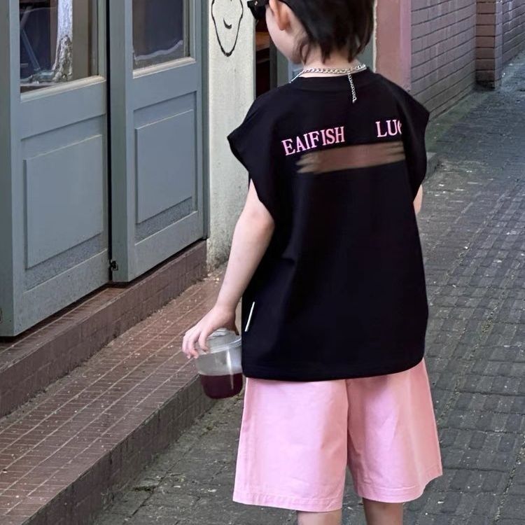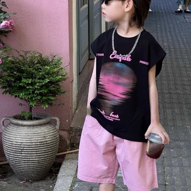 순면 민소매 조끼, 중대형 어린이 남아용 여름 2025 신상 스타일리시한 아동용 멋진 민소매 얇은 조끼스토어 가기