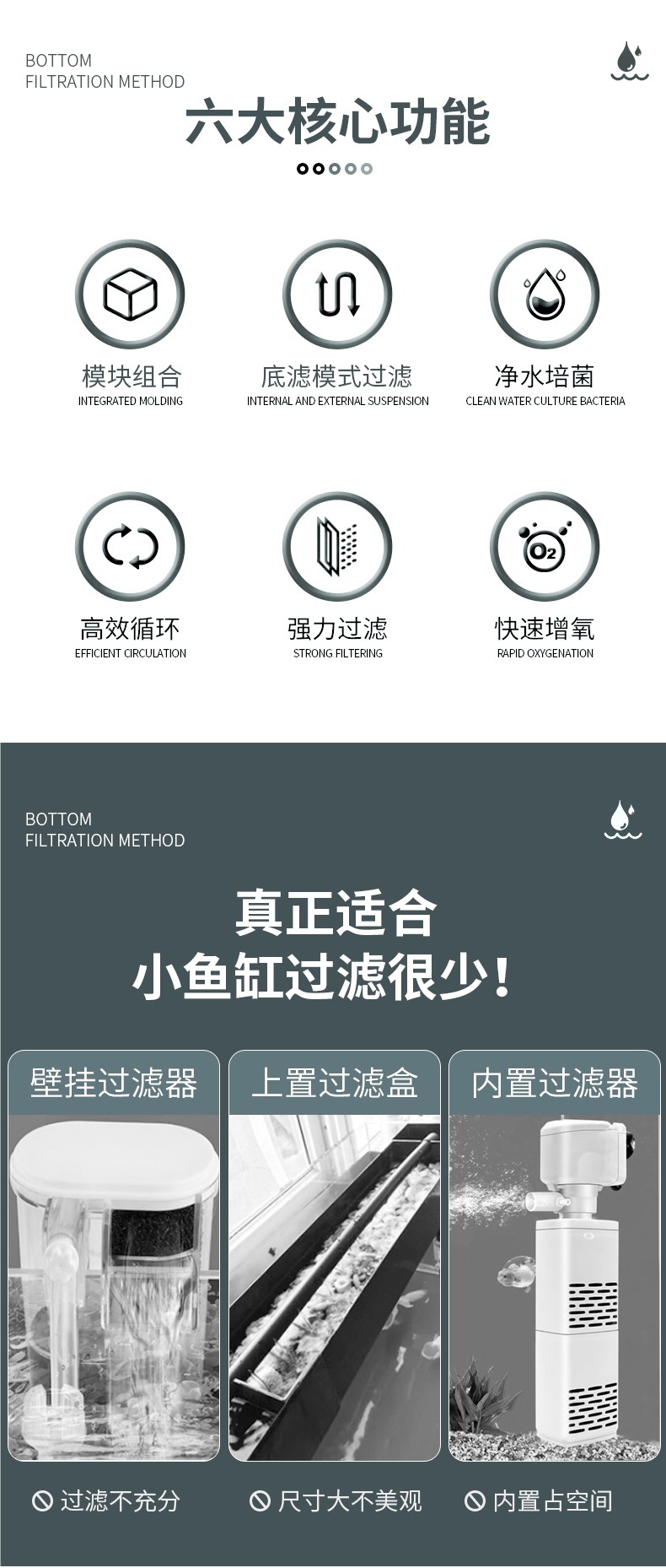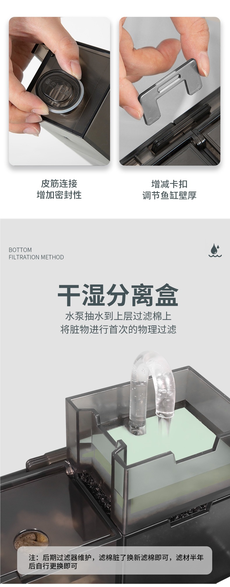 수조 필터 3-in-1 산소화 거북이 탱크 필터 상단 필터 벽걸이형 드립 박스 바닥 필터 내장 상단 순환
