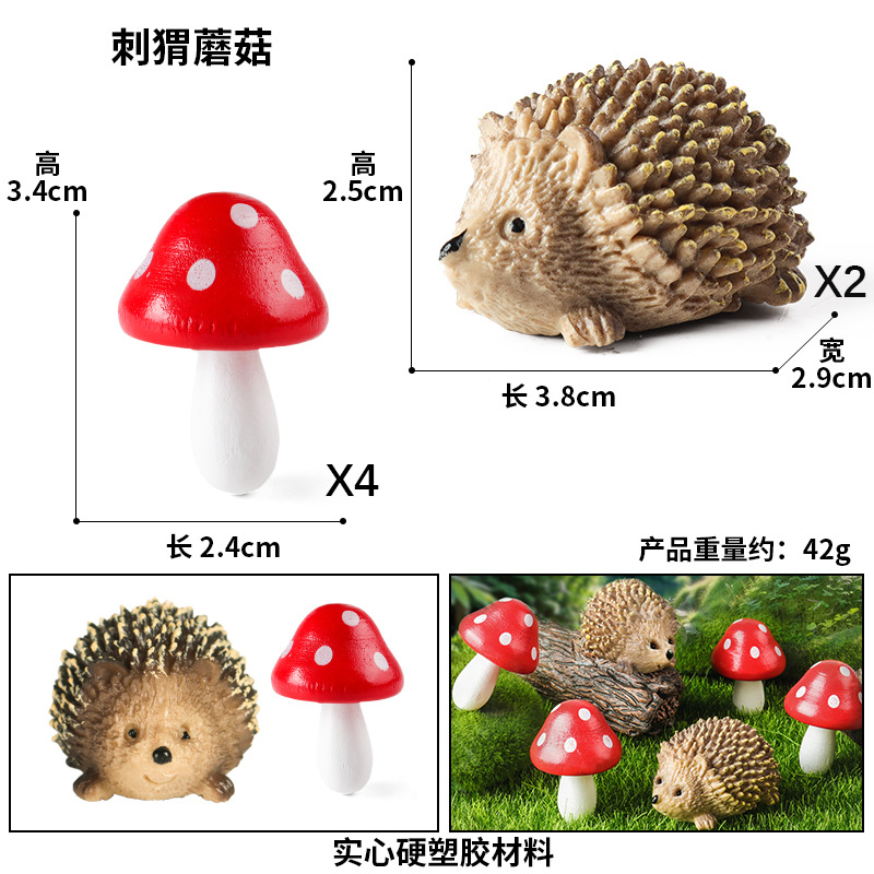 국경 간 시뮬레이션 야생 동물 세트 미니 버섯 고슴도치 마이크로 조경 장식 장식 어린이 가족스토어 가기