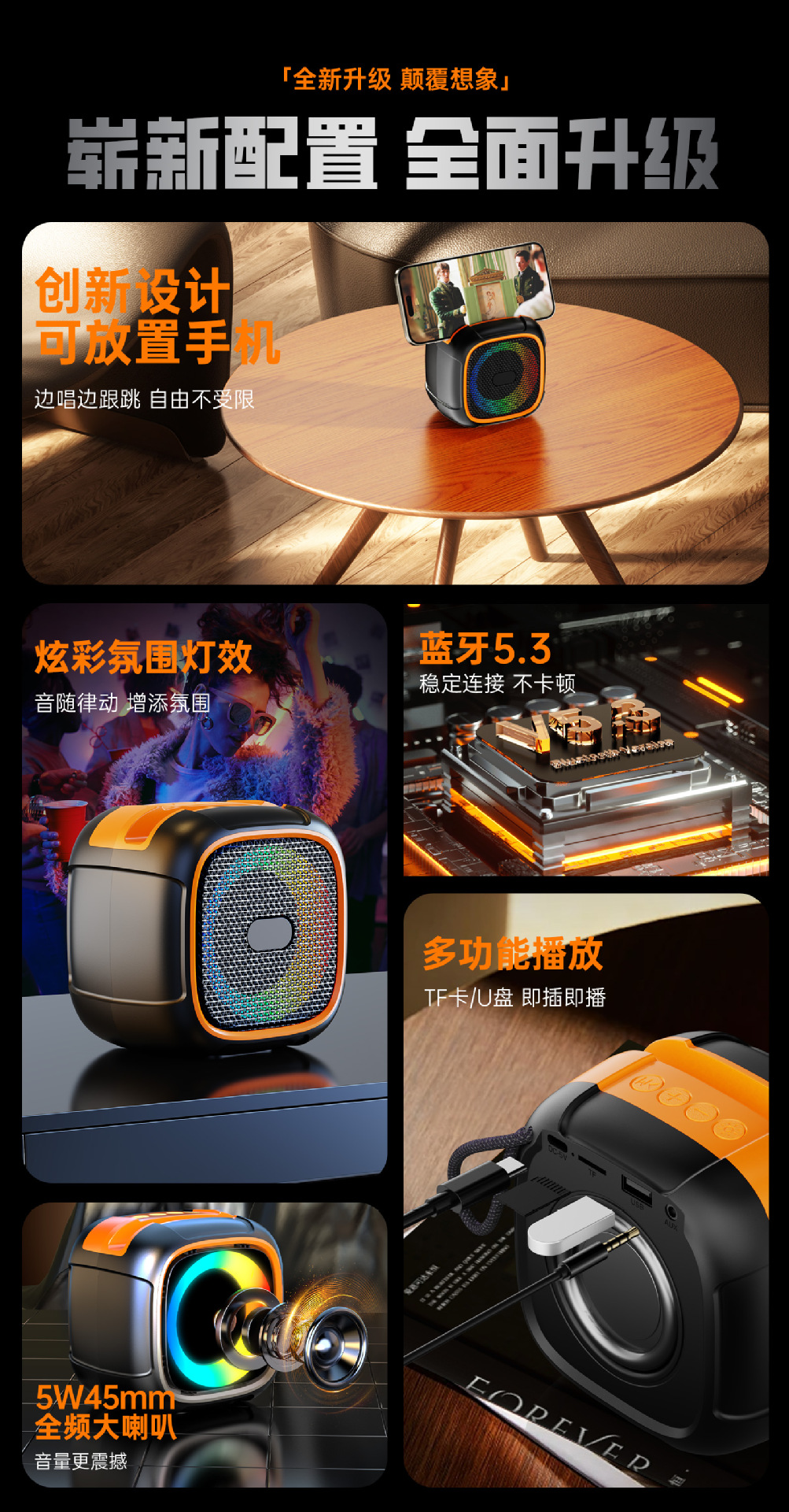 폭발적인 창조적 인 휴대 전화 스탠드 오디오 무선 미니 블루투스 스피커 야외 휴대용 작은 강철 대포 서브 우퍼
