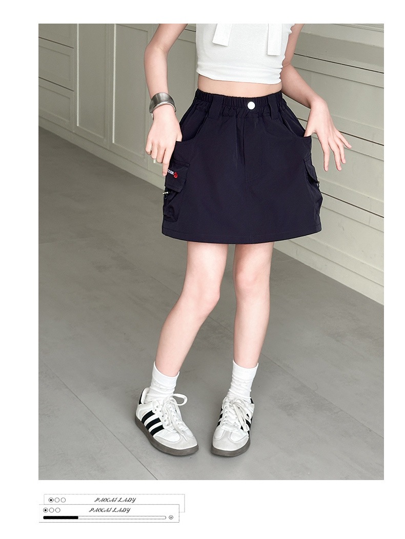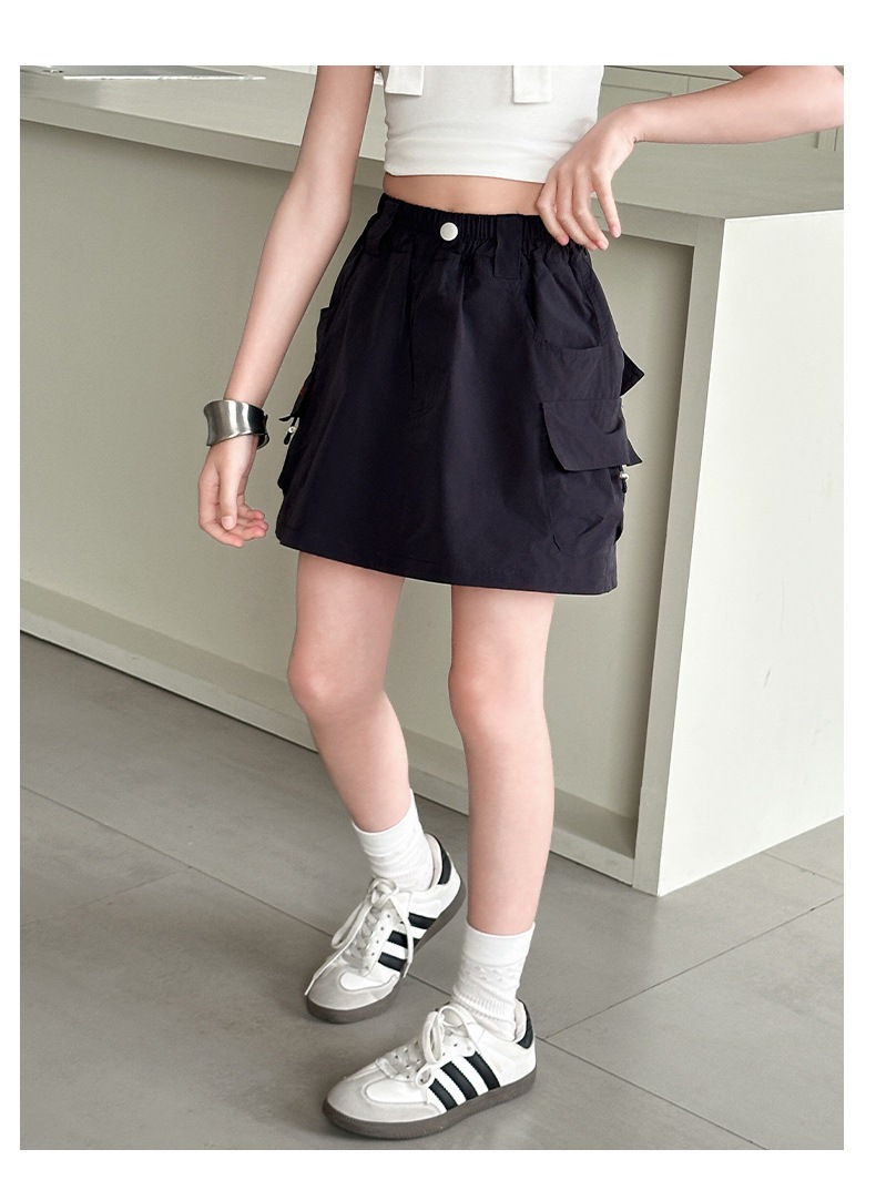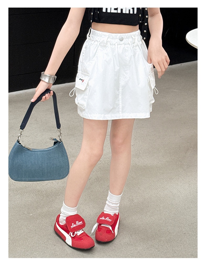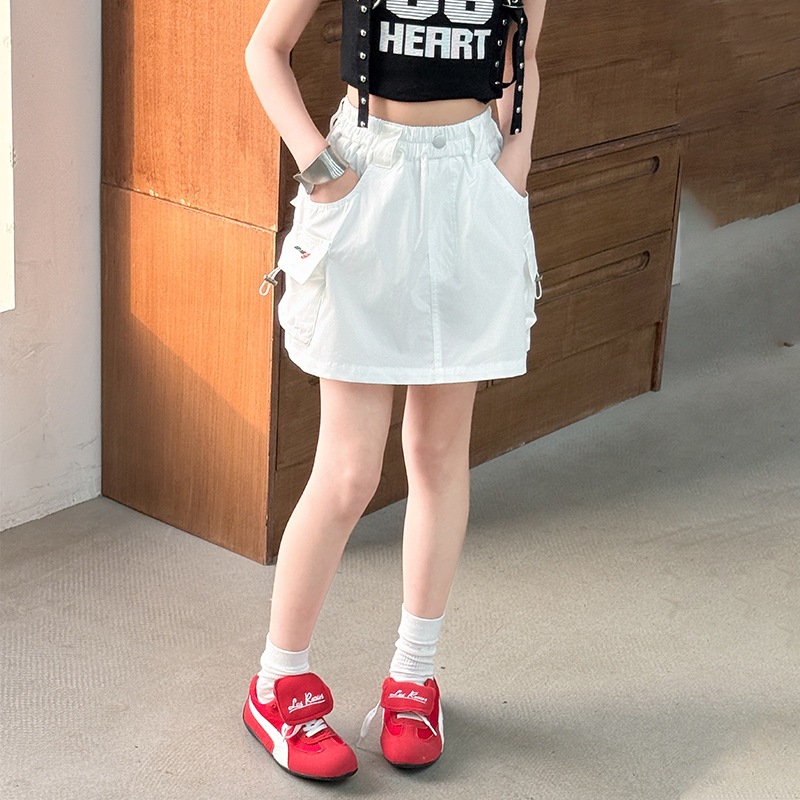 여자 작업복 스커트 큰 어린이 여름 캐주얼 스포츠 스커트 여자 얇은 흰색 스커트 2025 여름스토어 가기