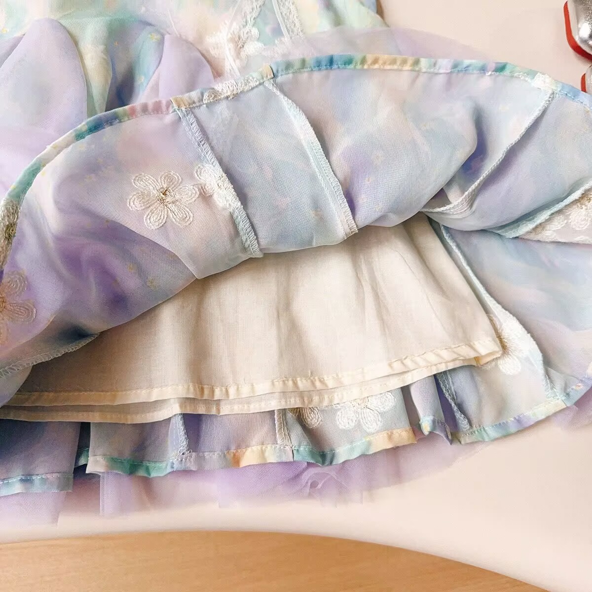 소녀 원피스 2025 여름 새로운 꽃 메쉬 빈 스커트 민소매 공주 스커트 크로스 보더 헤어