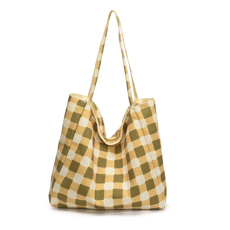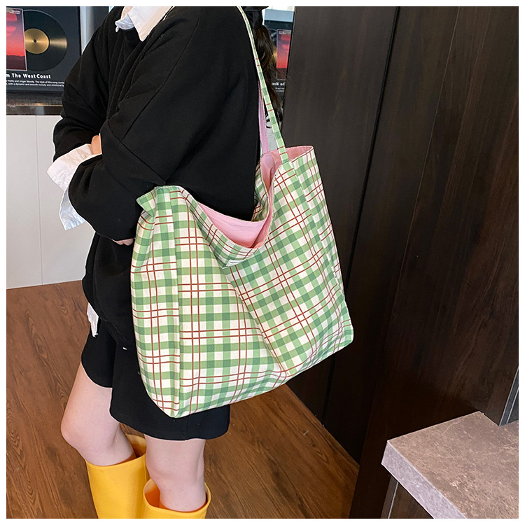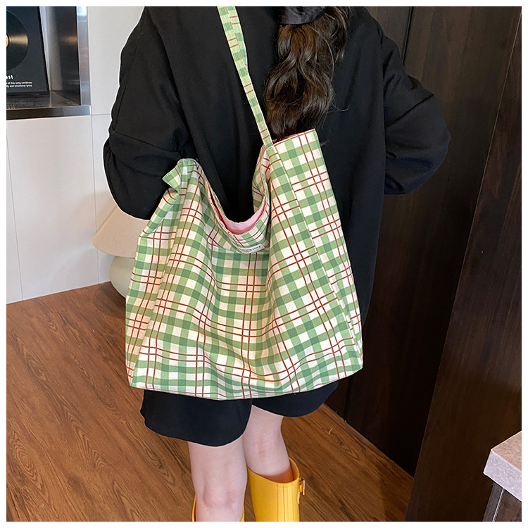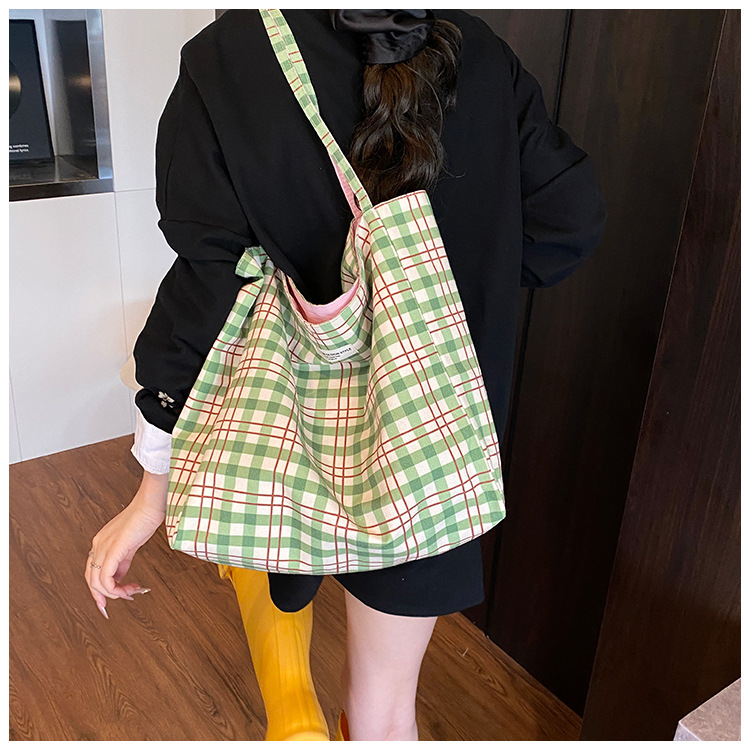 영국 스타일 봄과 여름 격자 무늬 가방 신선한 대학 스타일 어깨 나일론 천 가방 대용량 게으른 스타일 가방 여성용 가방