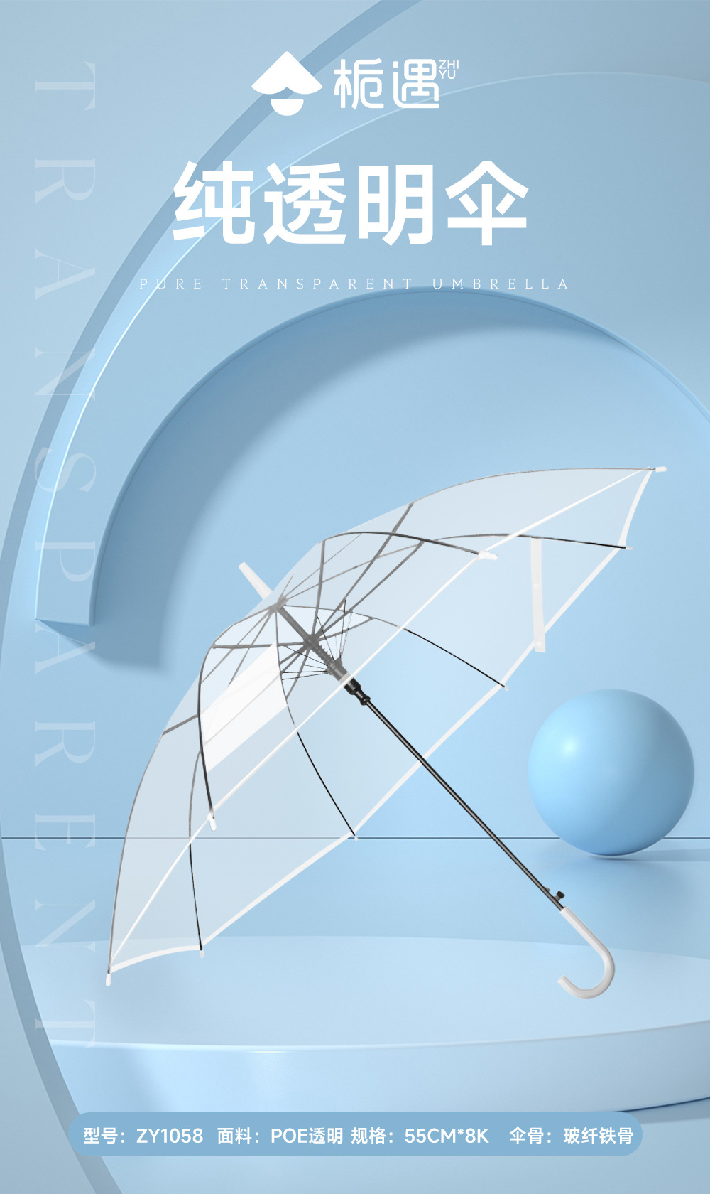 • 8본 긴 손잡이 POE 반투명 우산 모델: ZY1130