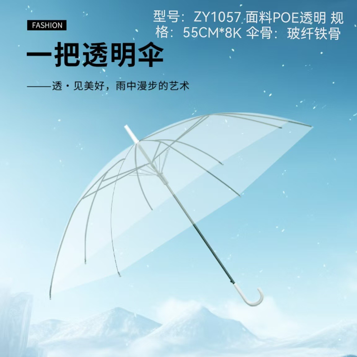 • 8본 긴 손잡이 POE 반투명 우산 모델: ZY1136