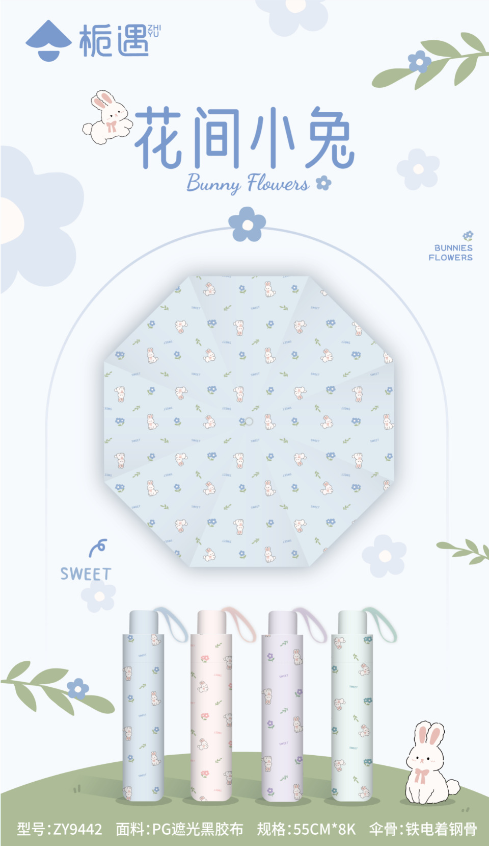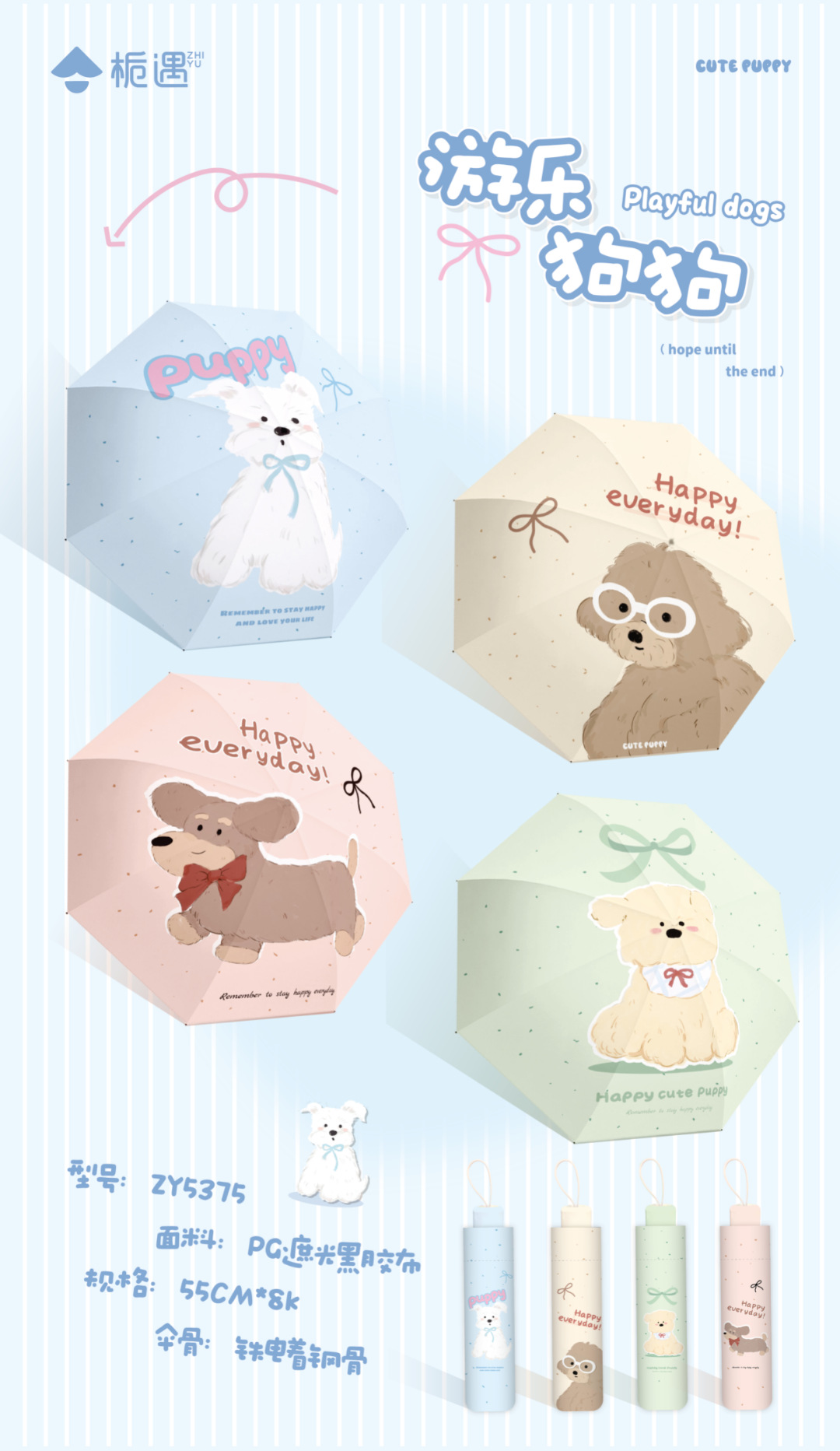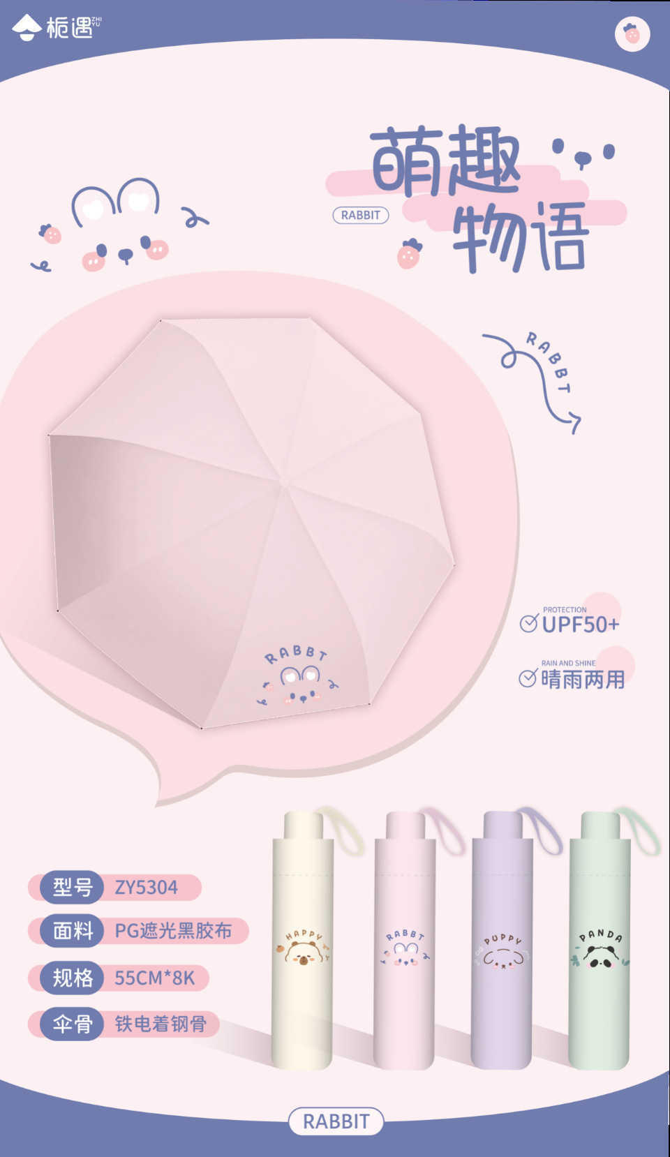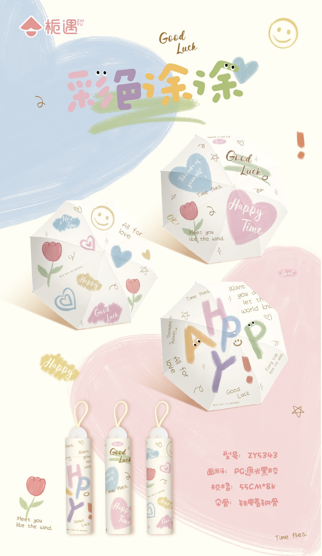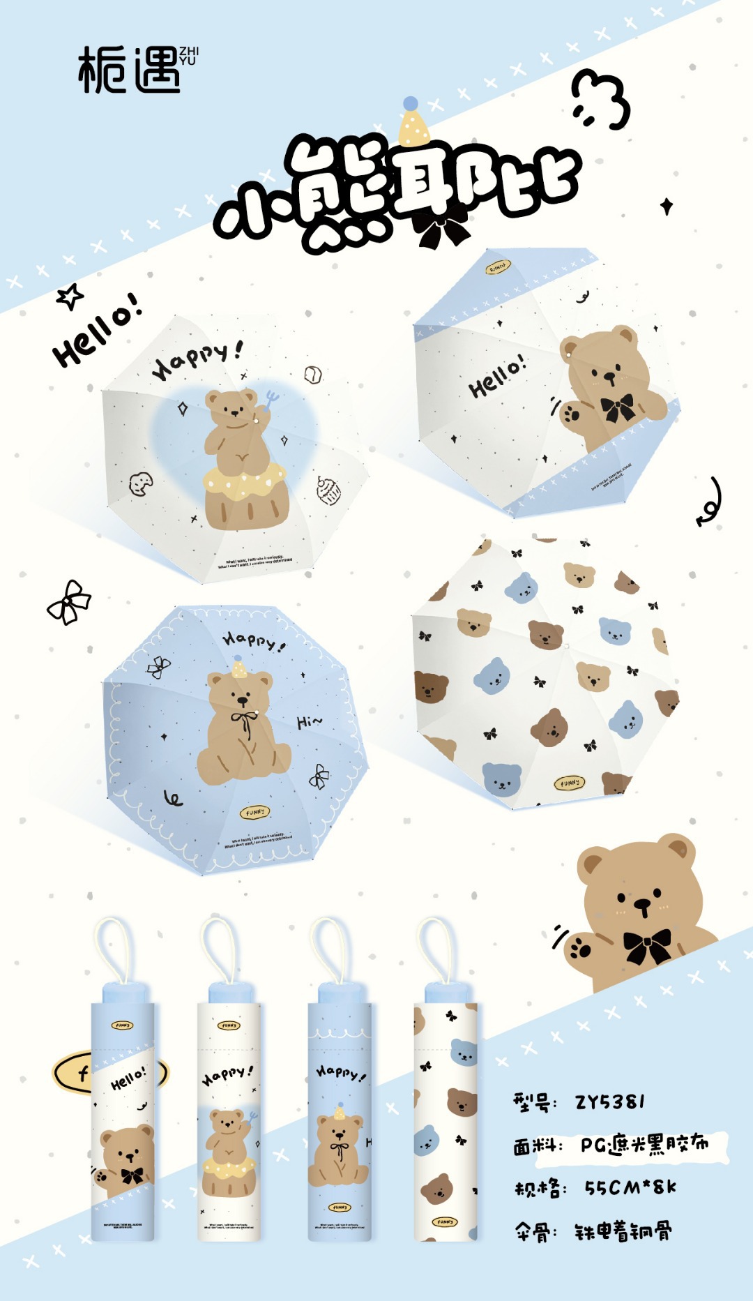 Zhiyu 공장 직접 만화 작은 신선한 태양 우산 검은 고무 선 스크린 우산 이중 사용 도매스토어 가기