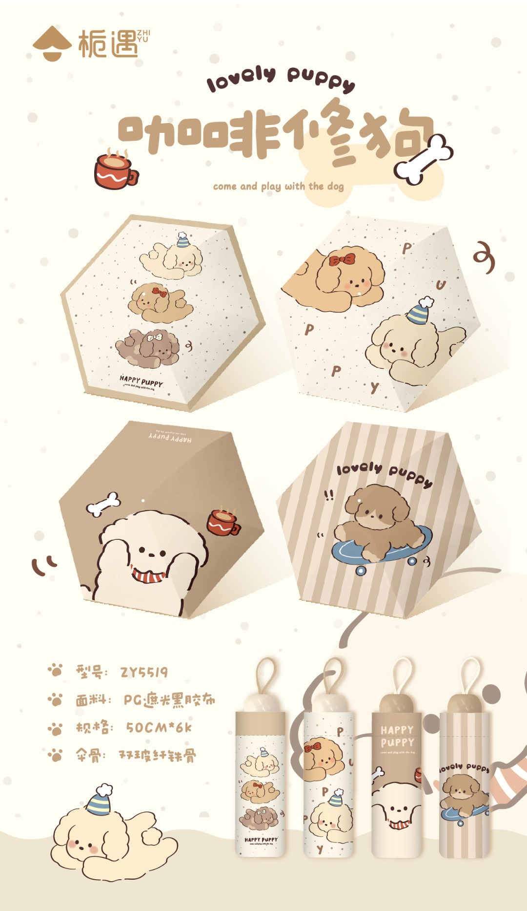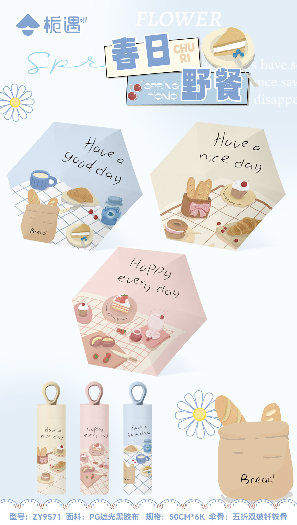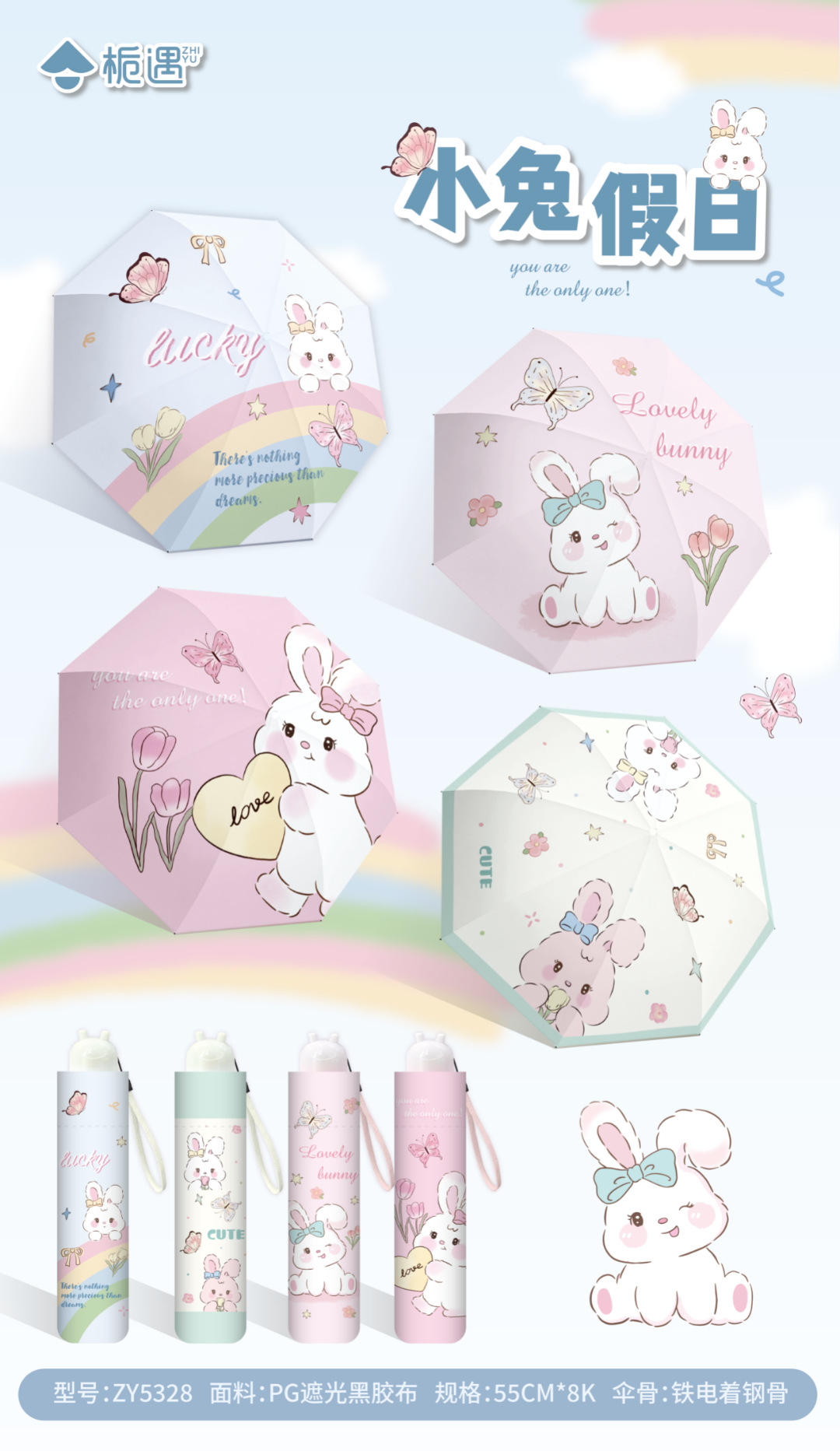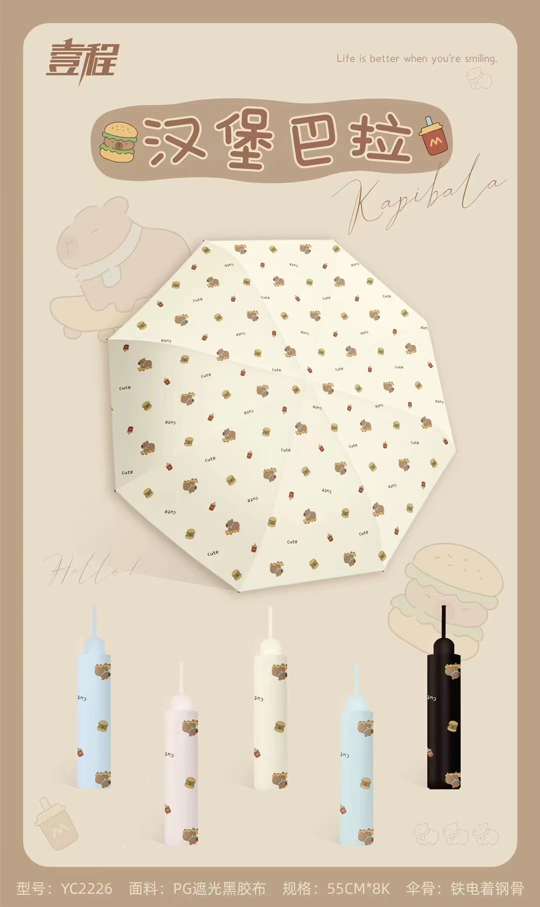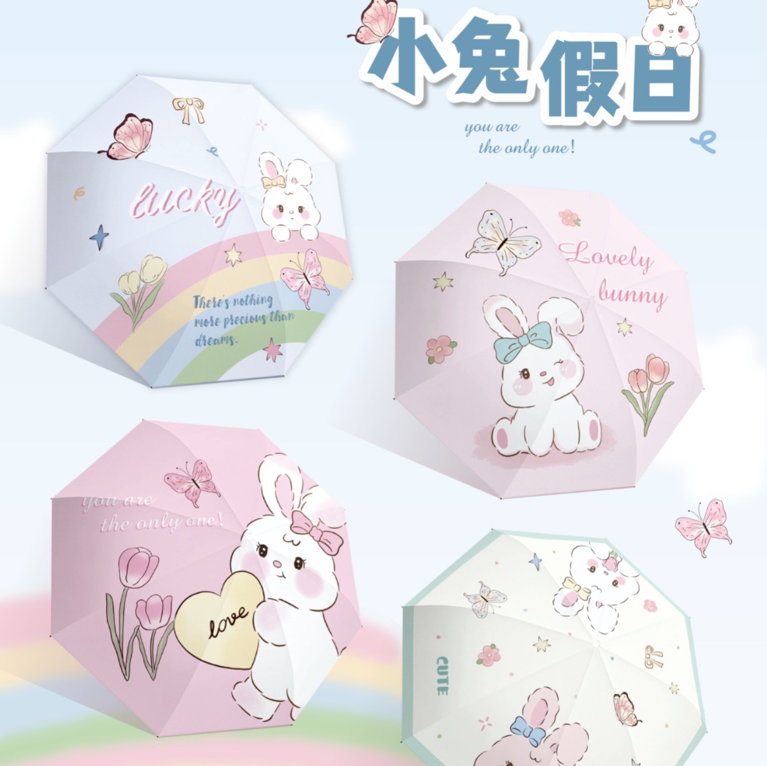 Zhiyu 공장 직접 만화 작은 신선한 태양 우산 검은 고무 선 스크린 우산 이중 사용 도매스토어 가기