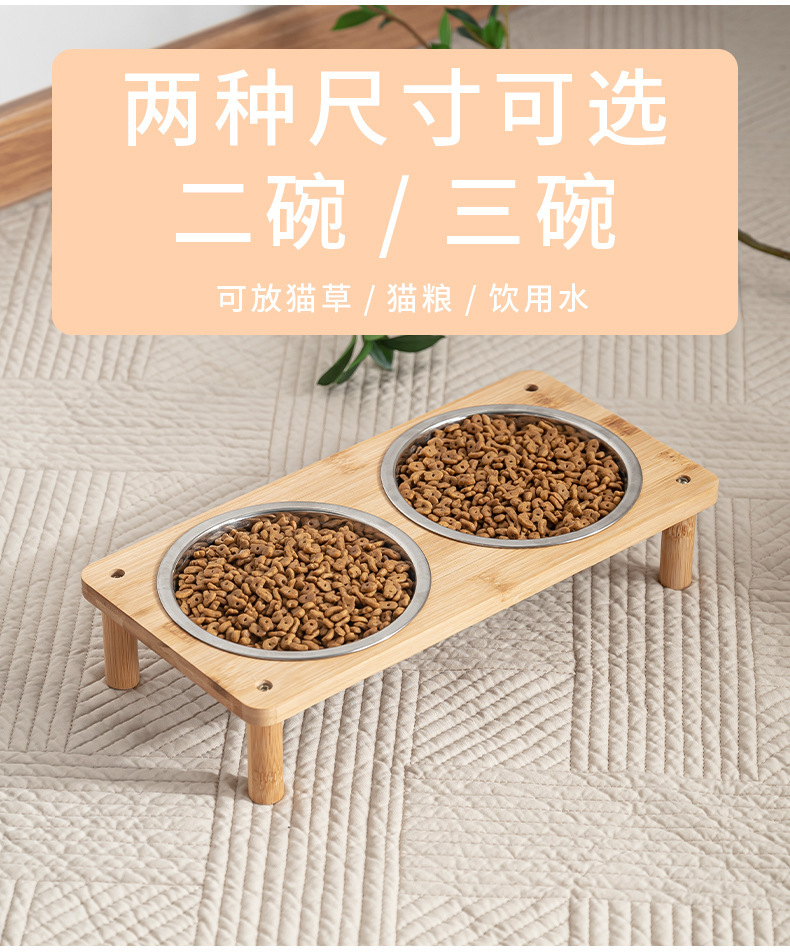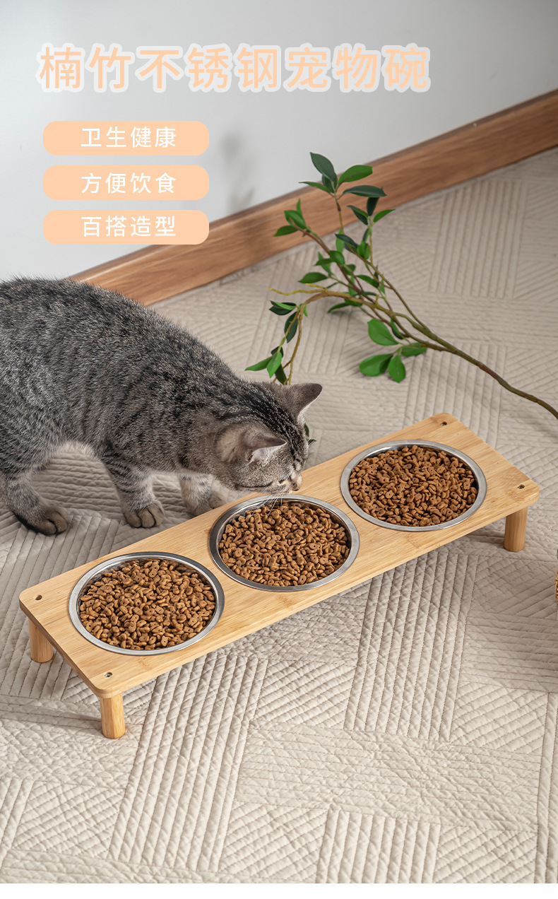 25 국경 간 단단한 나무 대나무 애완 동물 용품 고양이 사료 그릇 스테인레스 스틸 그릇 고양이와 개를위한 넘어짐 방지 사료 그릇스토어 가기