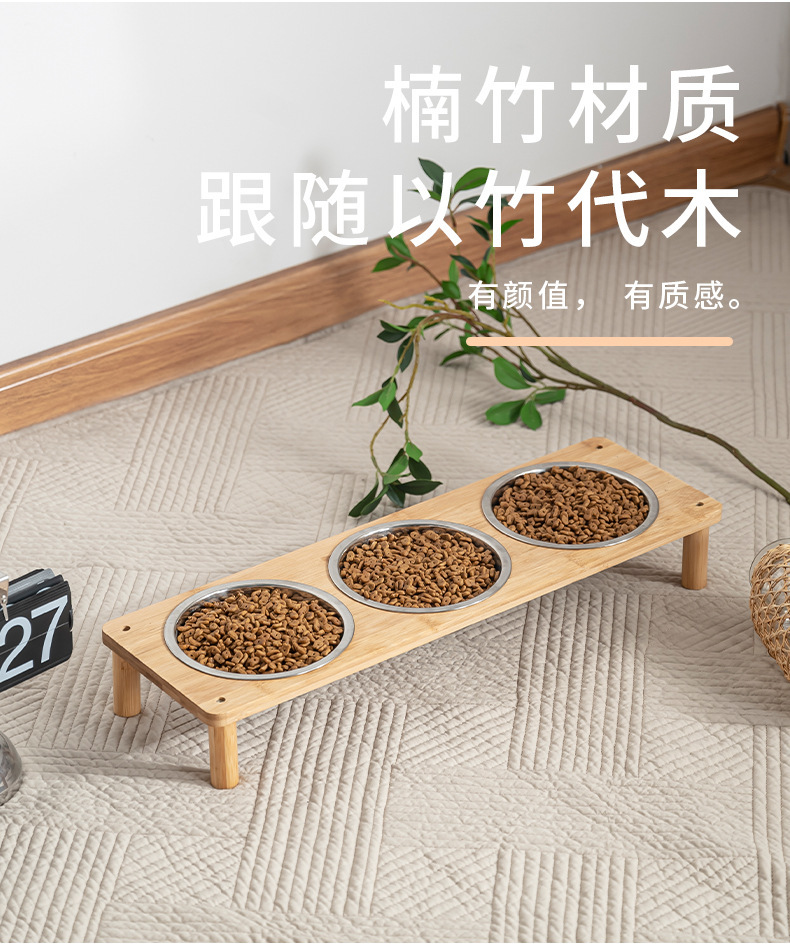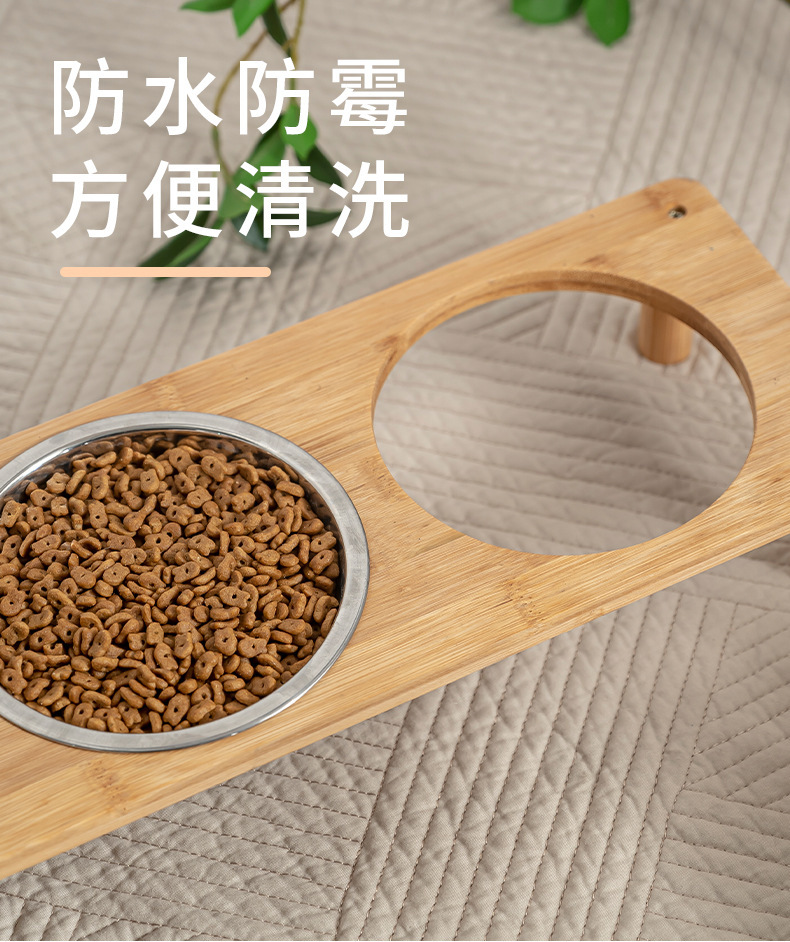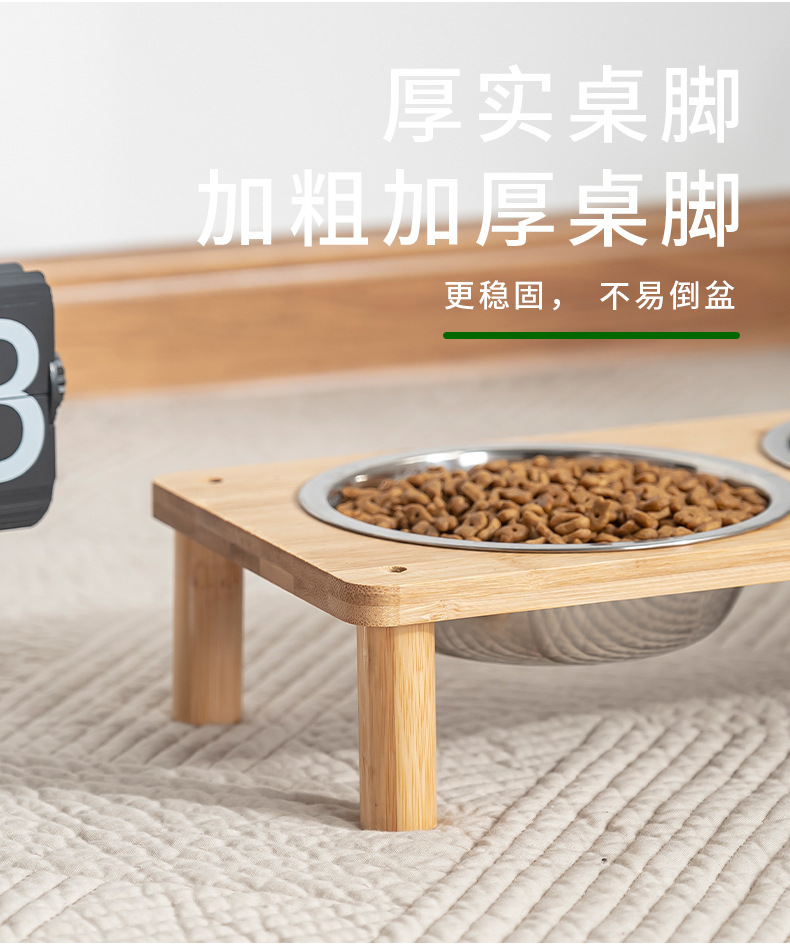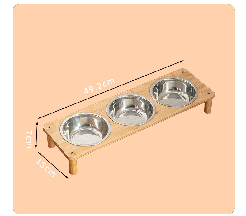 25 국경 간 단단한 나무 대나무 애완 동물 용품 고양이 사료 그릇 스테인레스 스틸 그릇 고양이와 개를위한 넘어짐 방지 사료 그릇