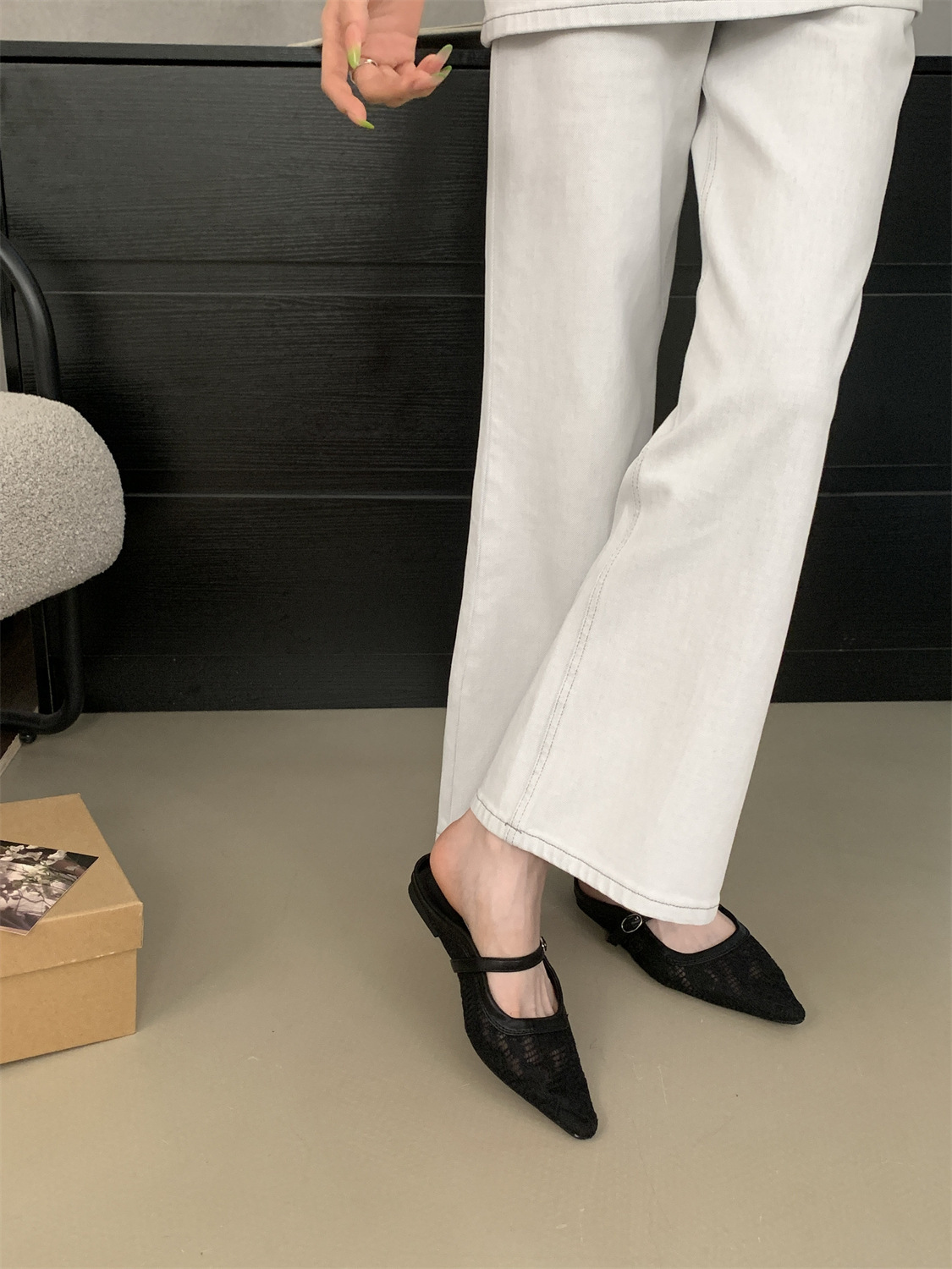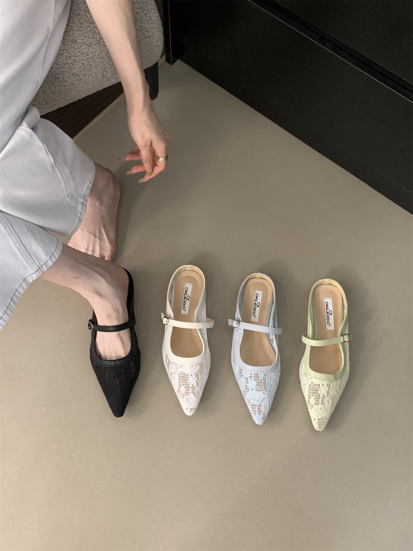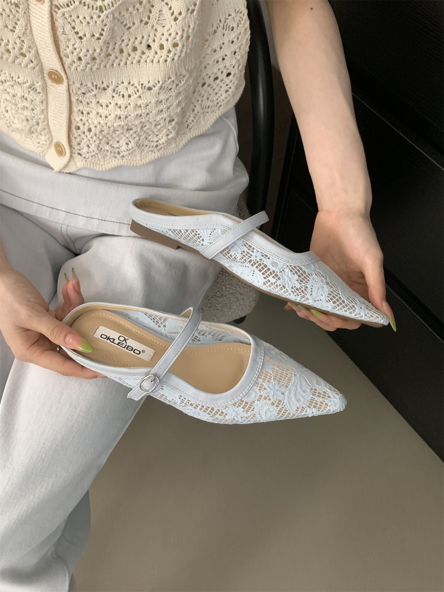 메쉬가 있는 여름용 자수 슬리퍼, 새로운 스타일의 하프 포인티드 여성용 쿨 2025 슬리퍼 레이스