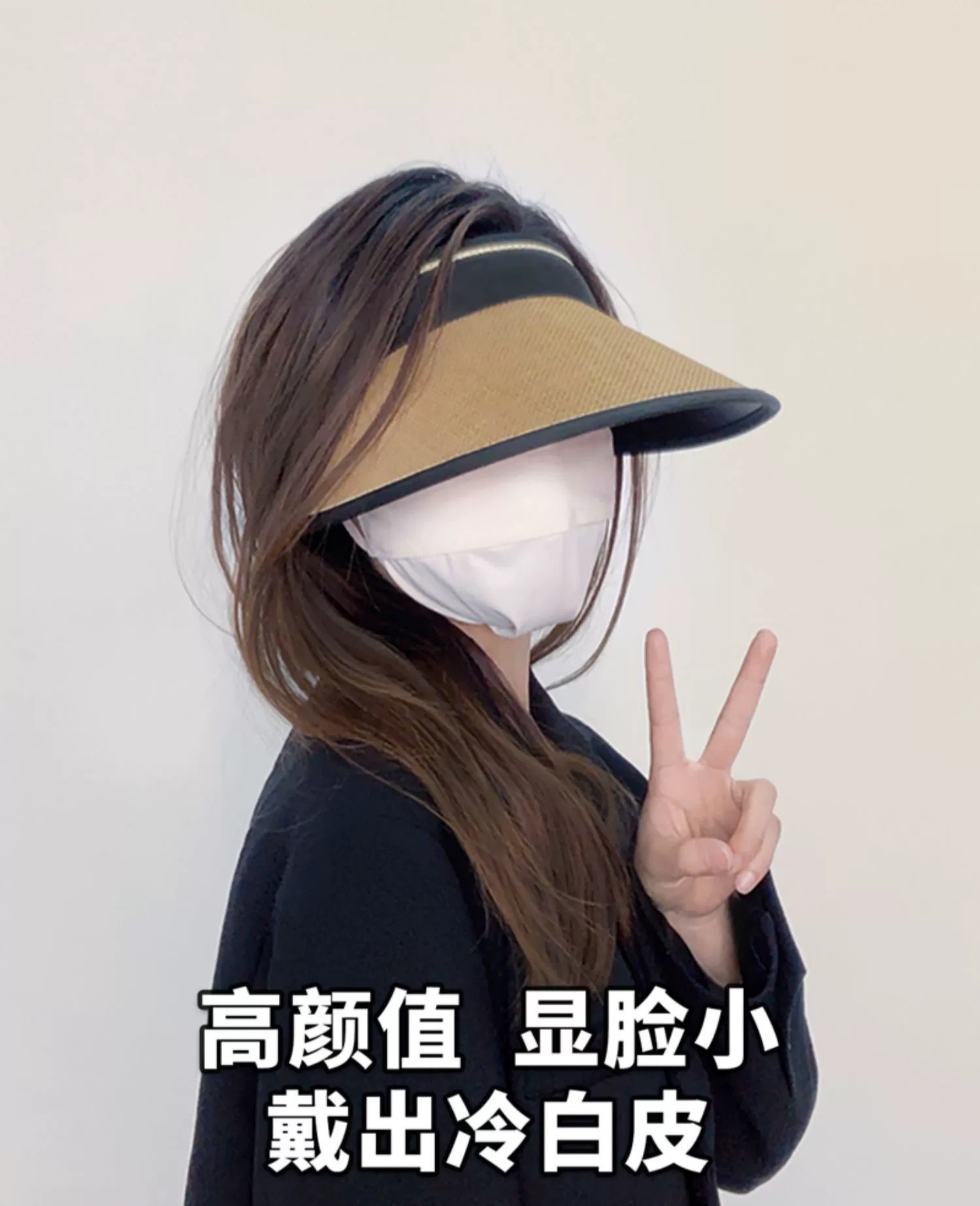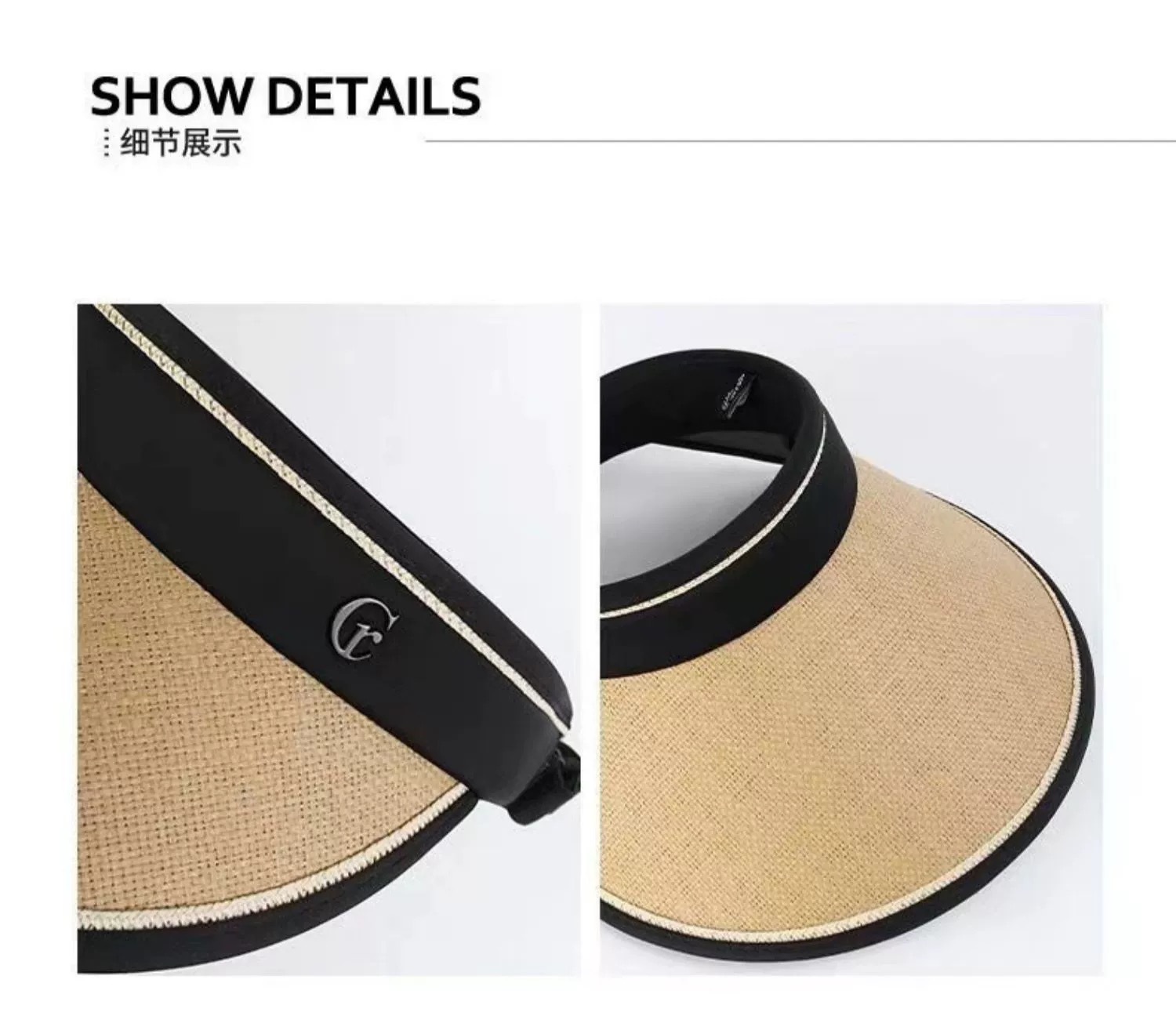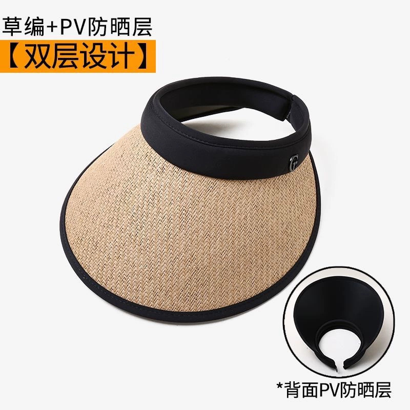 여성용 자외선 차단 태양 모자, 빈 상단, 큰 챙, 밀짚 사이클링 모자, 방풍 및 회전 방지 사이클링, 조절 가능한 롤형 보관 모자