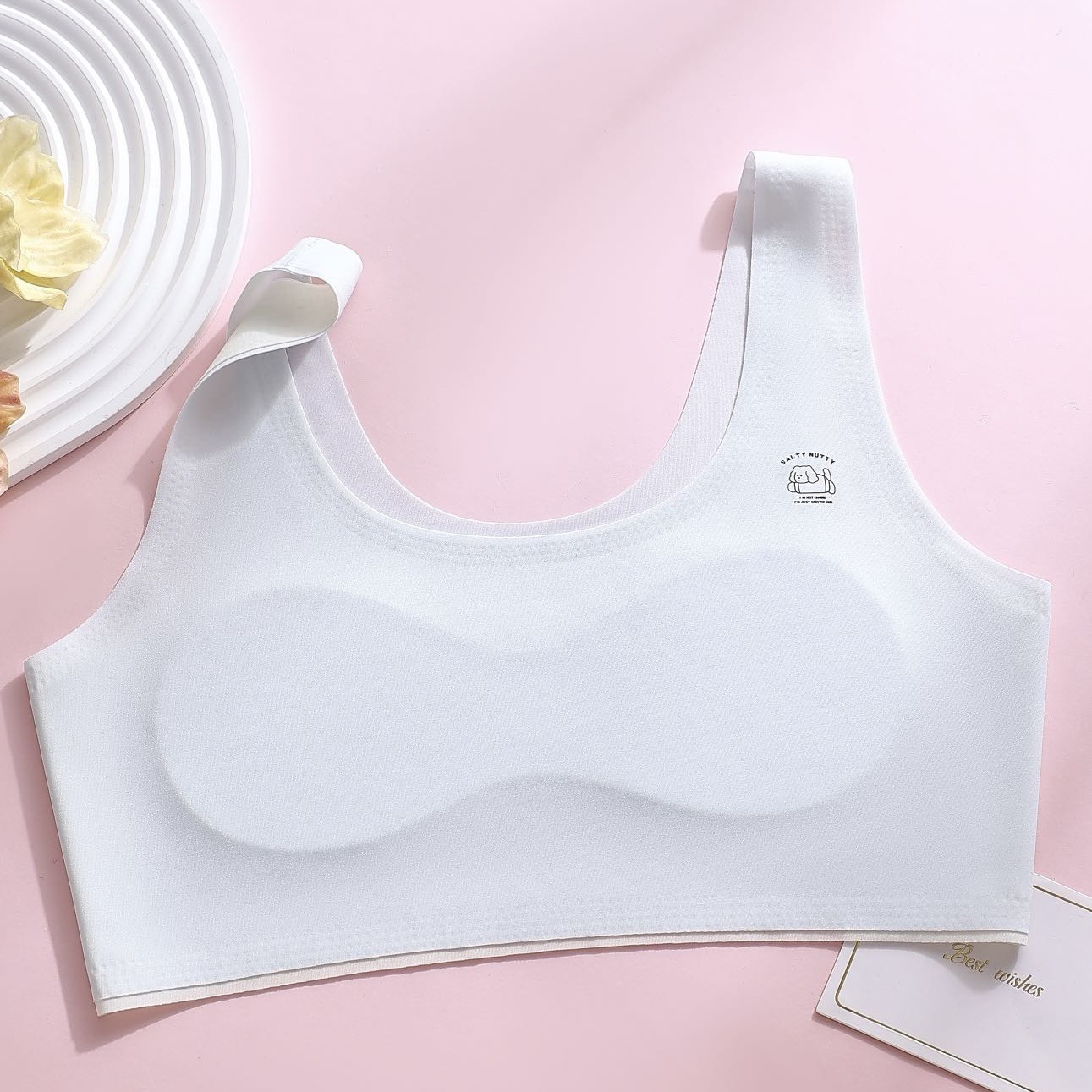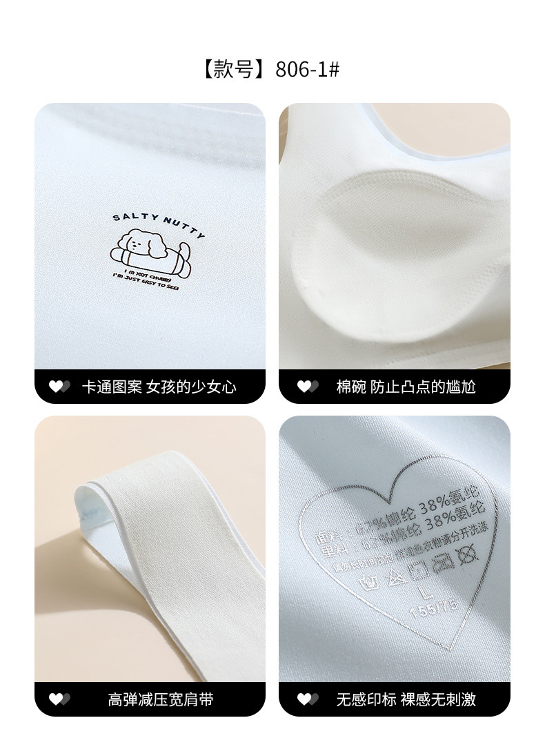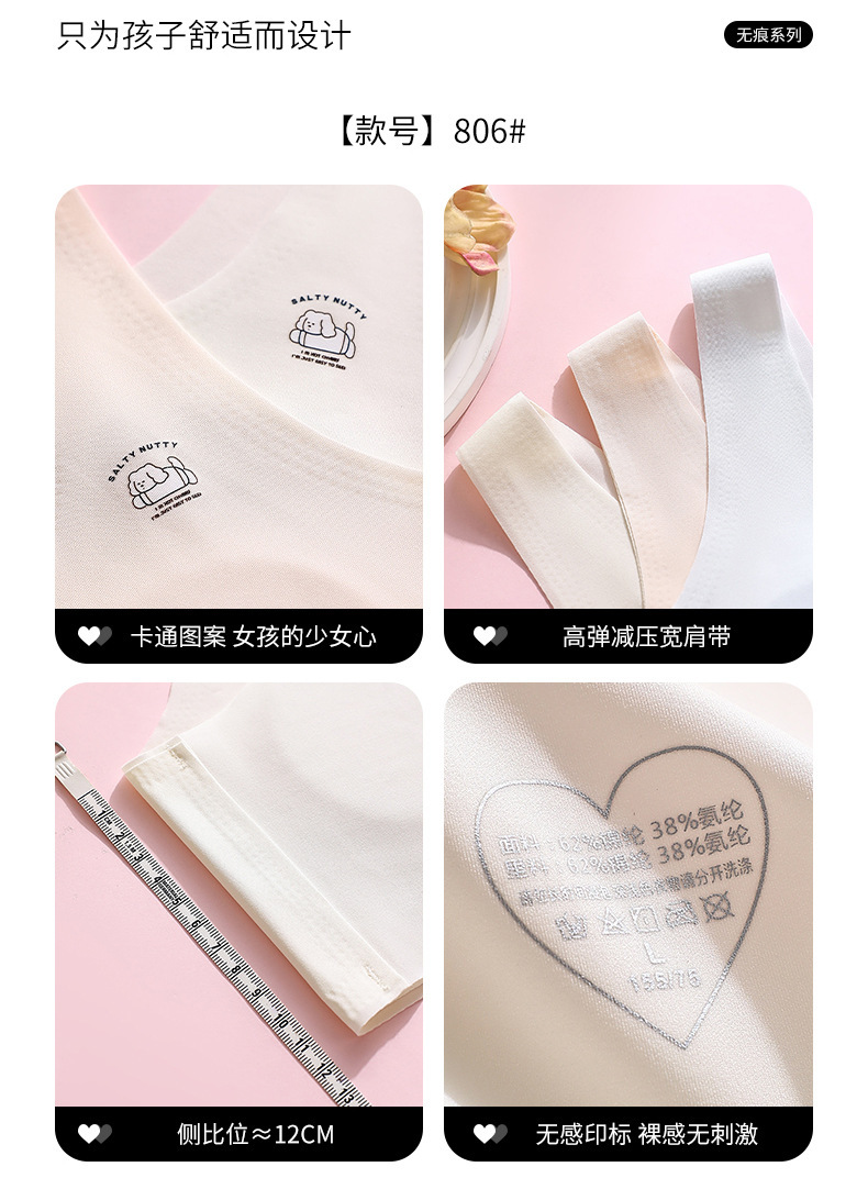 발달기 여아 브라 2단계 여중생 8자형 면 고정컵 조끼형 속옷 가슴 감싸기