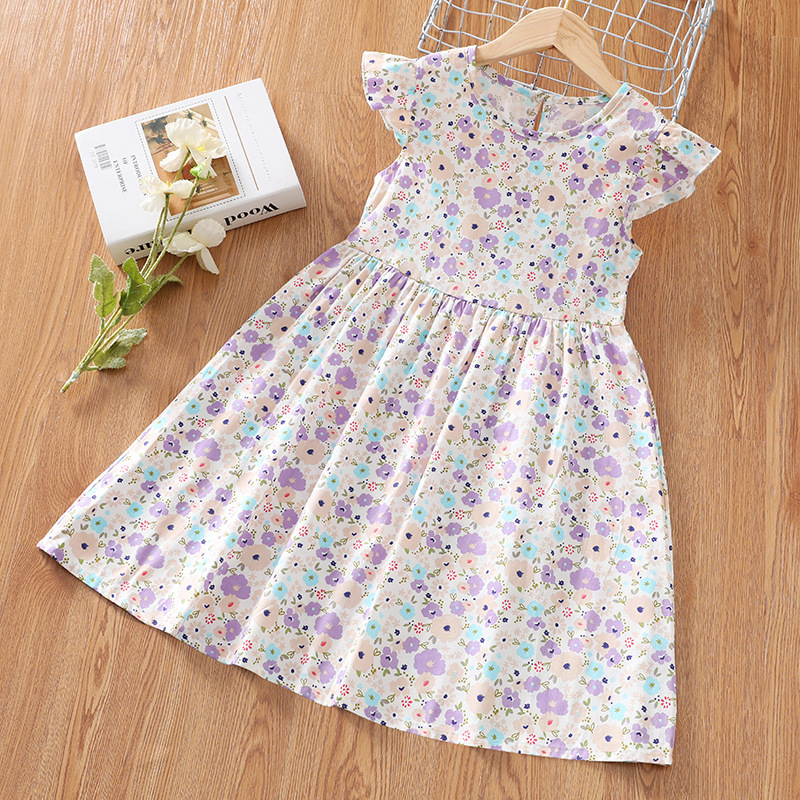 여아 드레스, 여름 순면 꽃무늬 스커트, 중대형 아동 캐주얼 반팔 스커트, A급 학생 스커트, 아우터 롱 스커트