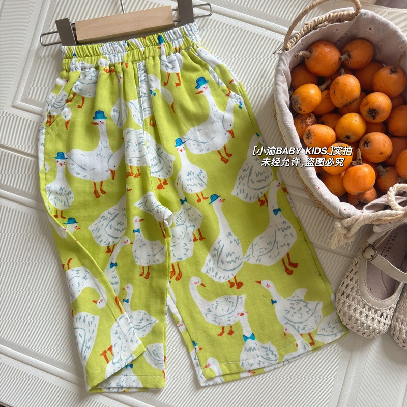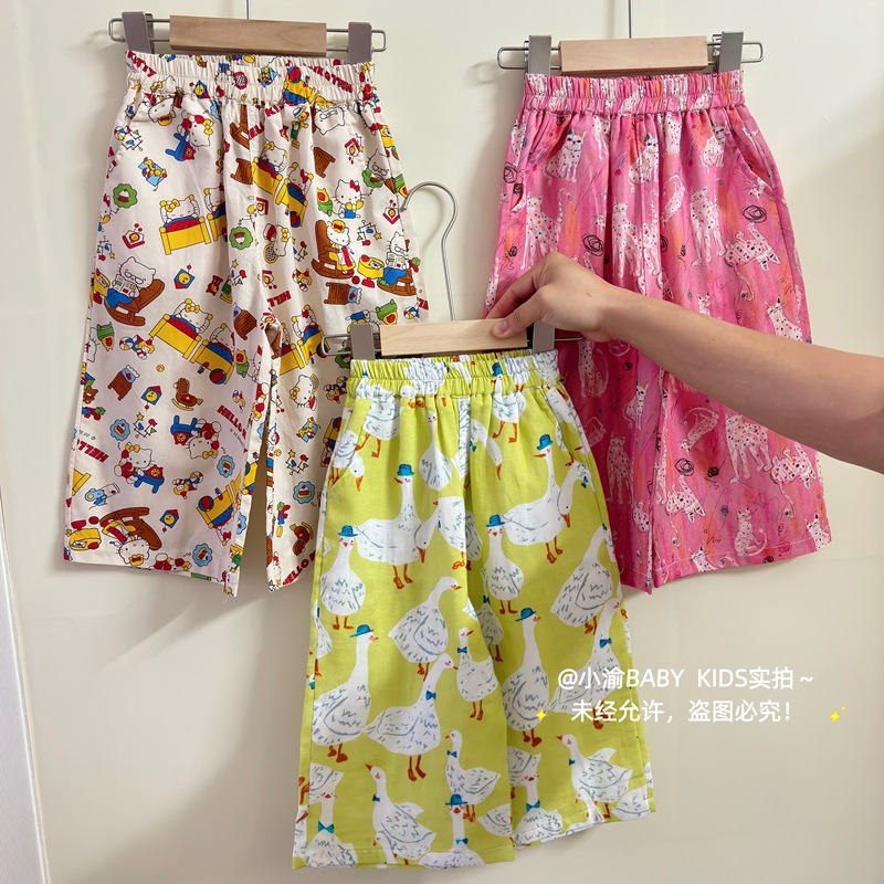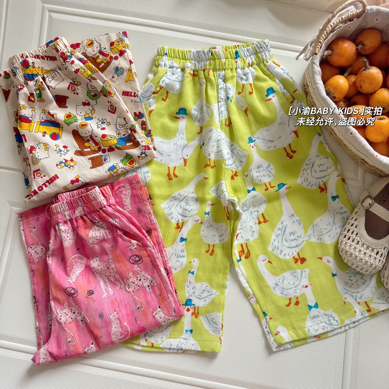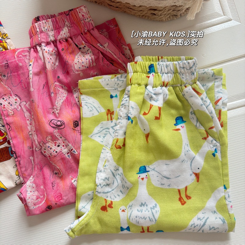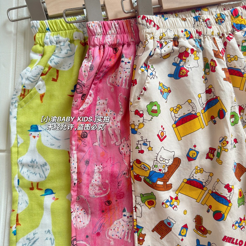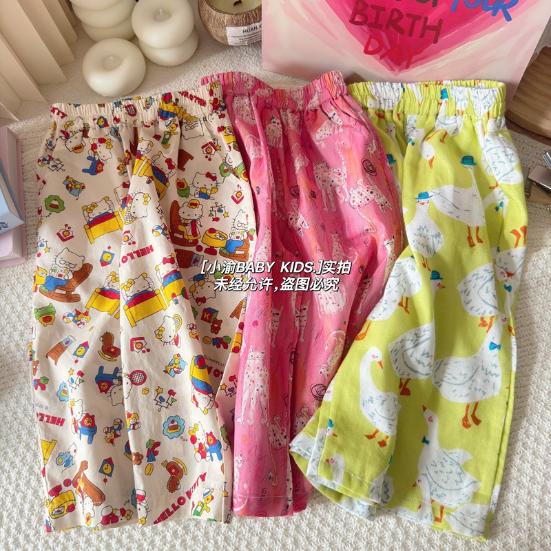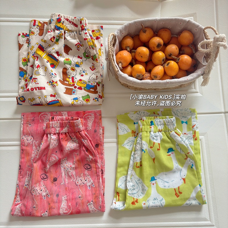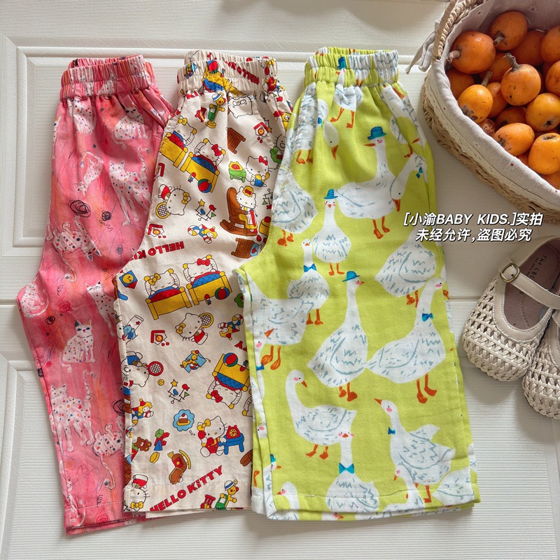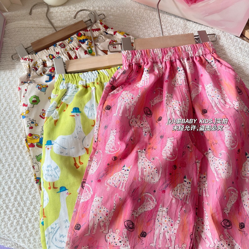 아동용 산책 바지 2026 봄 여름 신상 만화 모기 방지 바지 남아 여아 귀여운 얇은 다용도 순면 캐주얼 바지스토어 가기