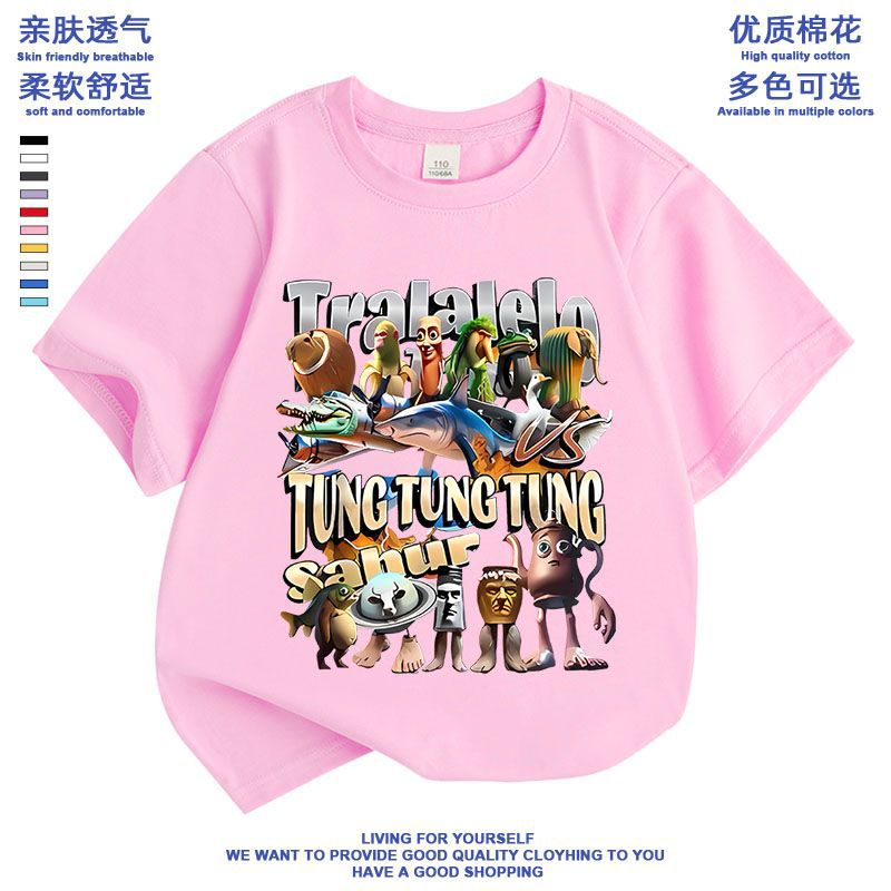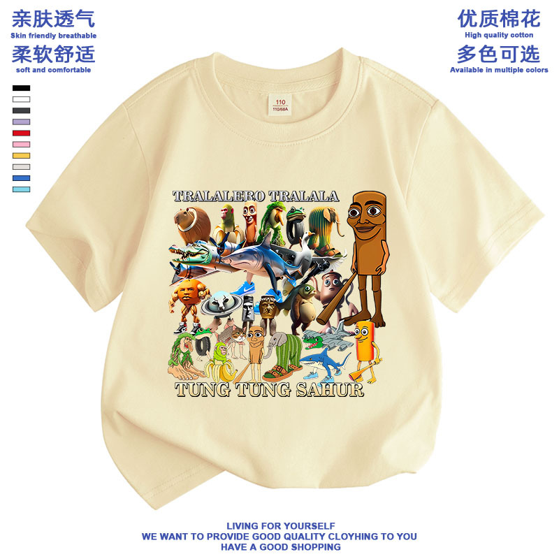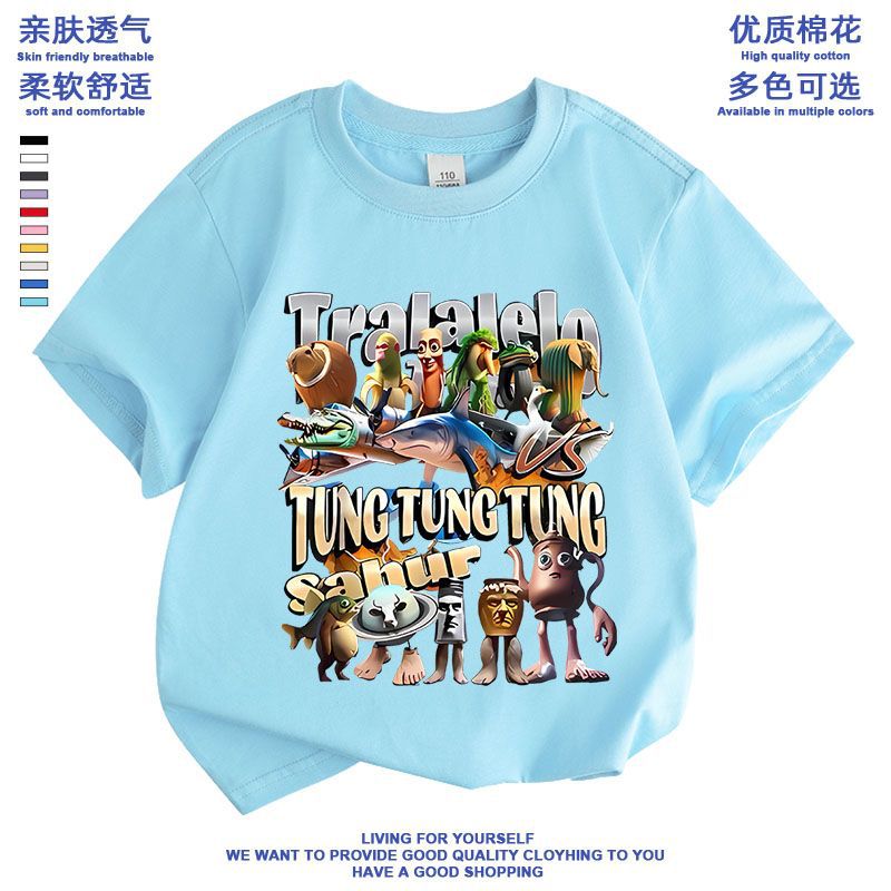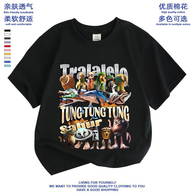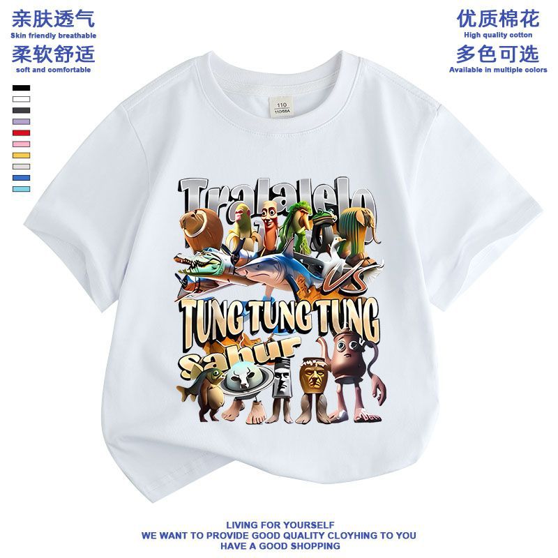 나무 스틱 남성 어린이 반팔 티셔츠 모든 확산 훌라 만화 인쇄 소년 및 어린이 최고 여름 어린이 착용 유행과 쿨스토어 가기