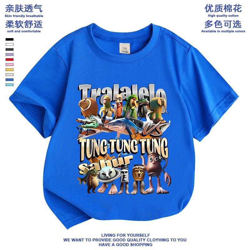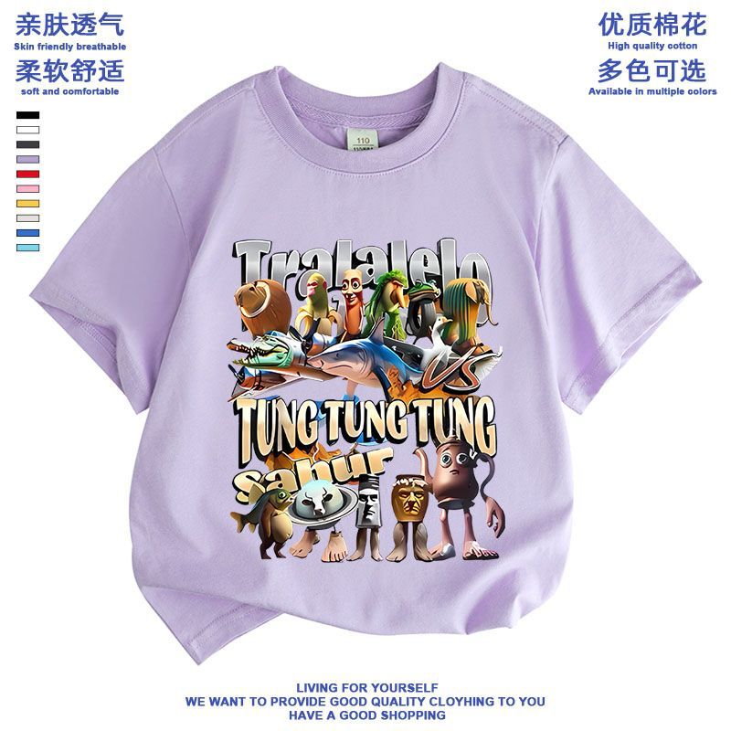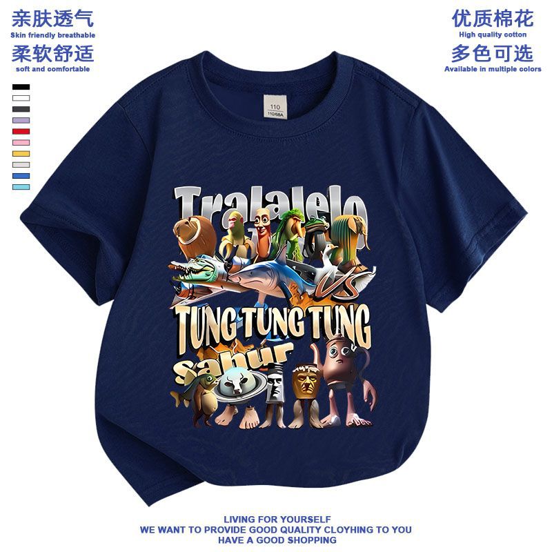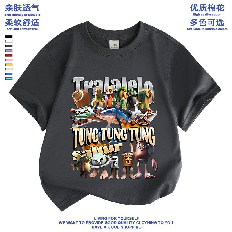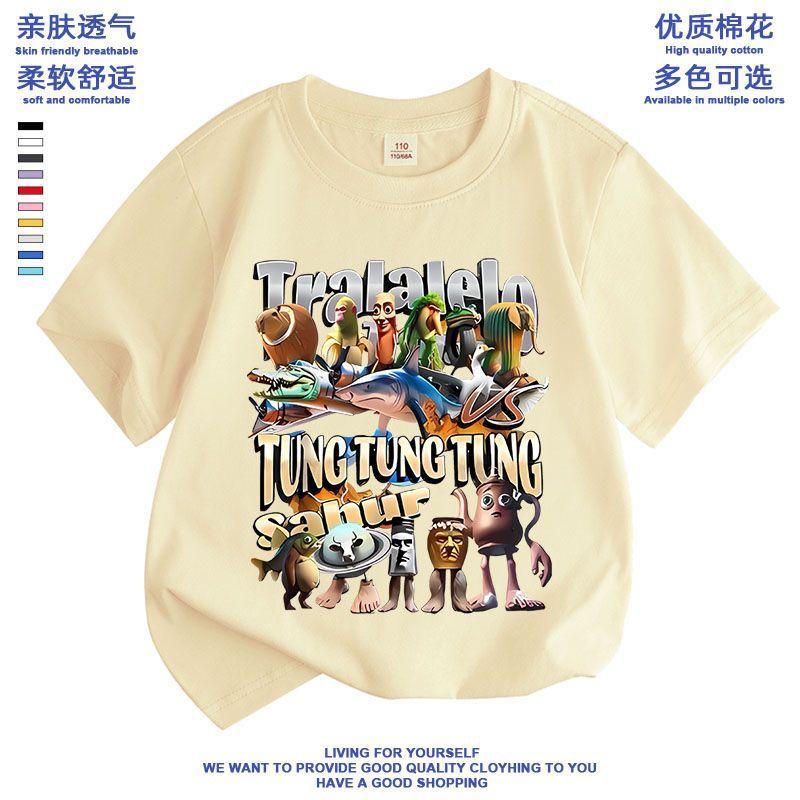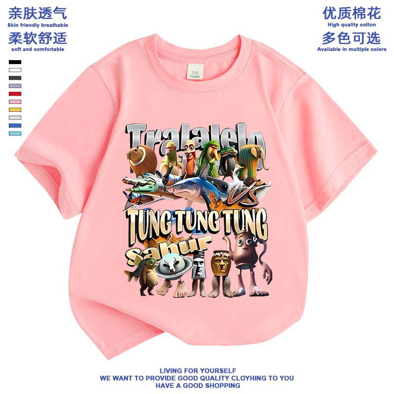 나무 스틱 남성 어린이 반팔 티셔츠 모든 확산 훌라 만화 인쇄 소년 및 어린이 최고 여름 어린이 착용 유행과 쿨스토어 가기