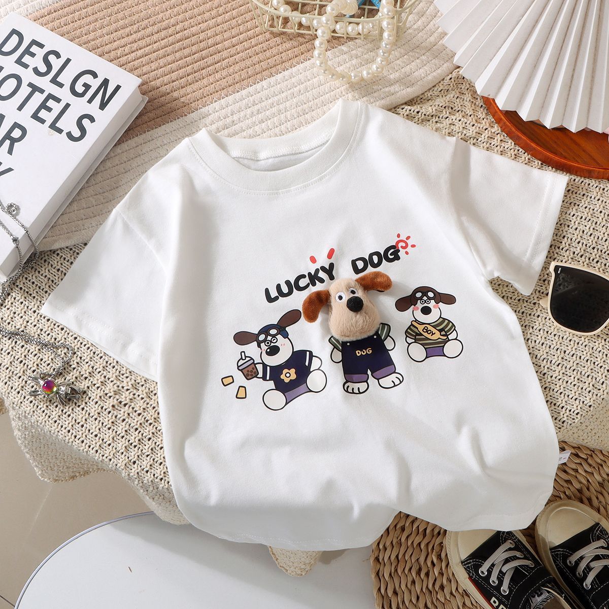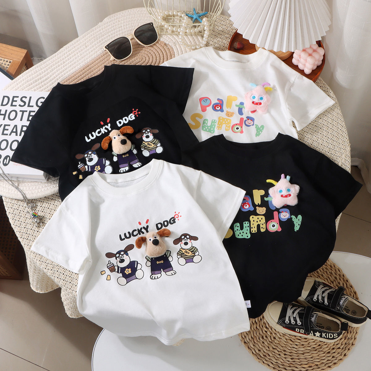 여름 새 인형 유행 반팔 한국 스타일 캐주얼 귀여운 카드 어린이 티셔츠 라운드 넥 디자인 패션 캐주얼스토어 가기