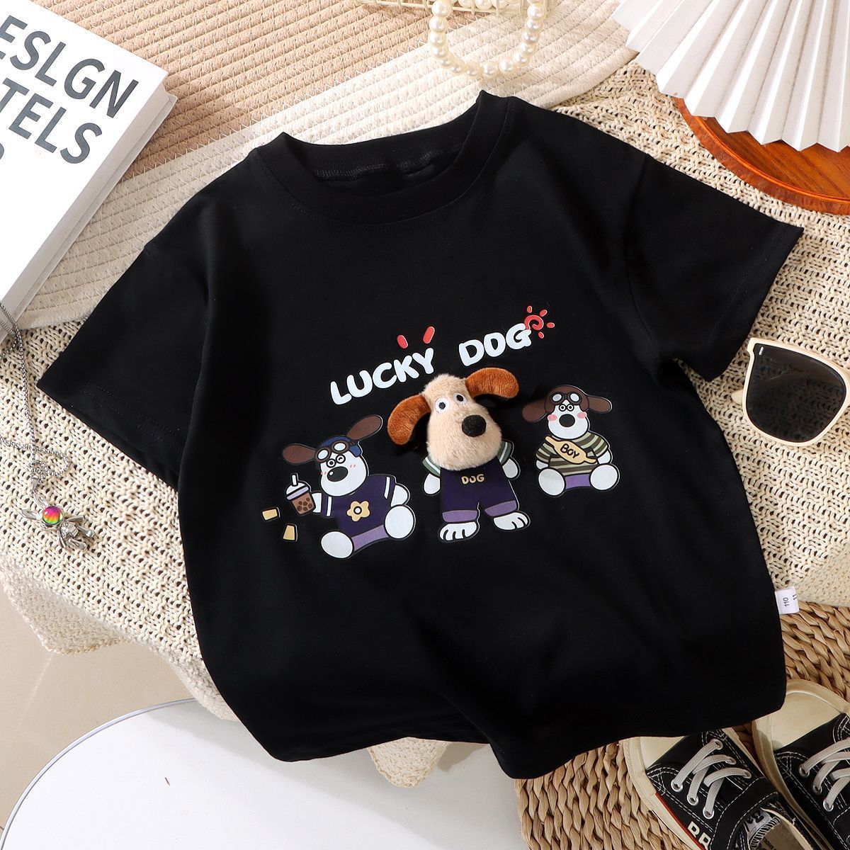 여름 새 인형 유행 반팔 한국 스타일 캐주얼 귀여운 카드 어린이 티셔츠 라운드 넥 디자인 패션 캐주얼