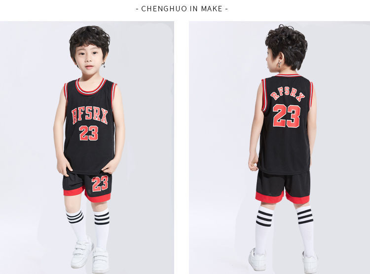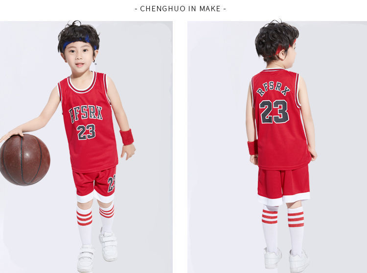 어린이 농구 유니폼 세트 새로운 여름 소년의 속건성 농구 의류 초등 및 중등 학생을위한 통기성 스포츠 훈련복