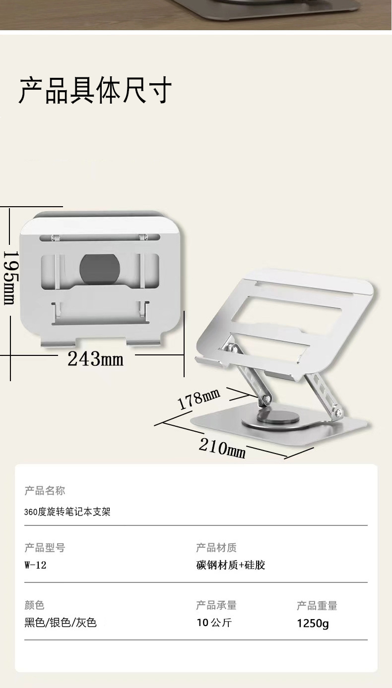 全金属360度旋转笔记本电脑支架