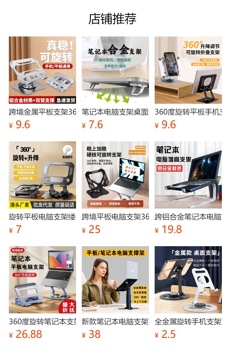 360도 회전 노트북 스탠드 접이식 데스크탑 높이 조절 냉각 베이스 금속 크로스보더 태블릿 스탠드스토어 가기
