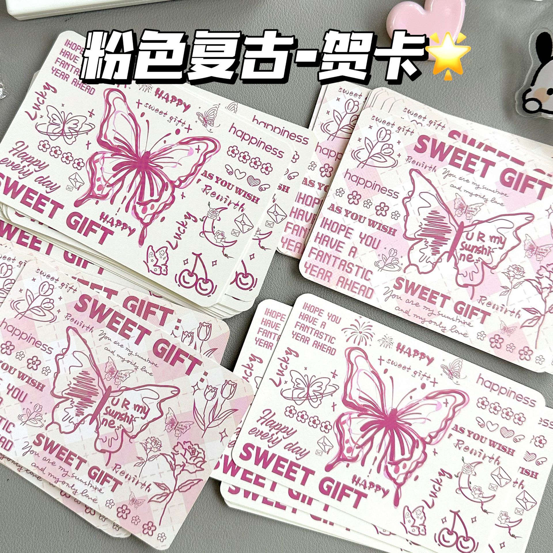 핑크 시리즈 메시지 카드 스타일 고급스러운 어린이 만화 휴일 축복 사진 장식 작은 카드 인사말 카드
