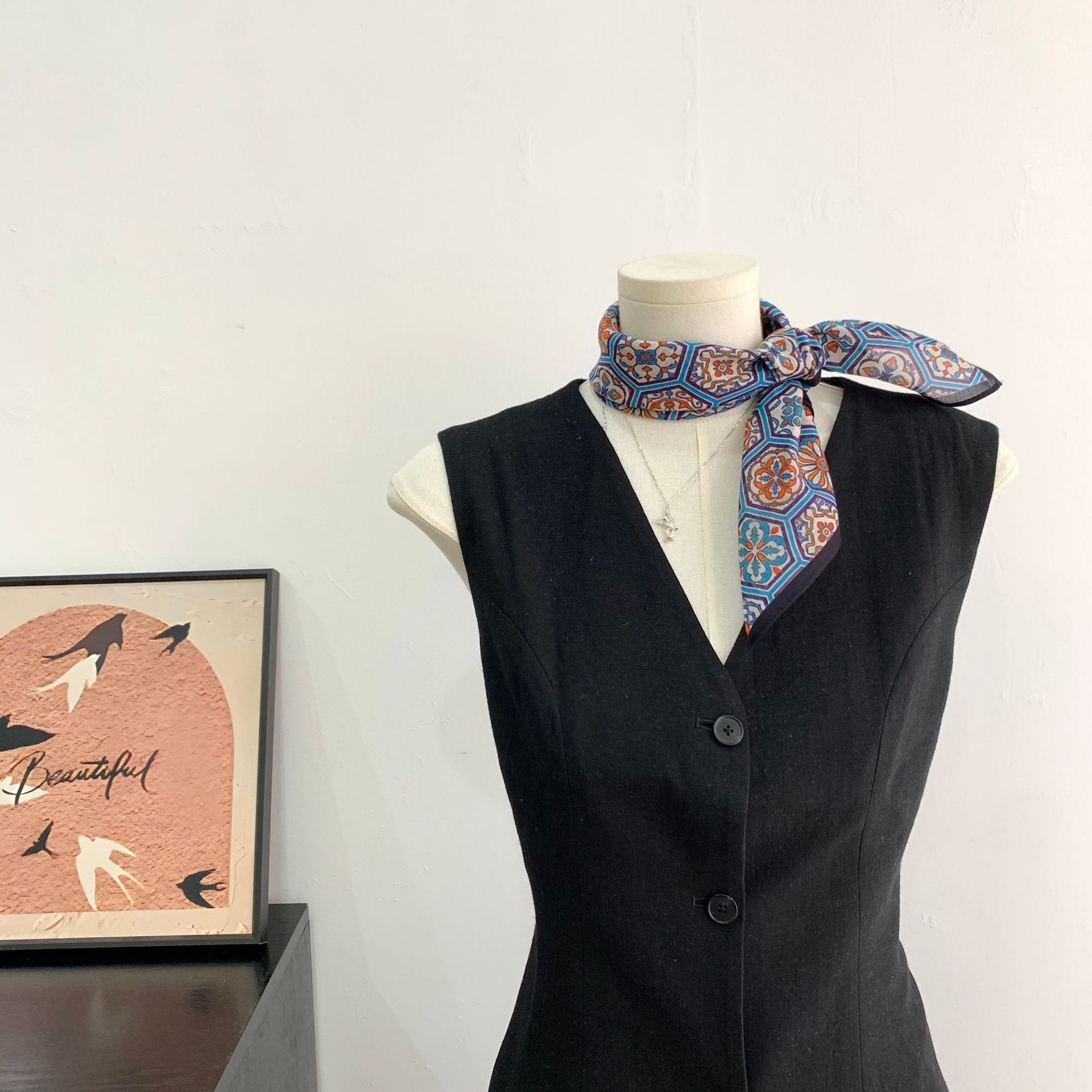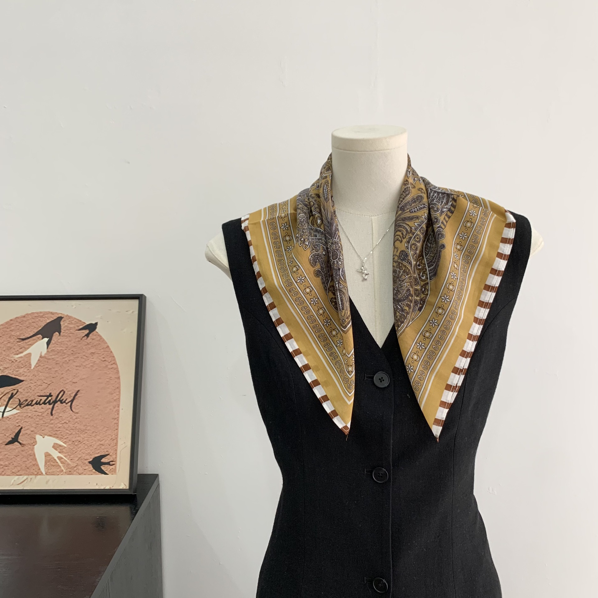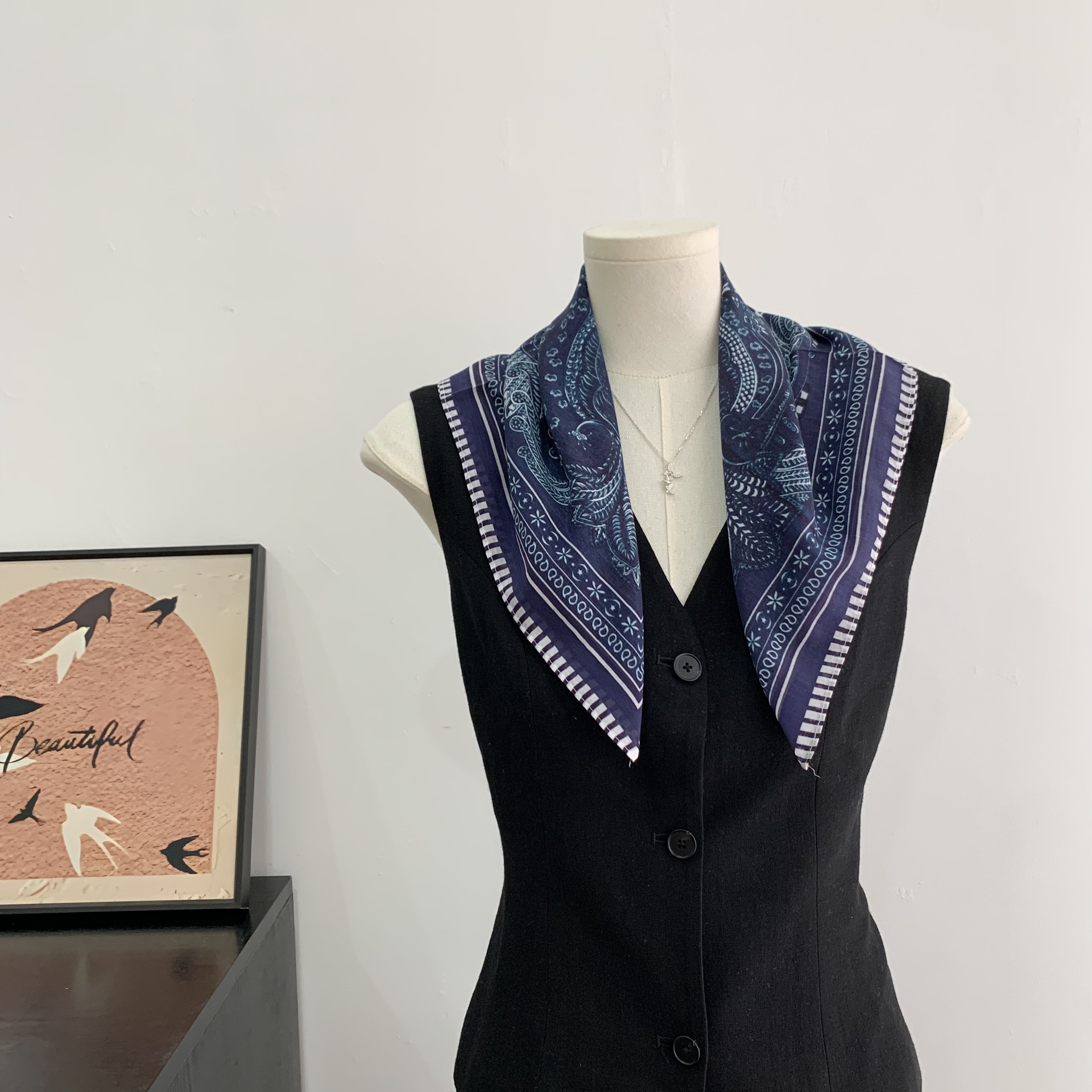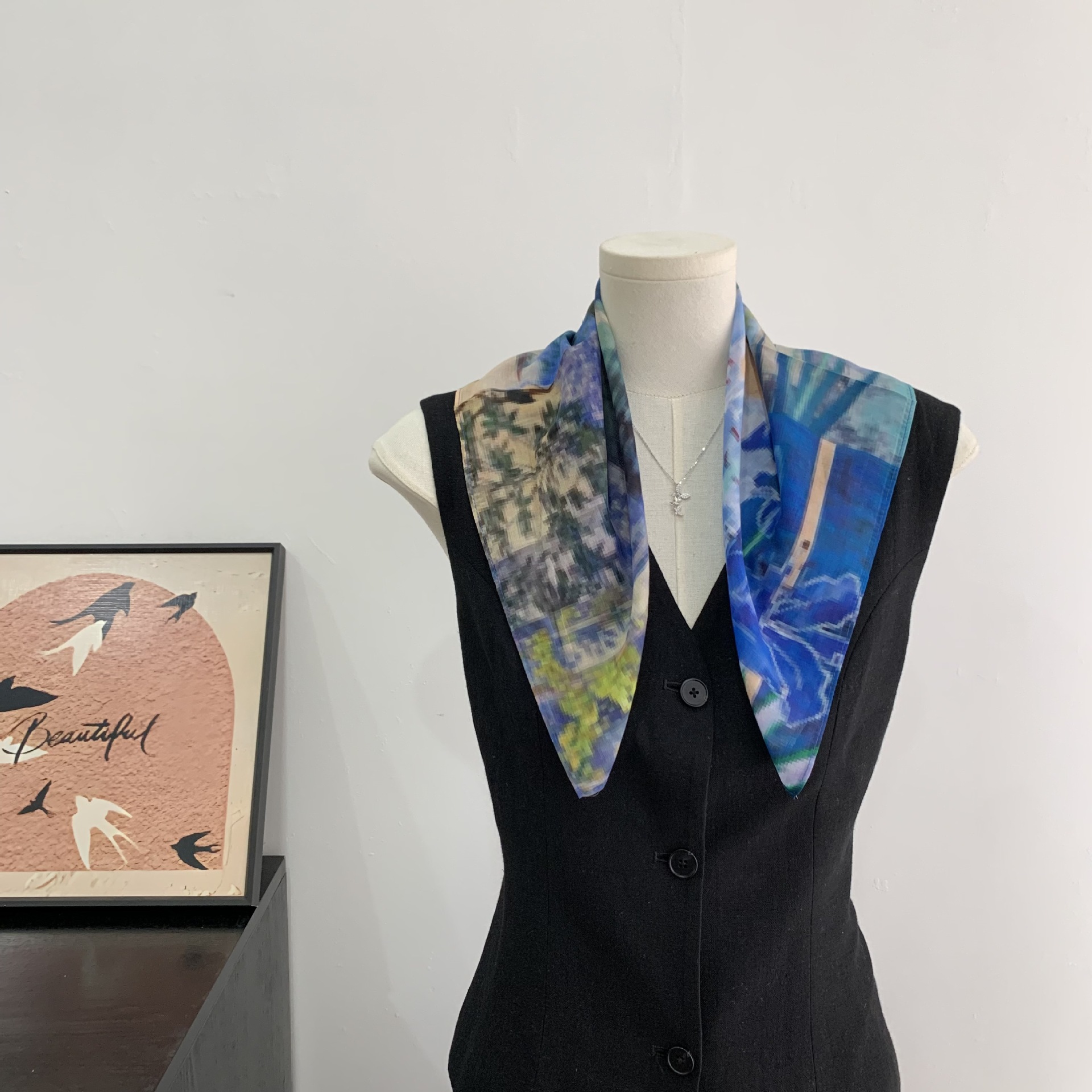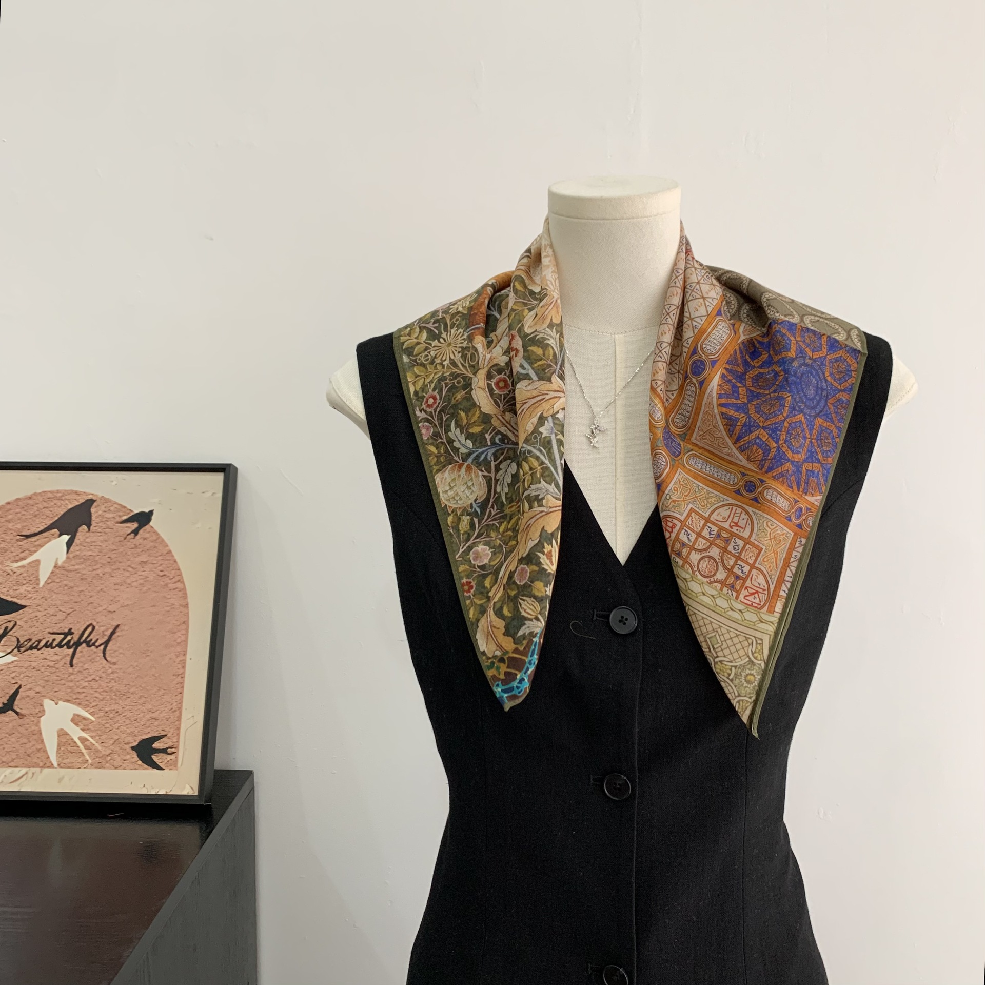 여성을위한 복고풍 유화 같은 멀버리 실크 작은 사각형 스카프 봄과 여름 새로운 패션 문학 다목적 가벼운 장식 스카프스토어 가기