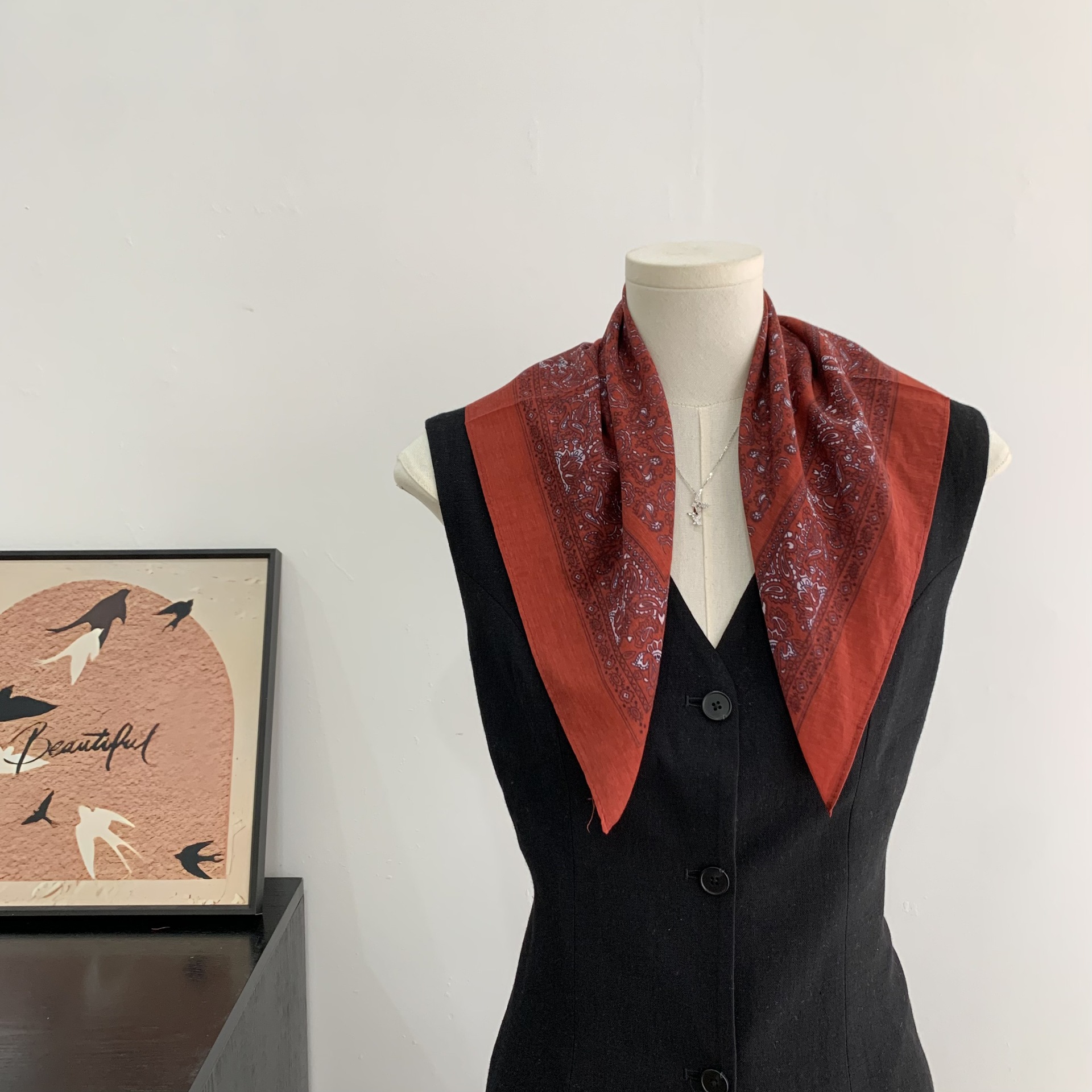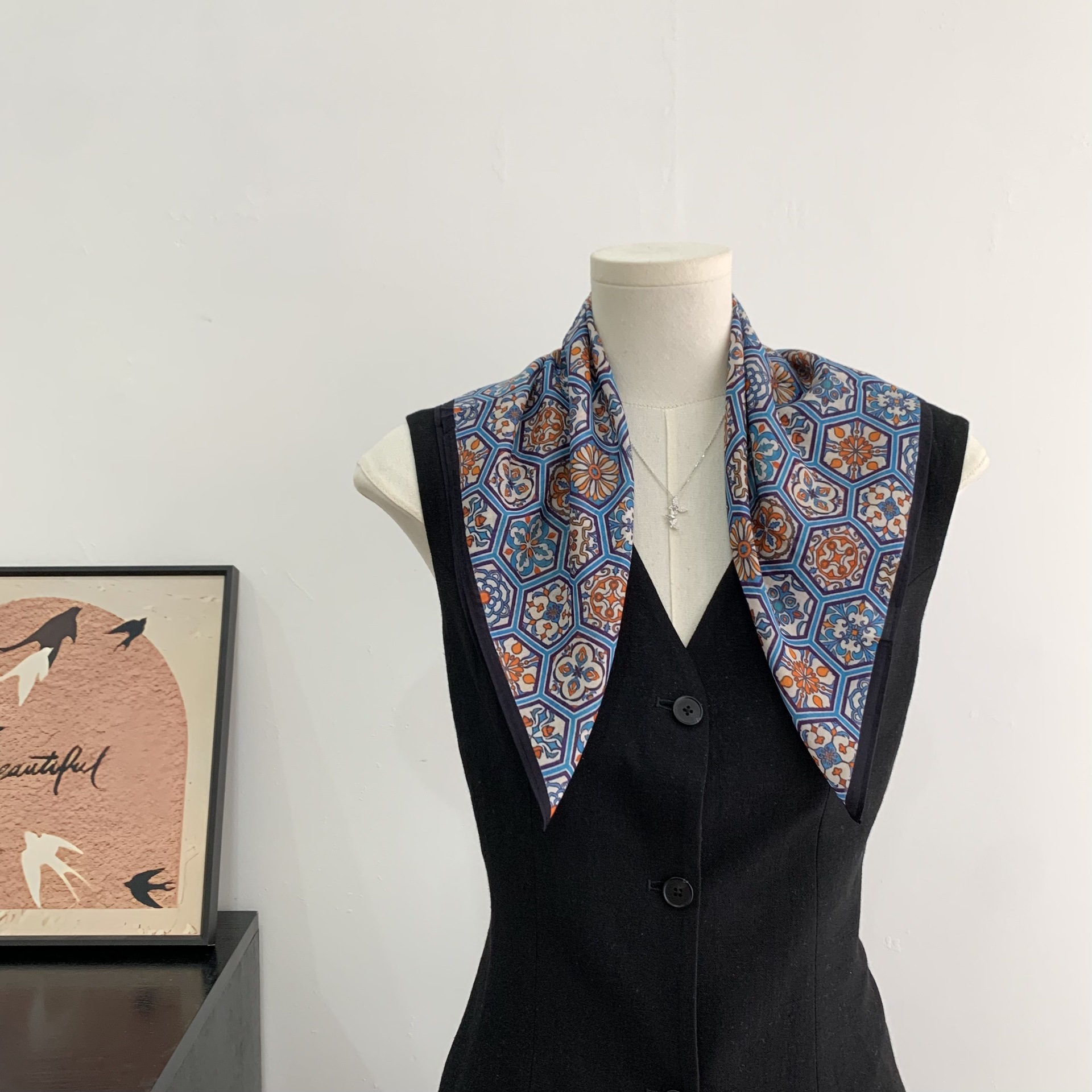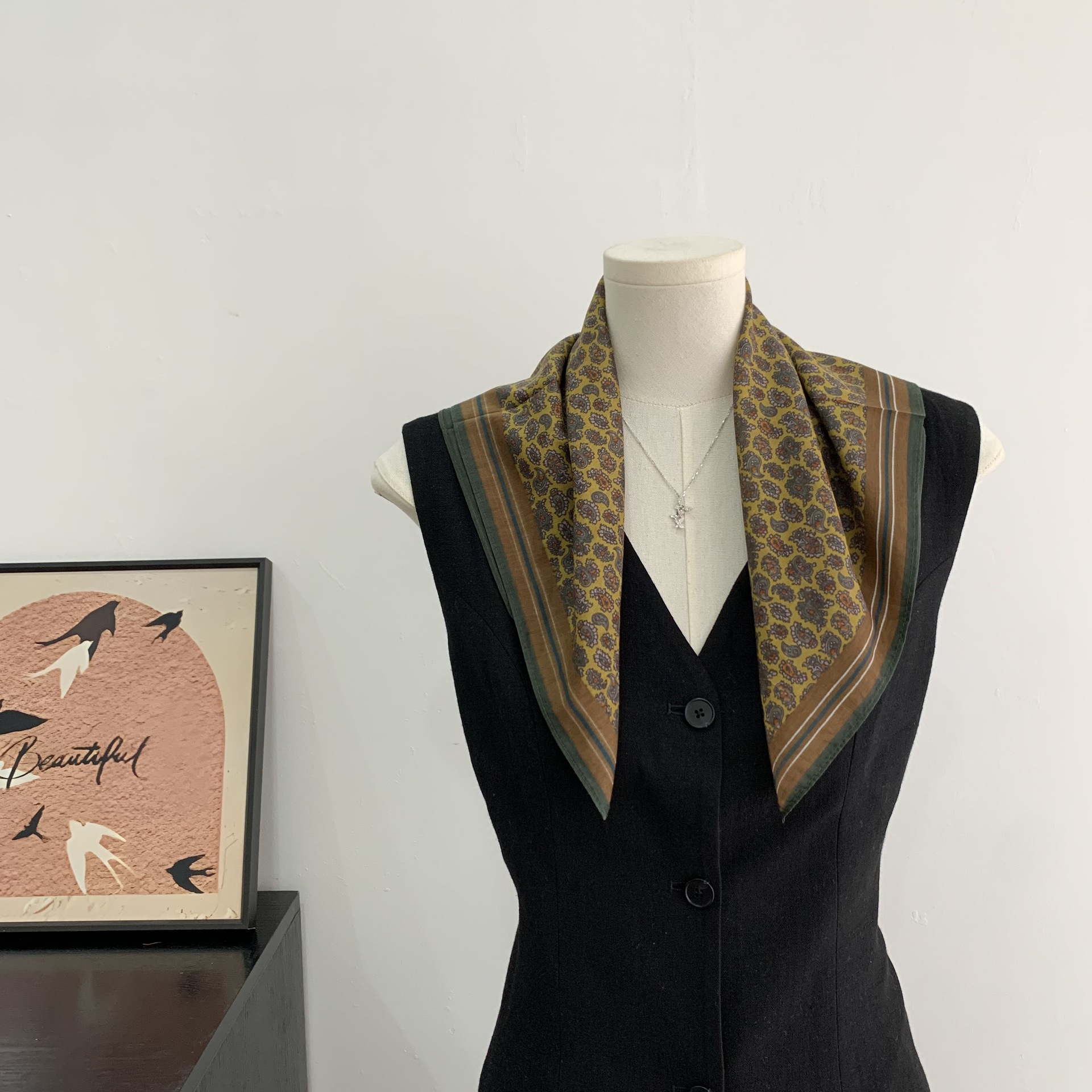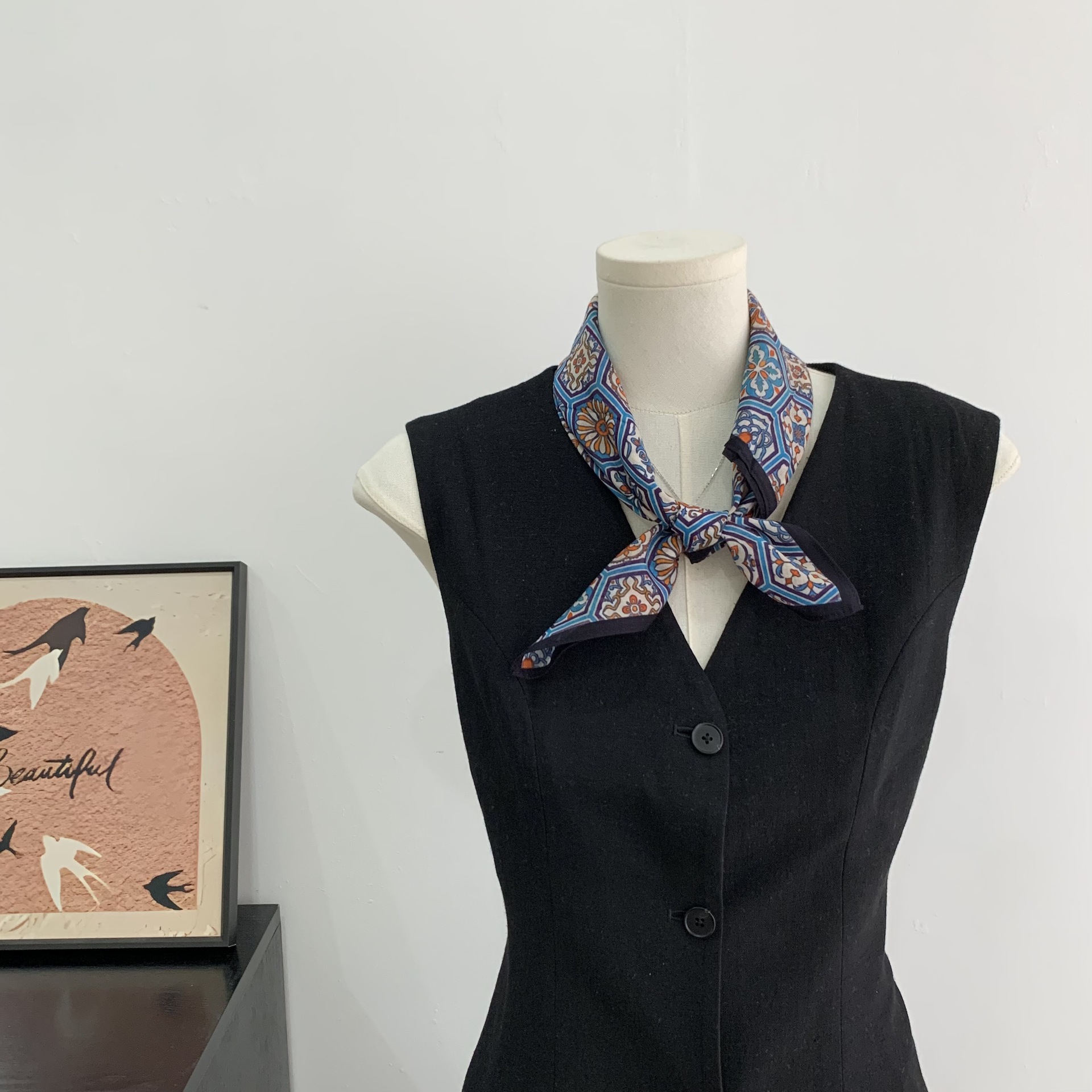 여성을위한 복고풍 유화 같은 멀버리 실크 작은 사각형 스카프 봄과 여름 새로운 패션 문학 다목적 가벼운 장식 스카프스토어 가기