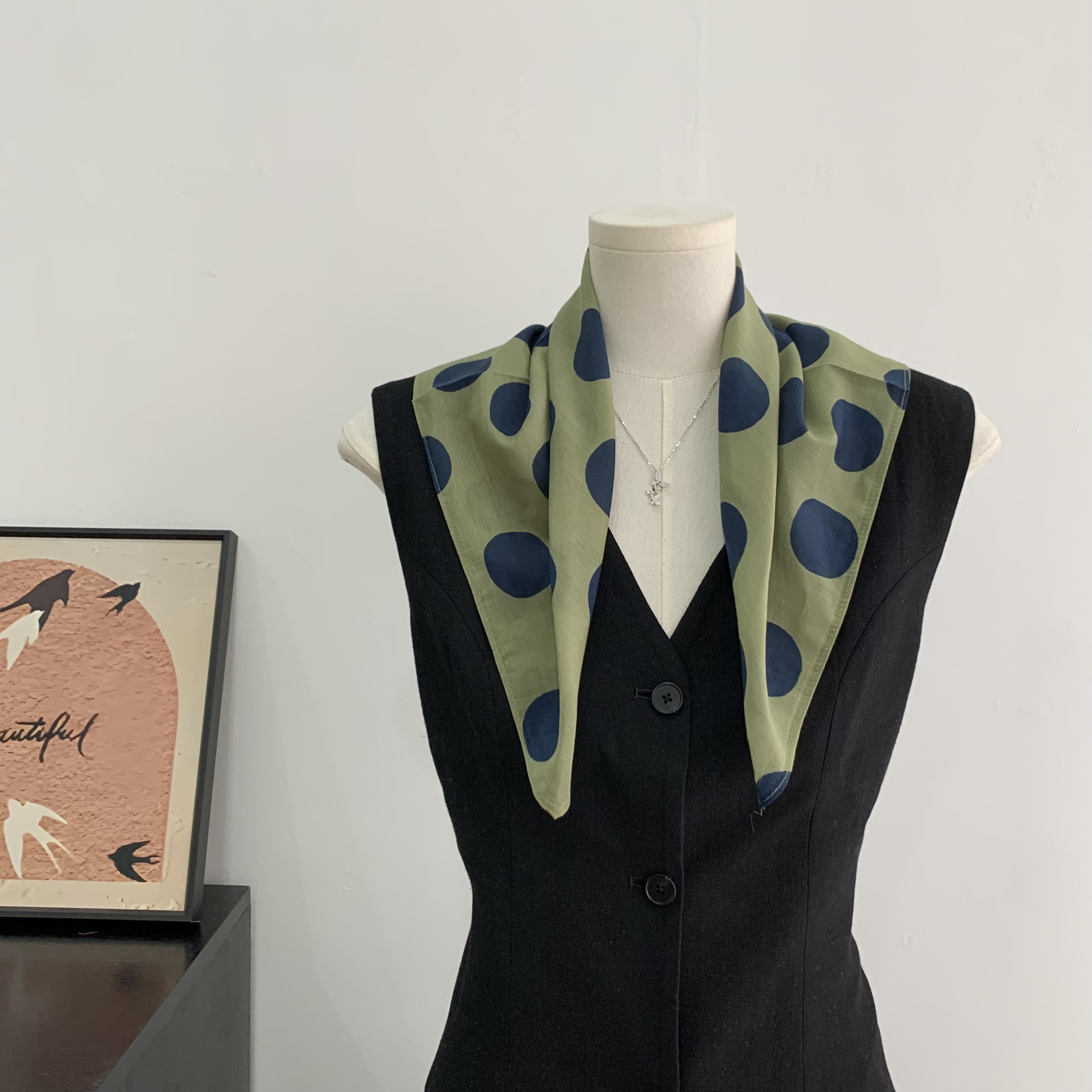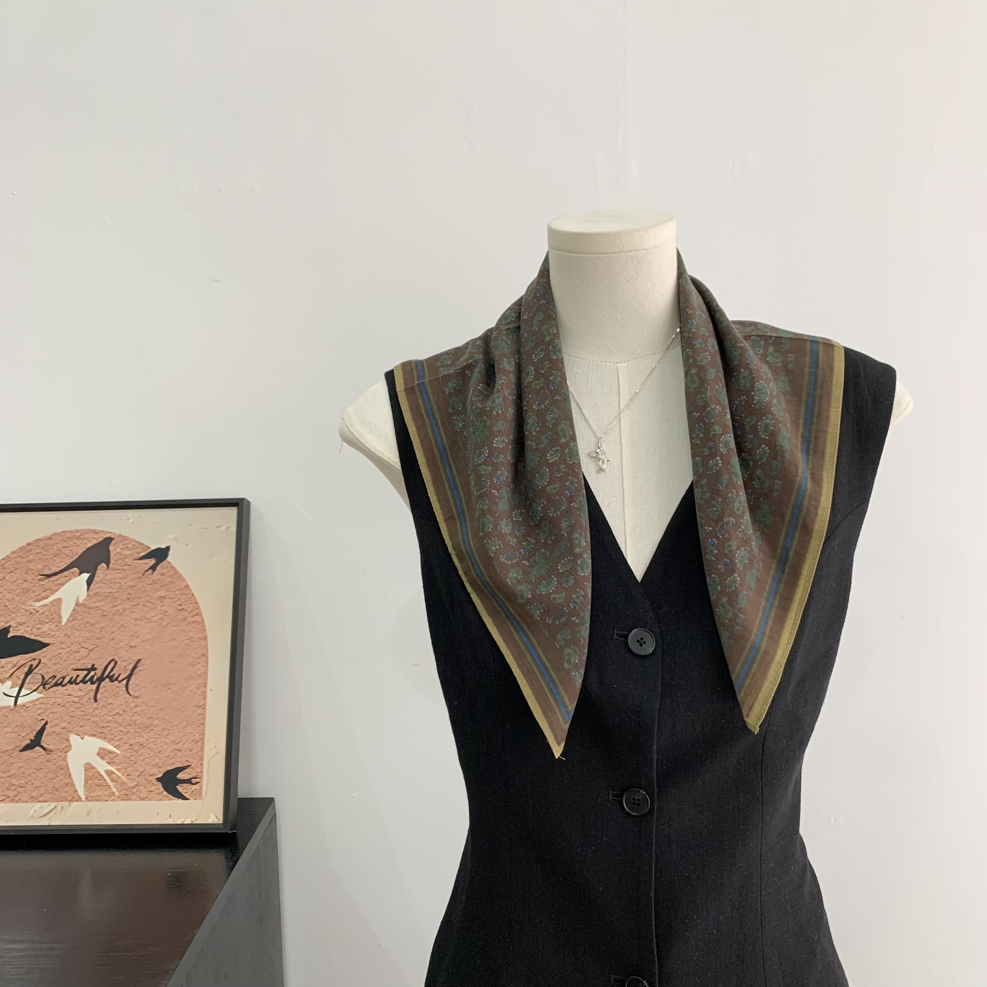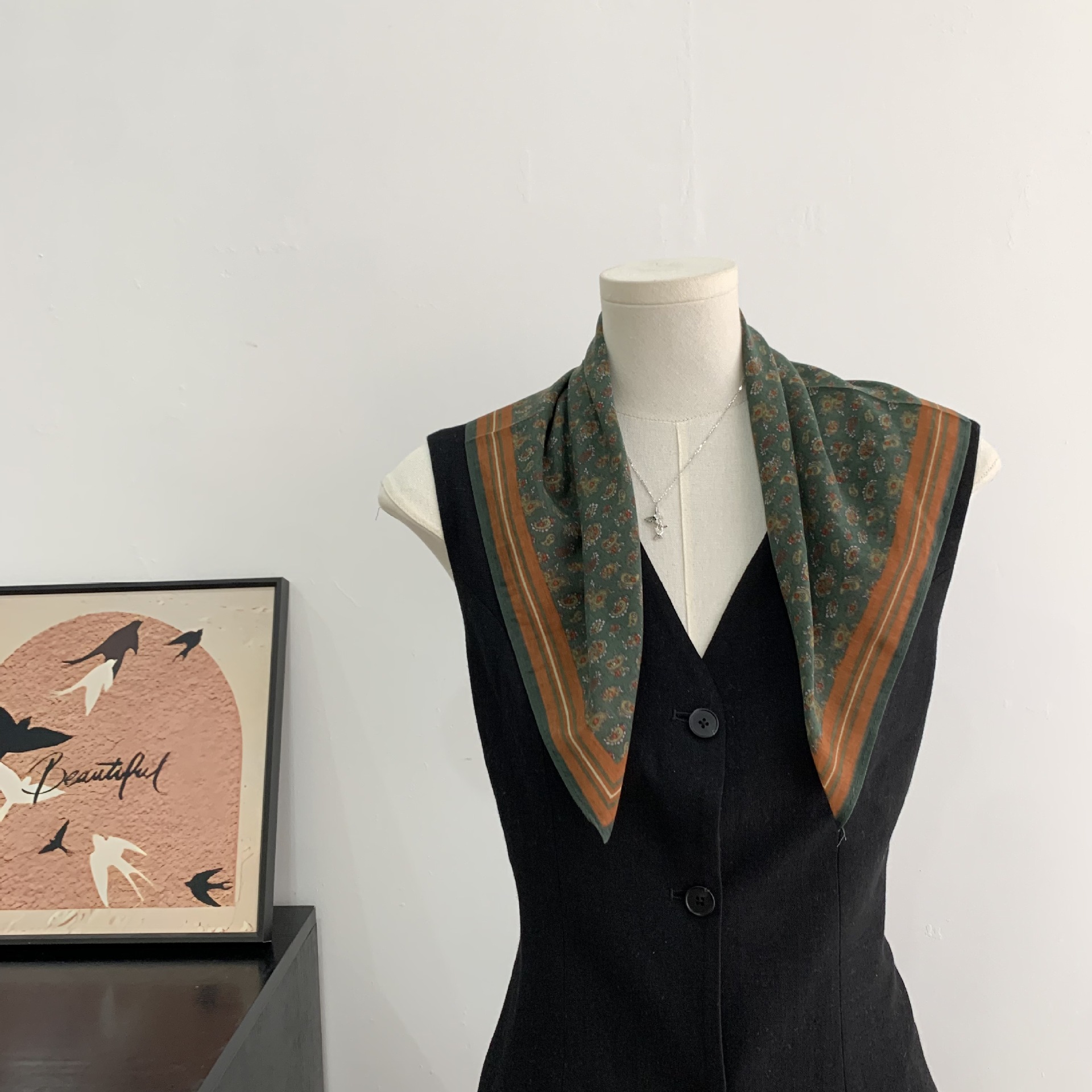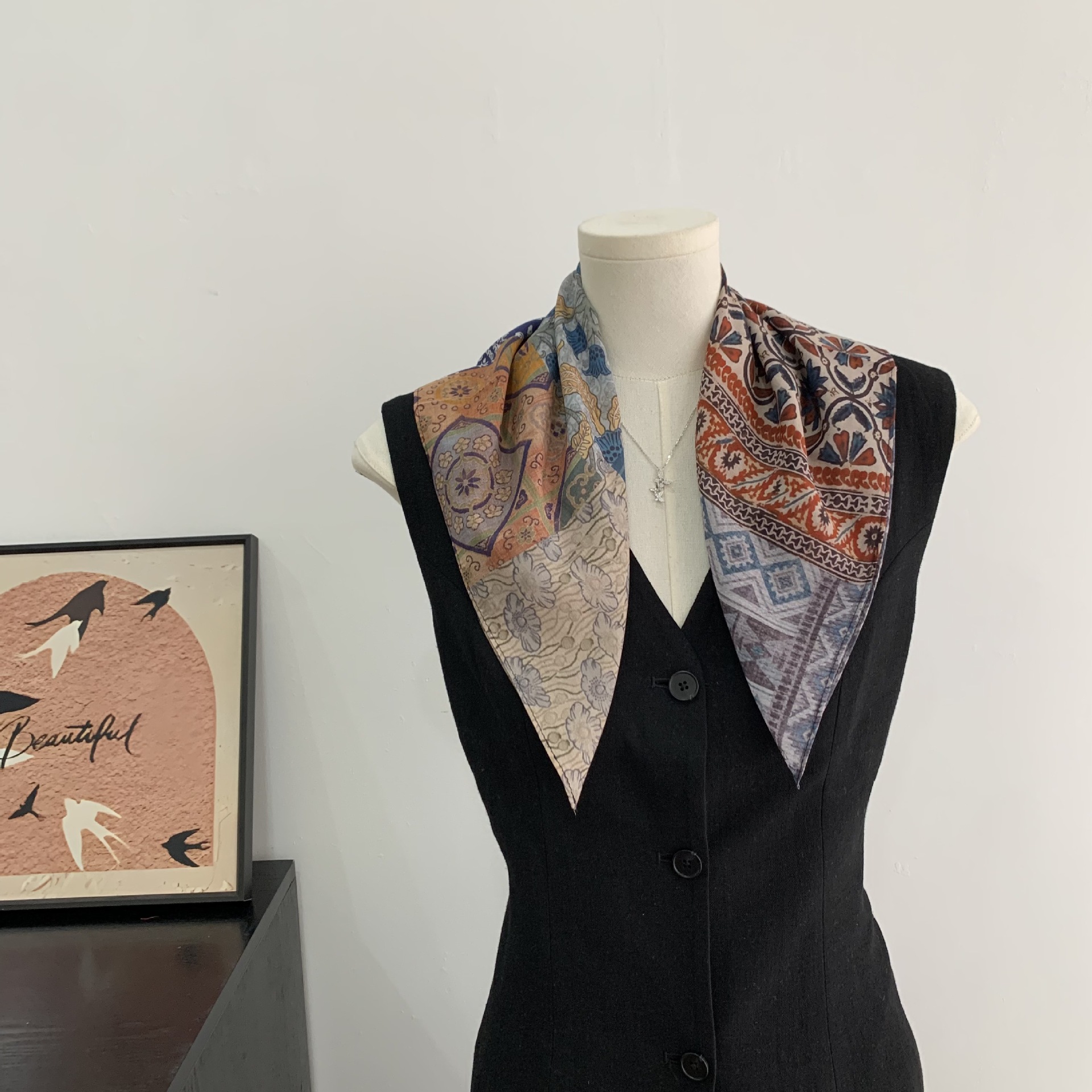 여성을위한 복고풍 유화 같은 멀버리 실크 작은 사각형 스카프 봄과 여름 새로운 패션 문학 다목적 가벼운 장식 스카프