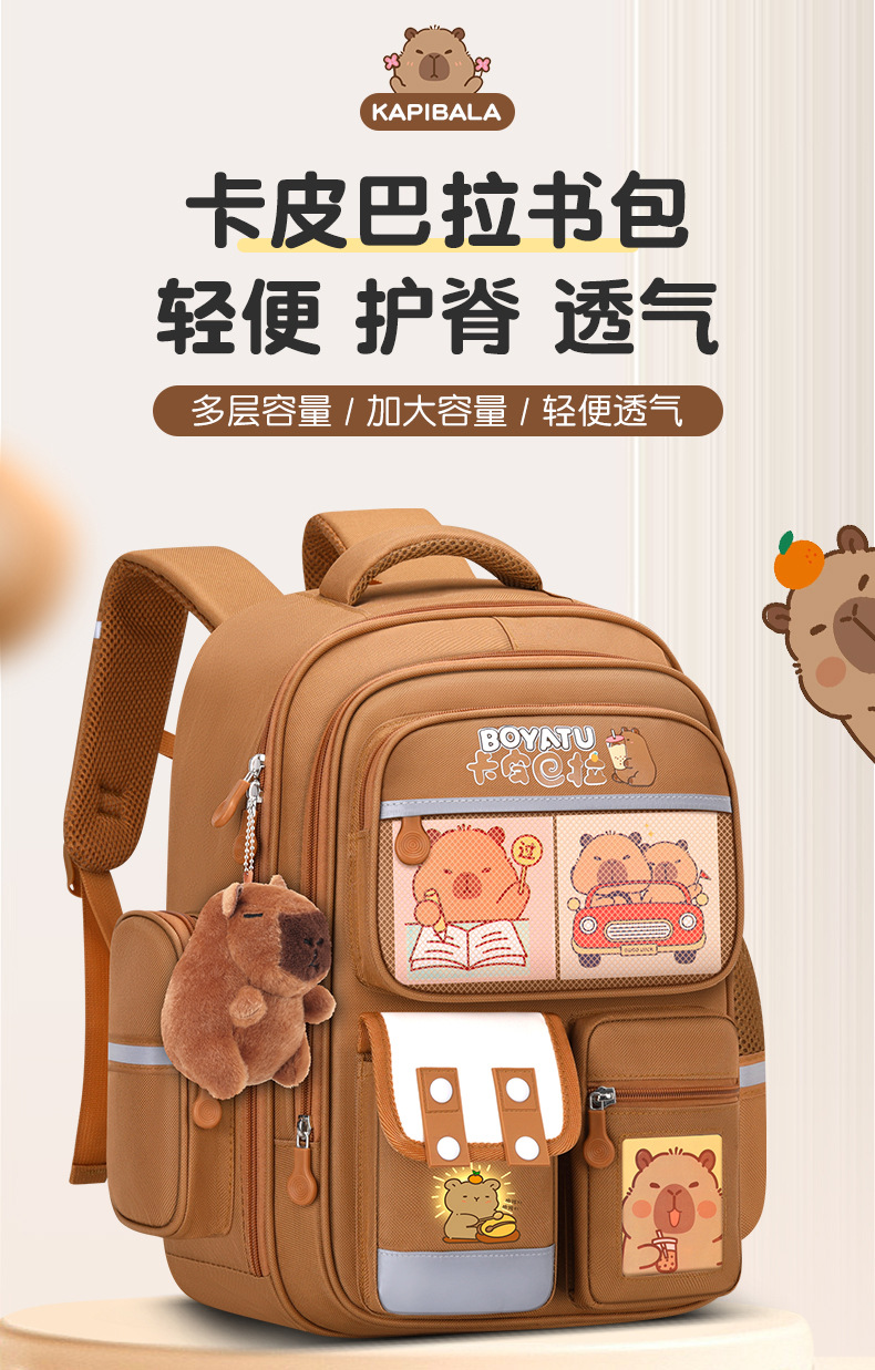 초등학생을 위한 Kapibala schoolbag 새로운 스타일 1~6학년 척추 보호대 남성 및 여성용 대용량 배낭스토어 가기