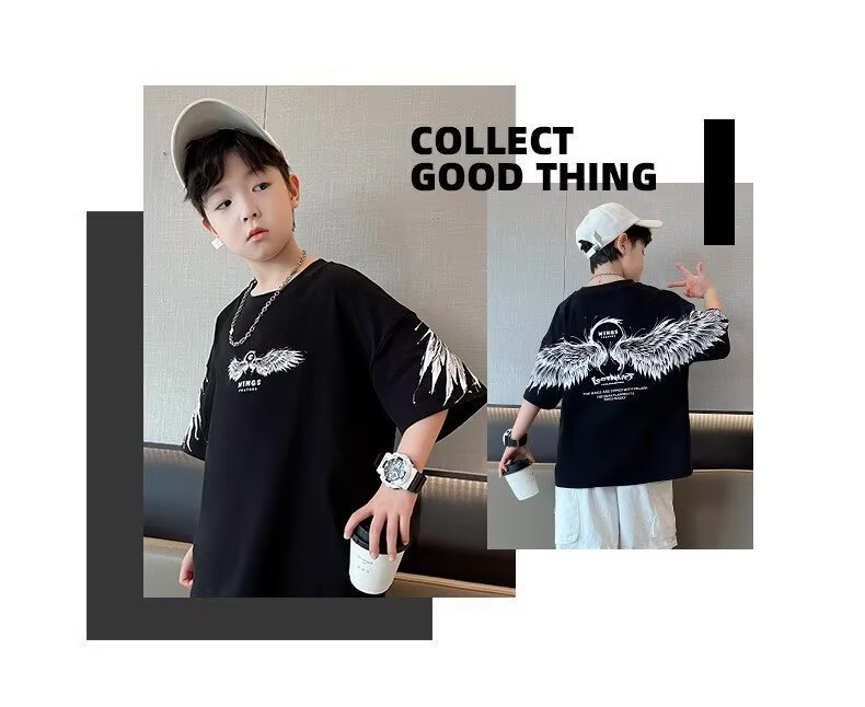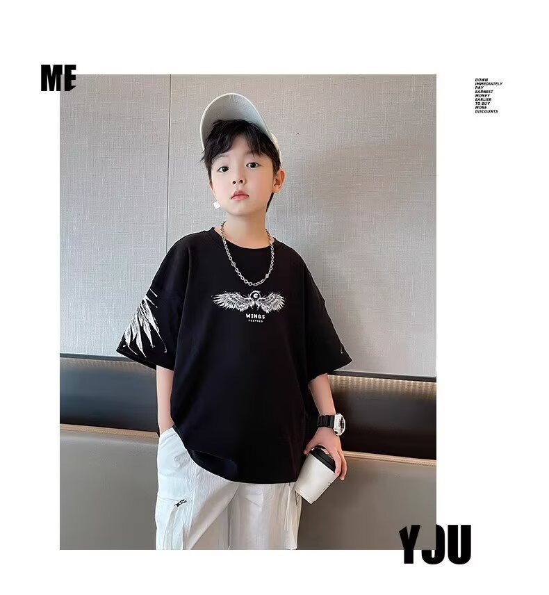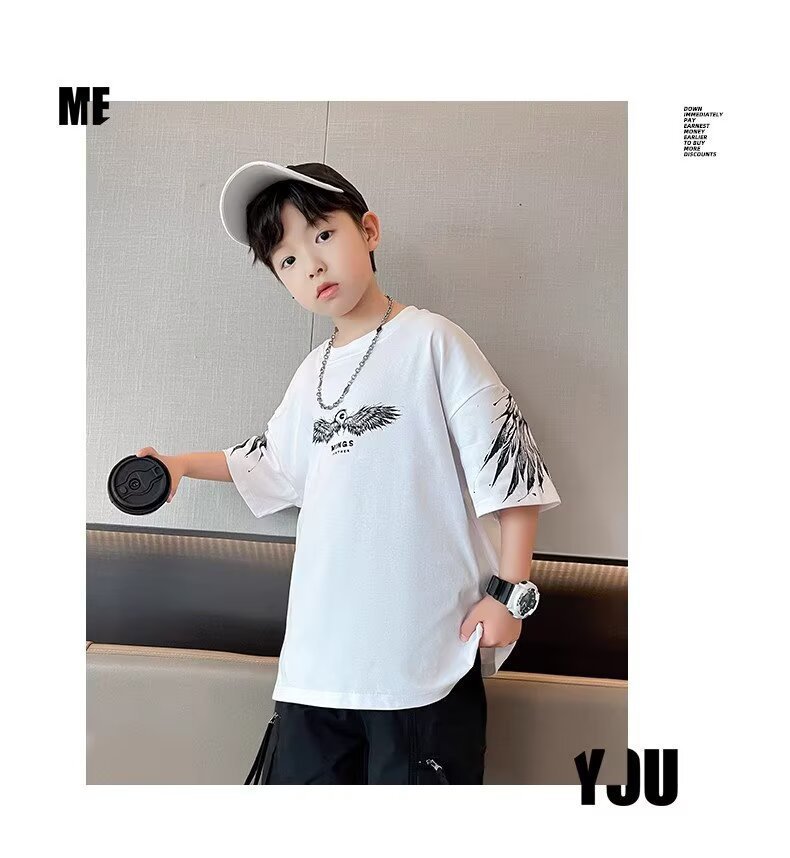 아동복 소년 여름 티셔츠 2025 한국어 버전 새로운 아동복 여름 중대형 아동 반팔 여름 소년 유행 T