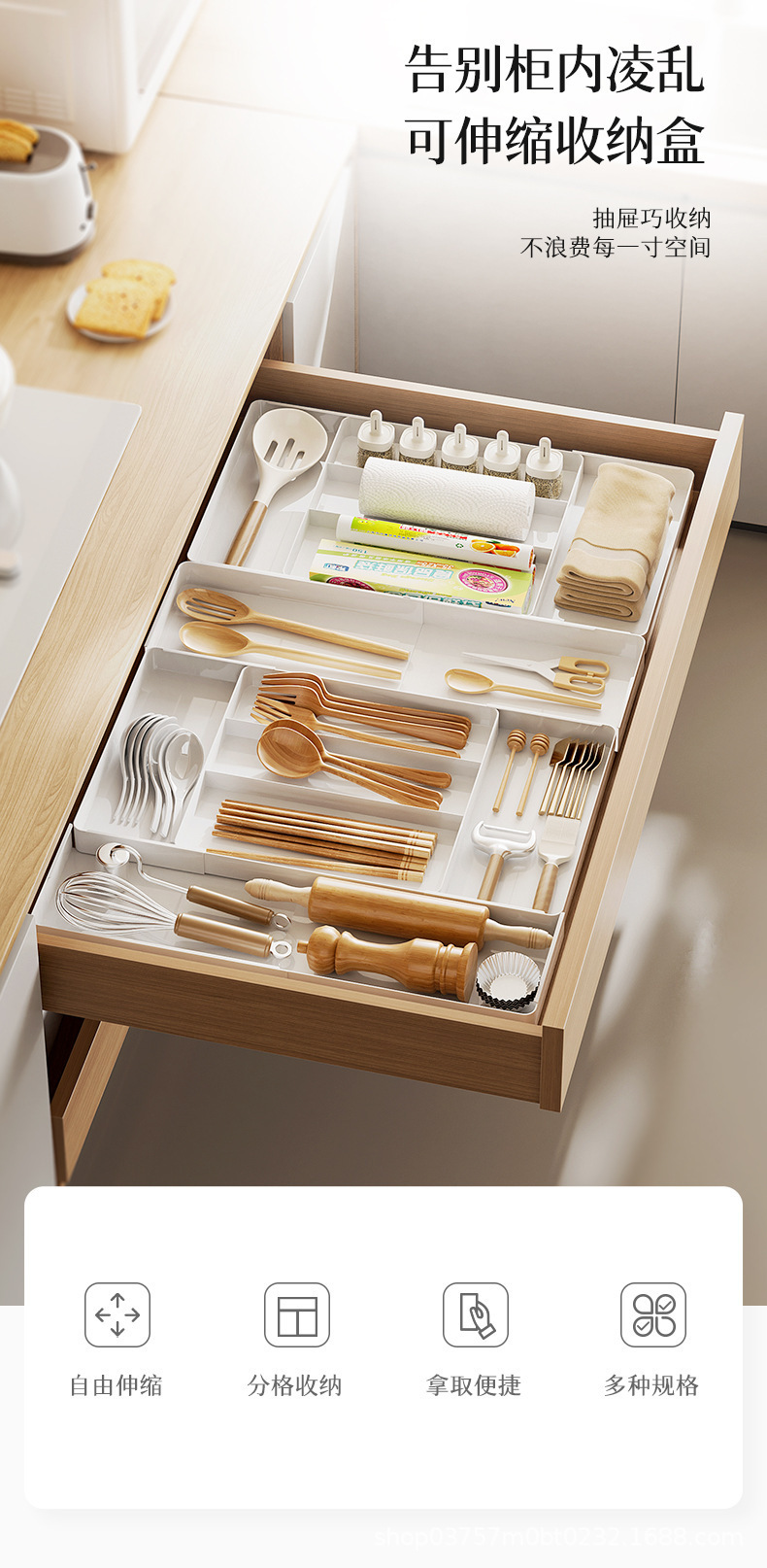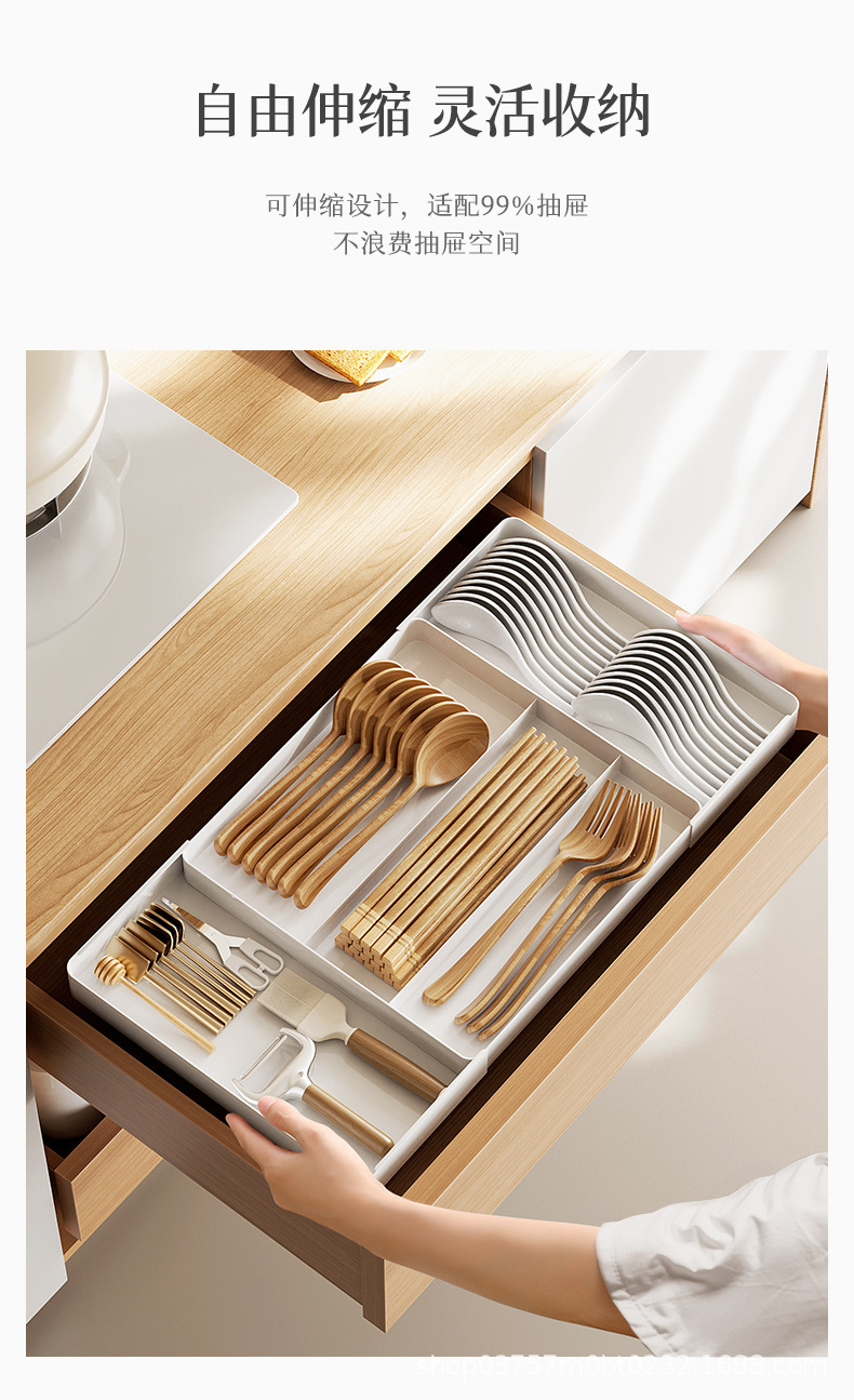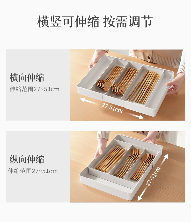 抽屉分格收纳盒可伸缩家用厨房多功能分隔盒餐具刀叉勺筷子整理盒