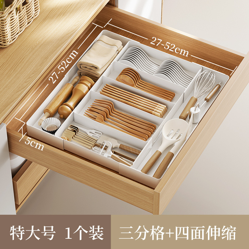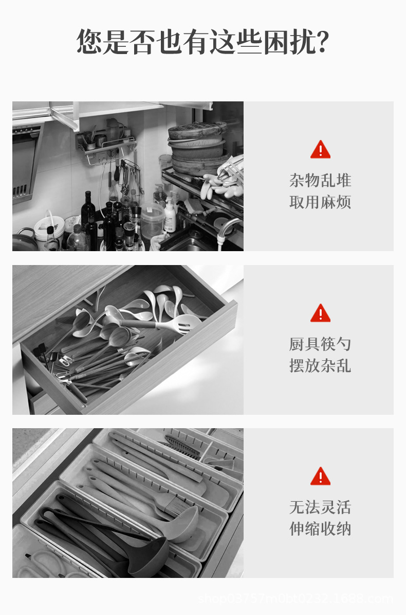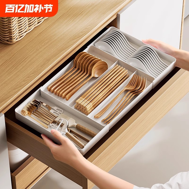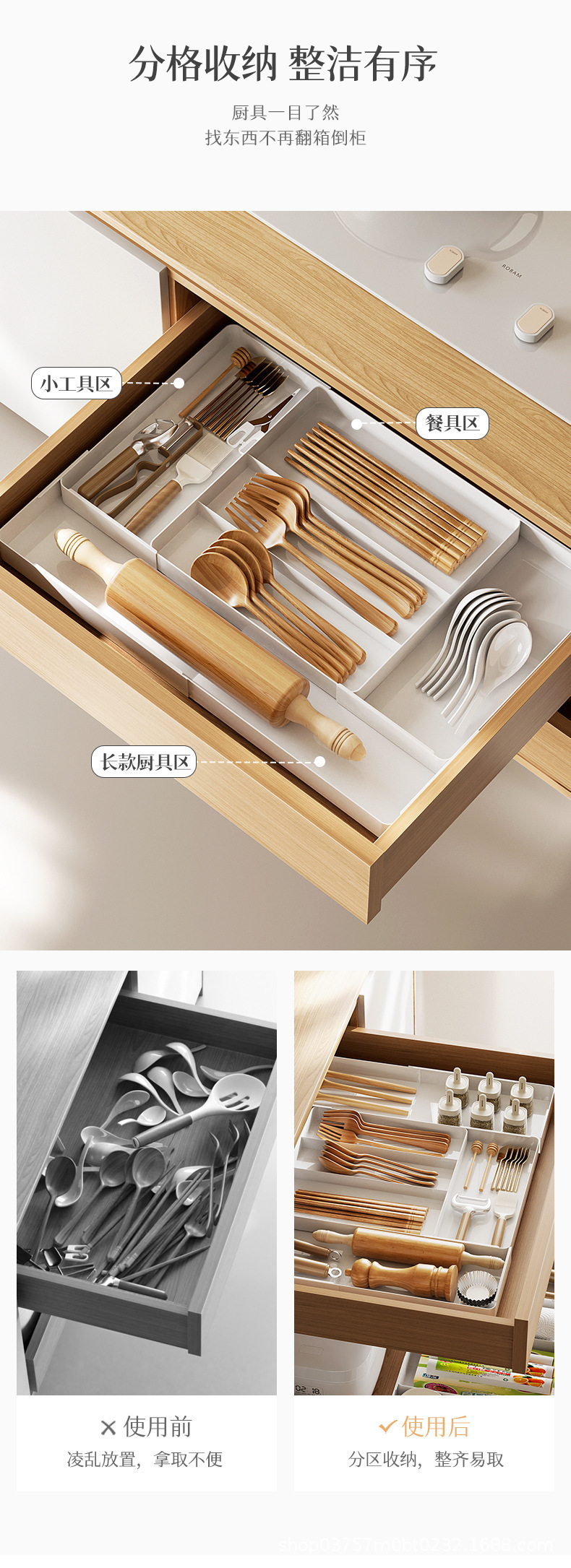 抽屉分格收纳盒可伸缩家用厨房多功能分隔盒餐具刀叉勺筷子整理盒