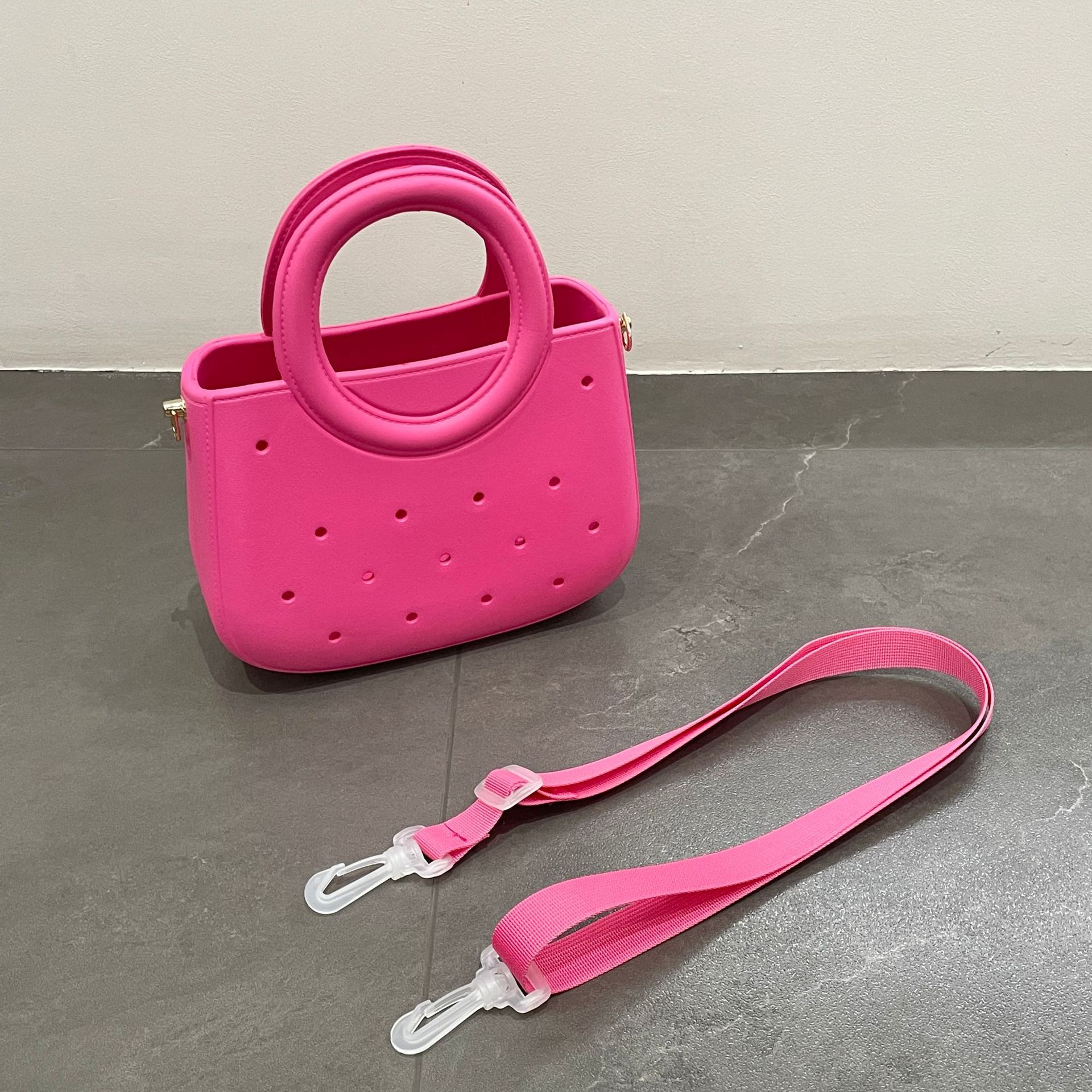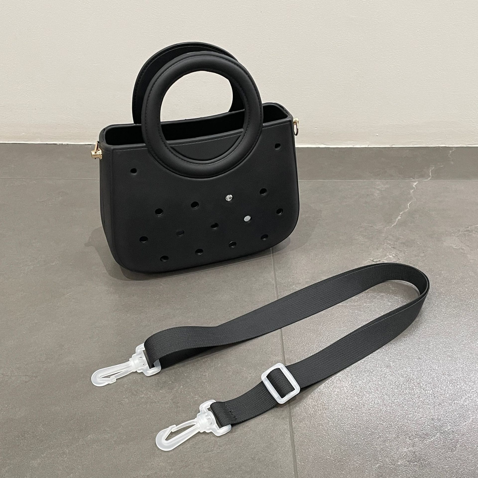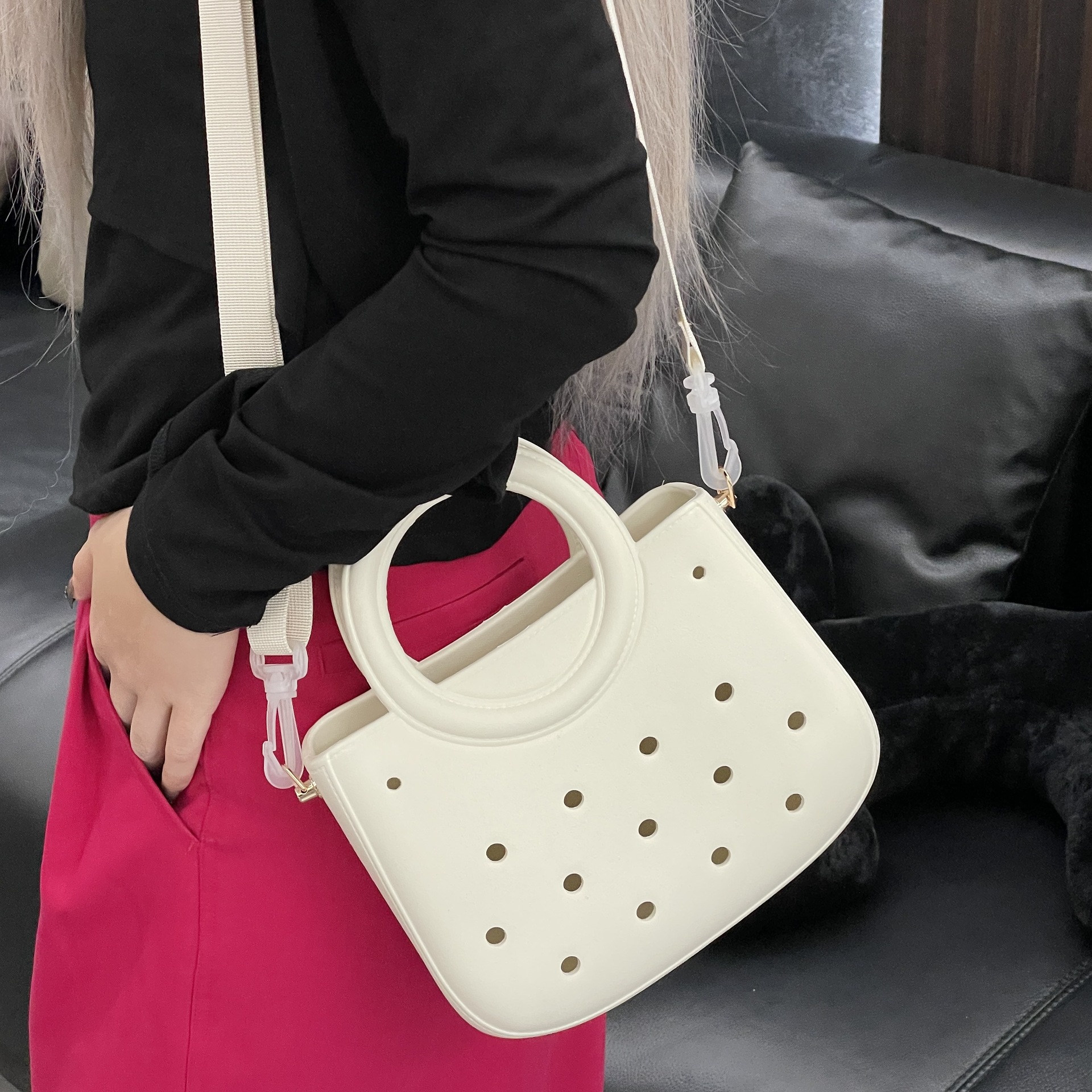 새로운 국경 간 eva 가방 젤리 핸드백 구멍 크로스 바디 백 보관 가방 방수 및 내마모성 싱글 숄더 여성용 가방스토어 가기