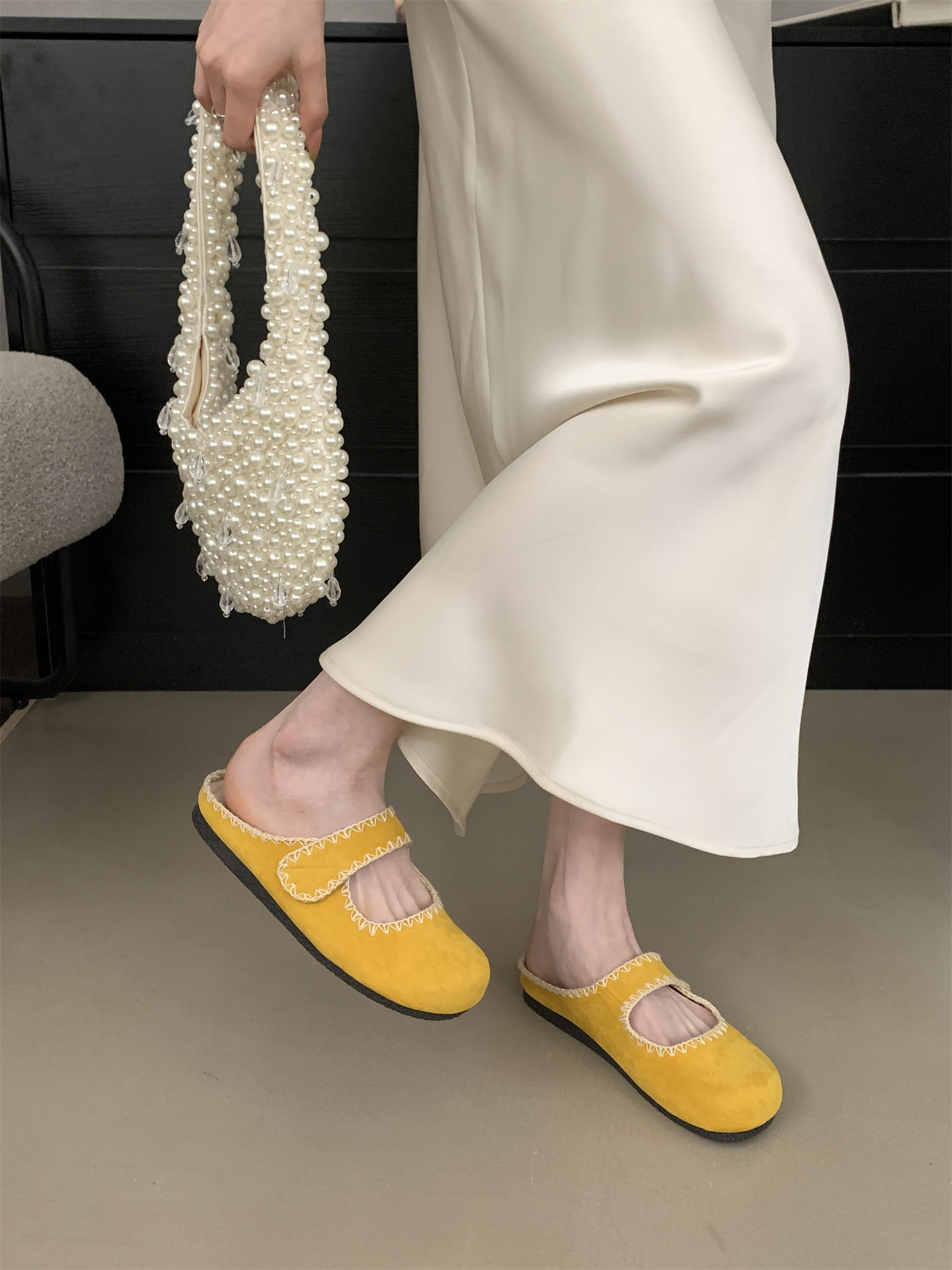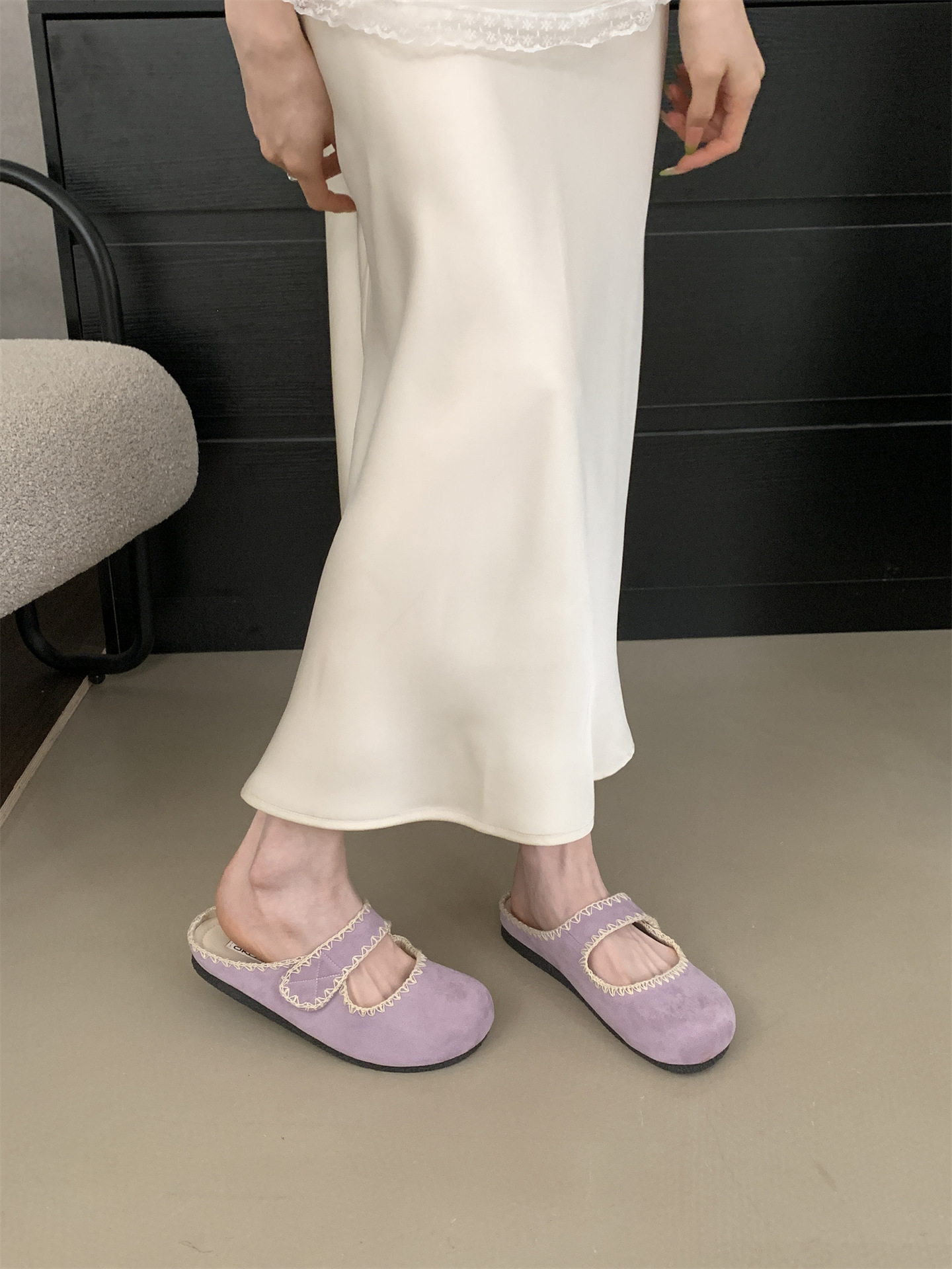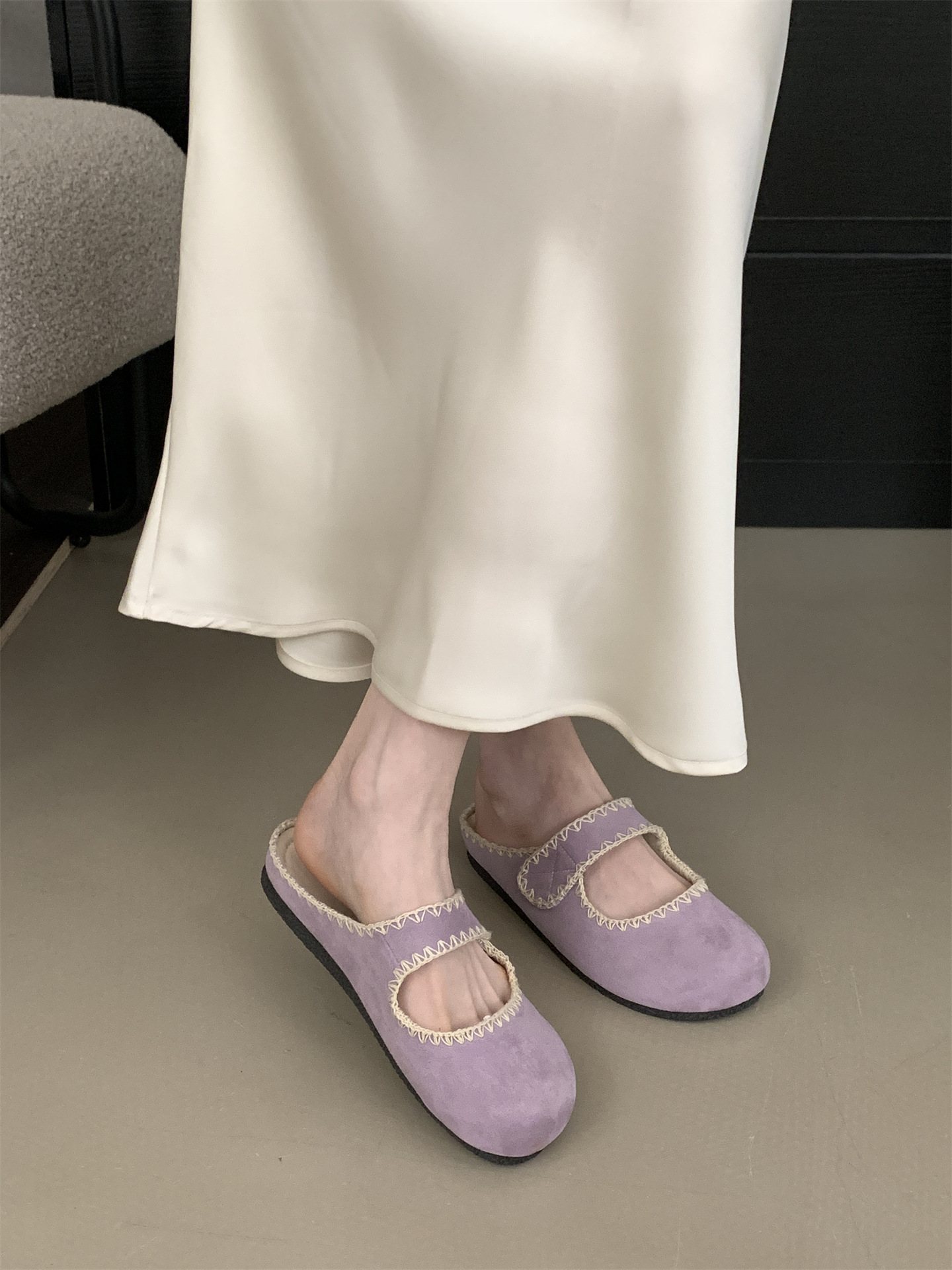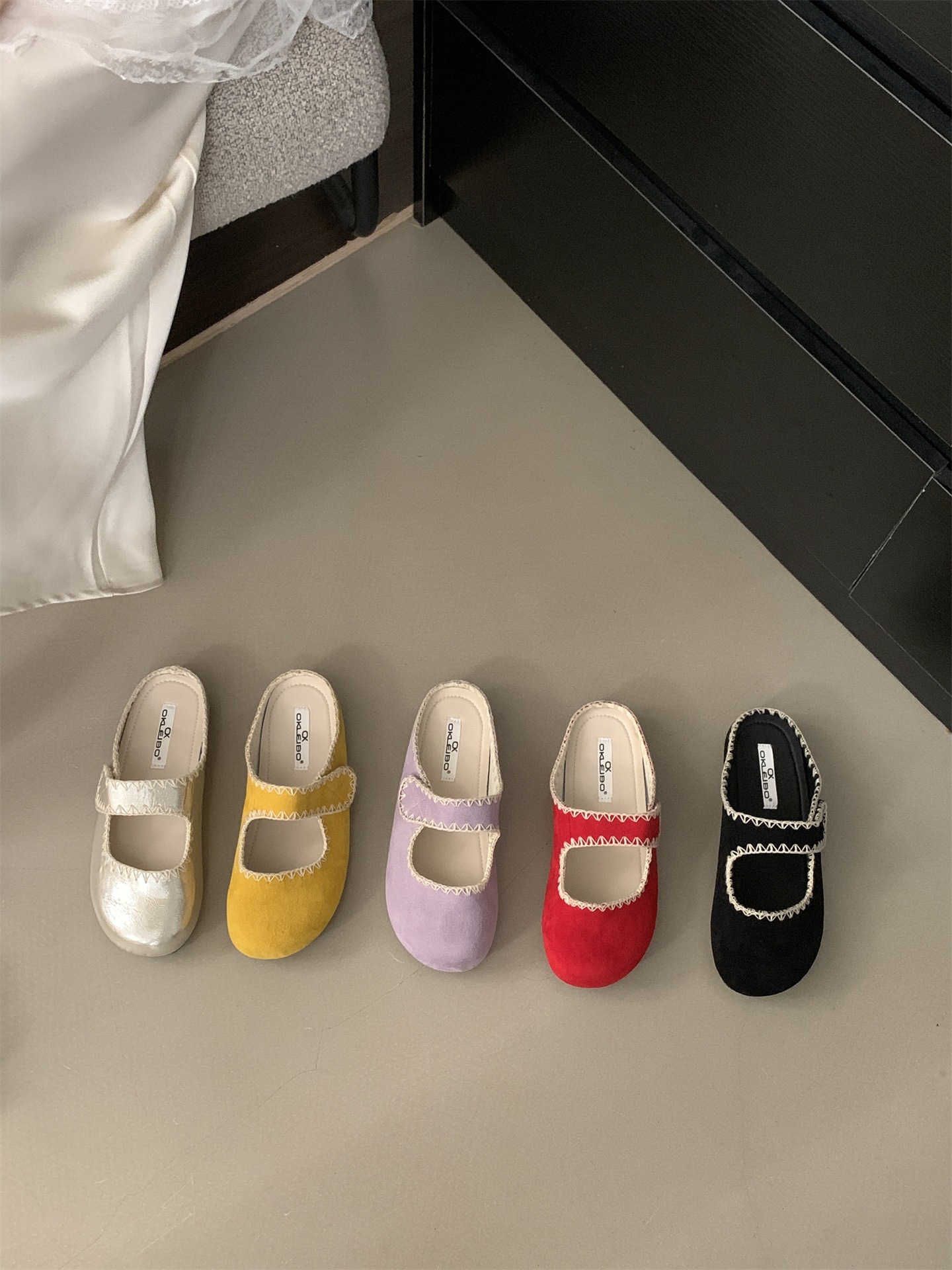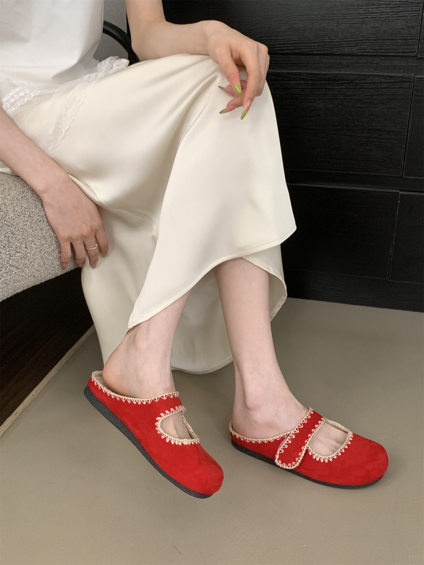 여성용 레트로 페어리 스타일 바오터우 하프 슬리퍼, 스커트와 함께 착용하는 2025 여름 플랫 뮬러 슈즈, 메리 제인 샌들스토어 가기