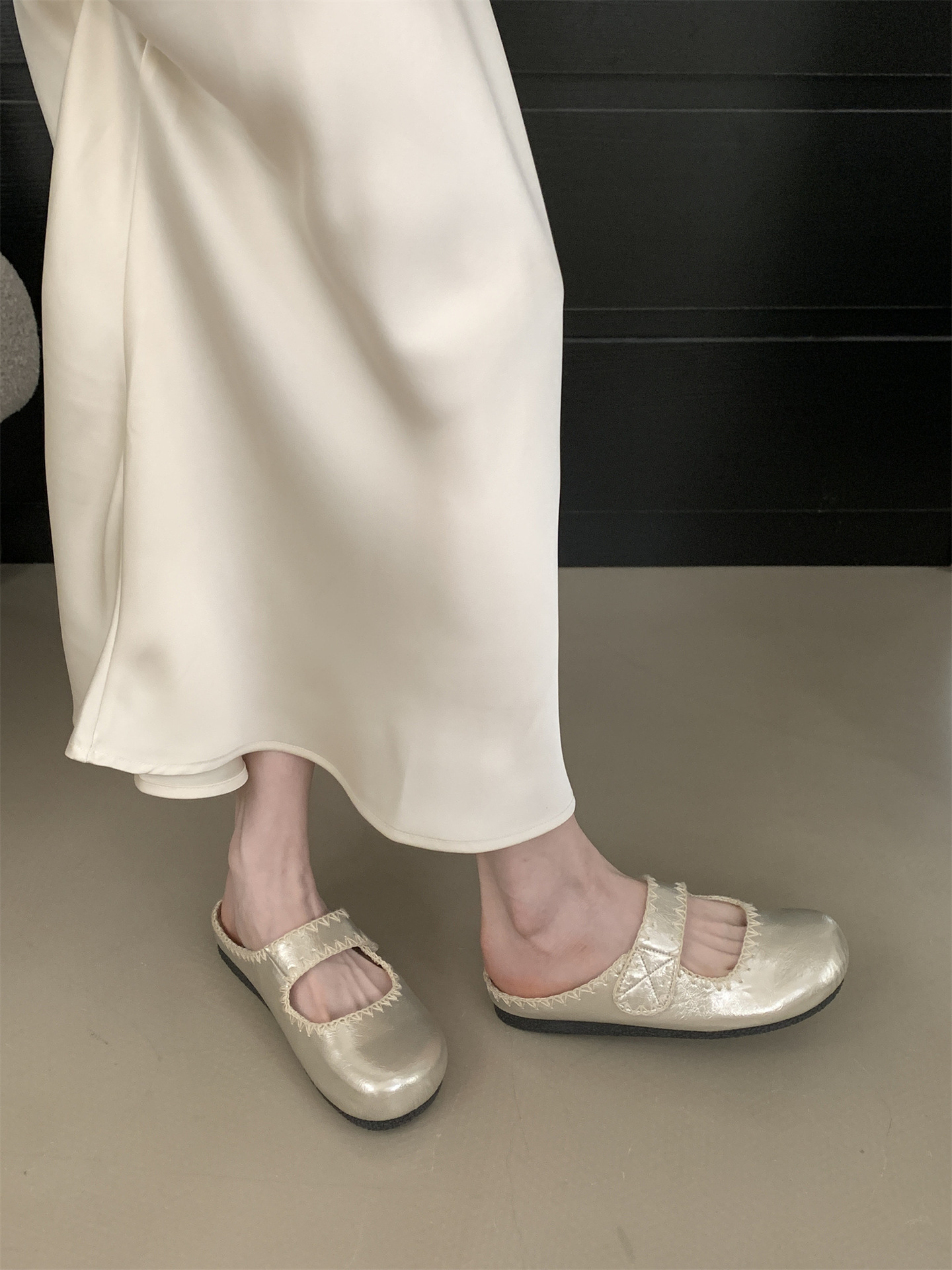 여성용 레트로 페어리 스타일 바오터우 하프 슬리퍼, 스커트와 함께 착용하는 2025 여름 플랫 뮬러 슈즈, 메리 제인 샌들