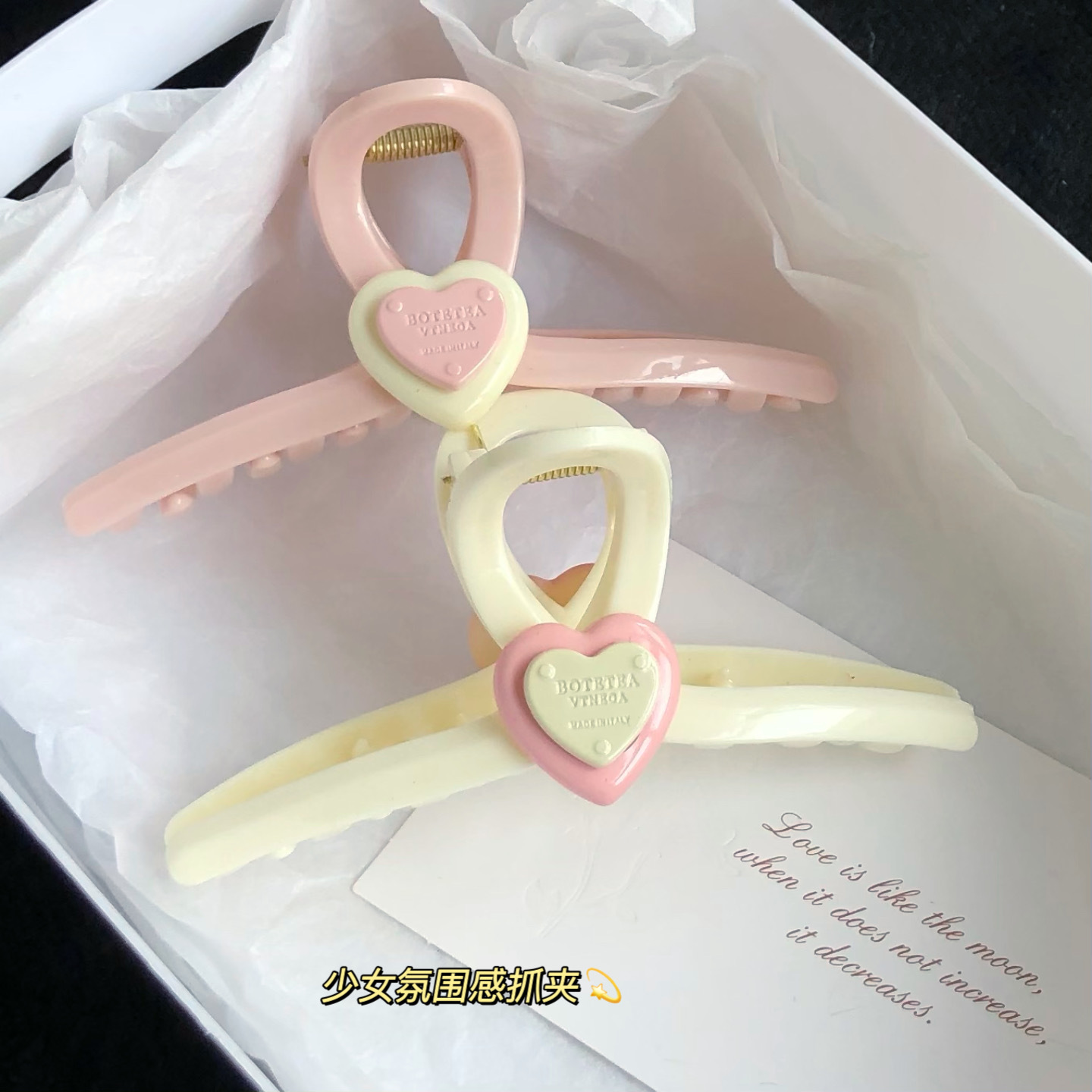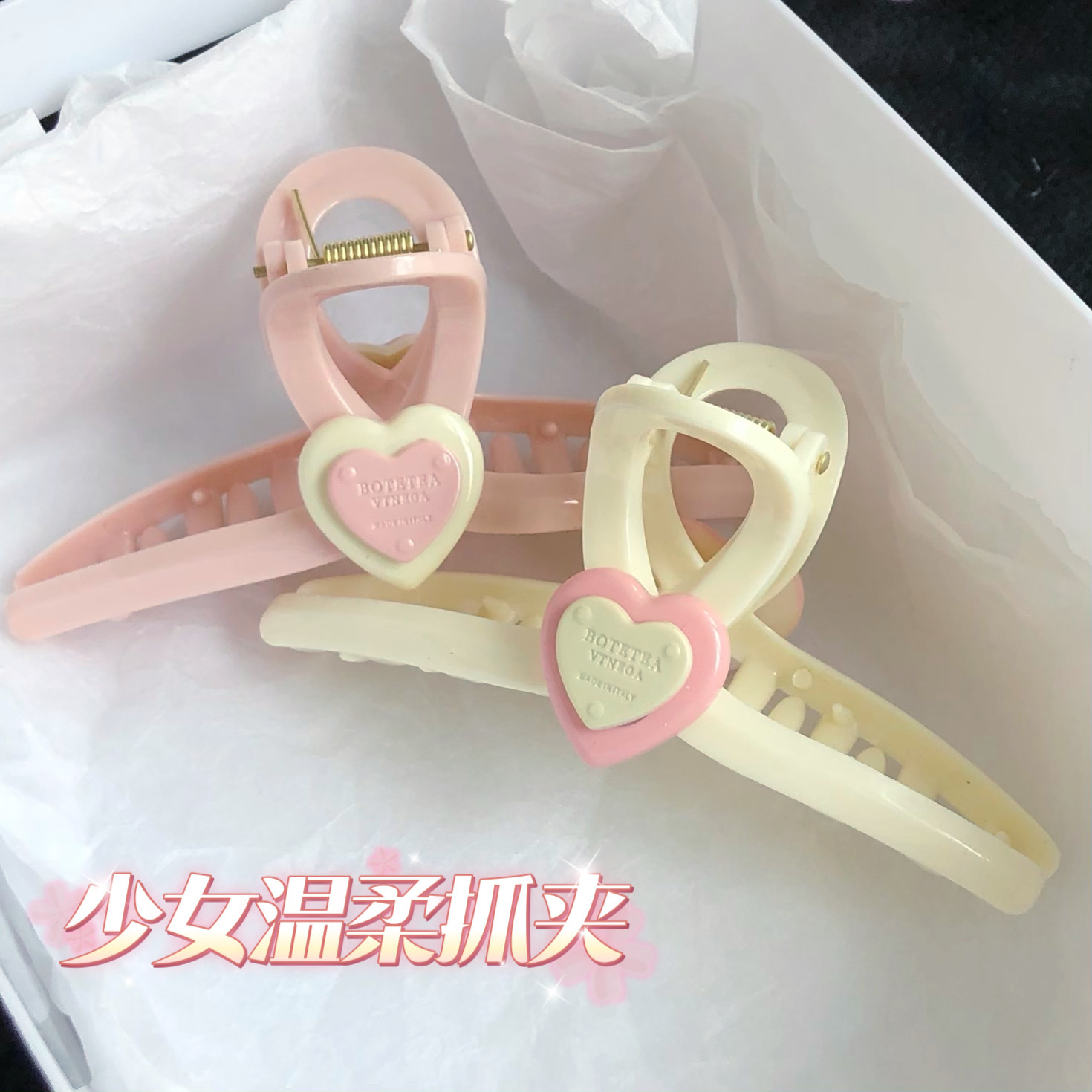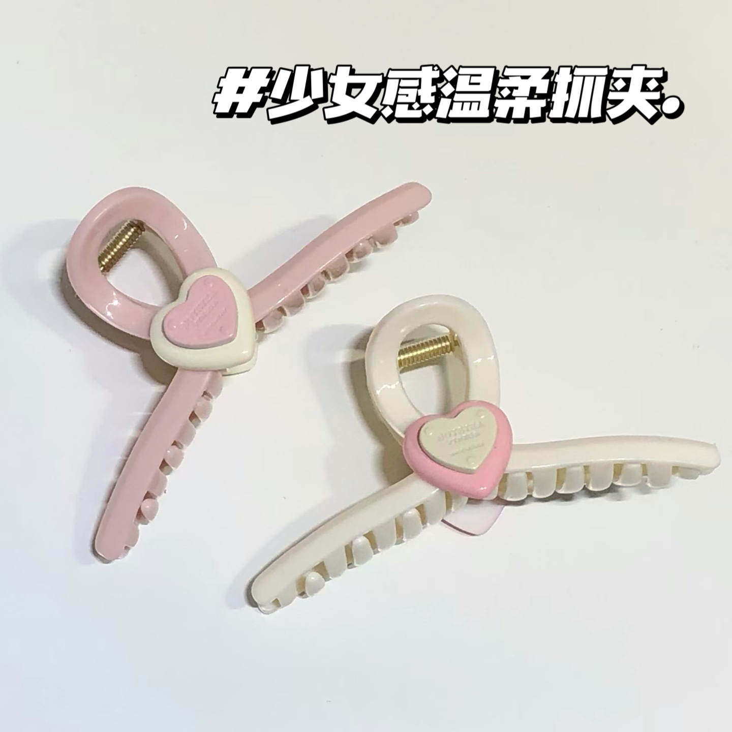 젠틀걸리크 러브레터 집게, 크림핑크 샤크클립, 달콤한 대형 머리 집게, 심플한 뒷머리 집게