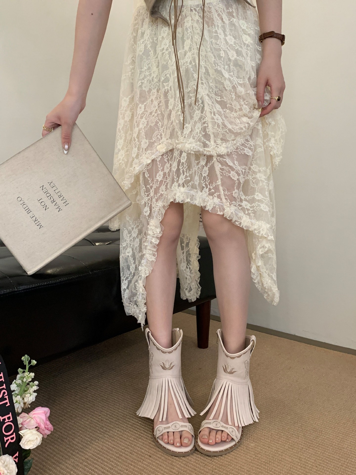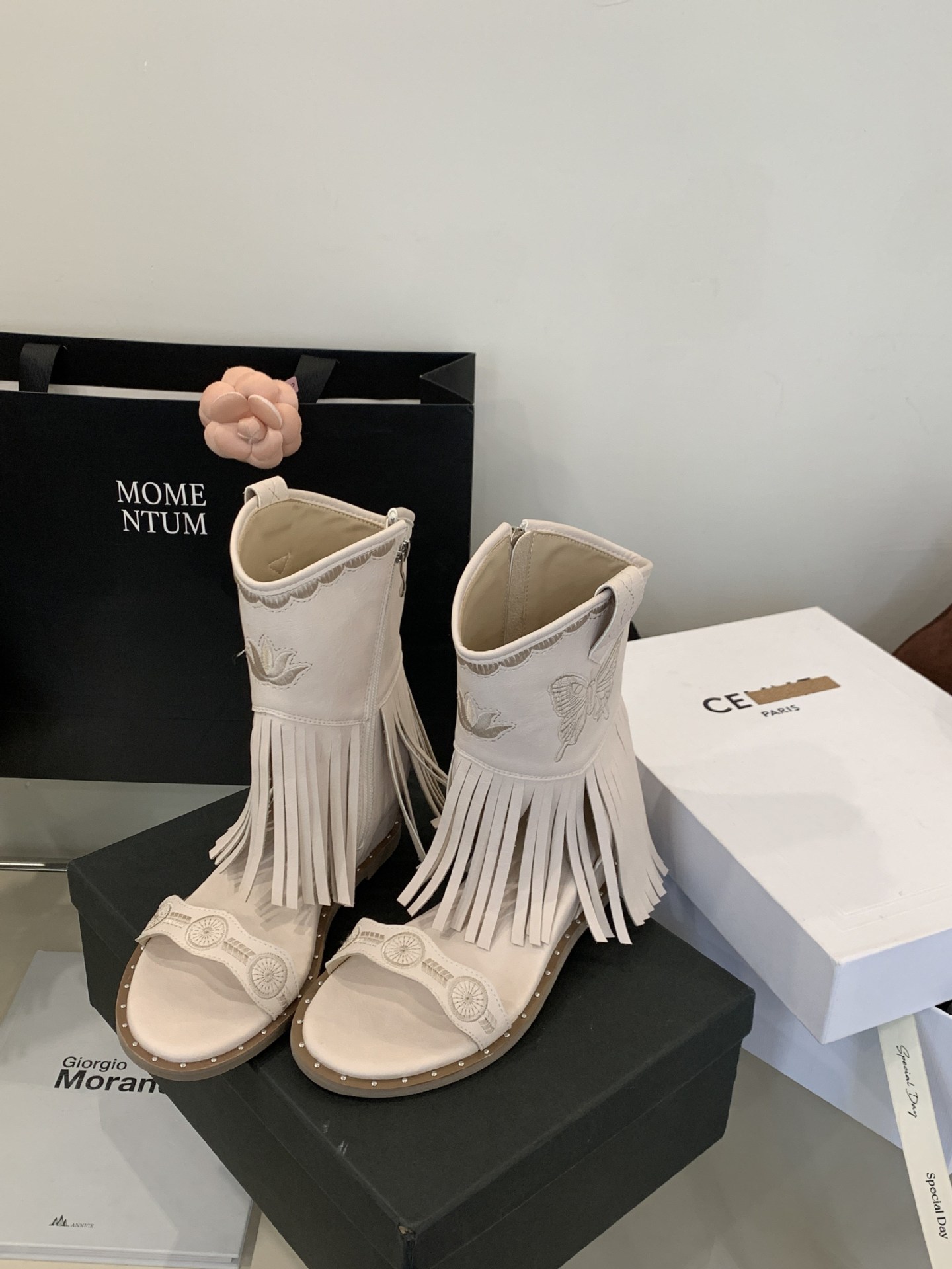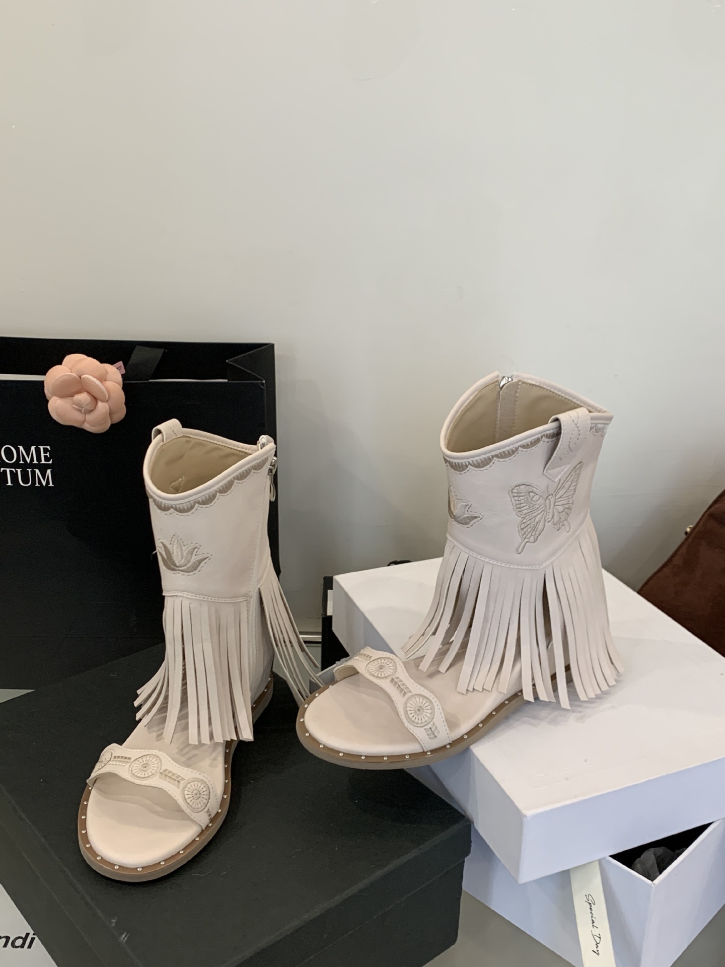 추구 2025 신상 여름 샌들, 나비 자수 태슬 하이힐, 겉옷과 안에 착용 가능