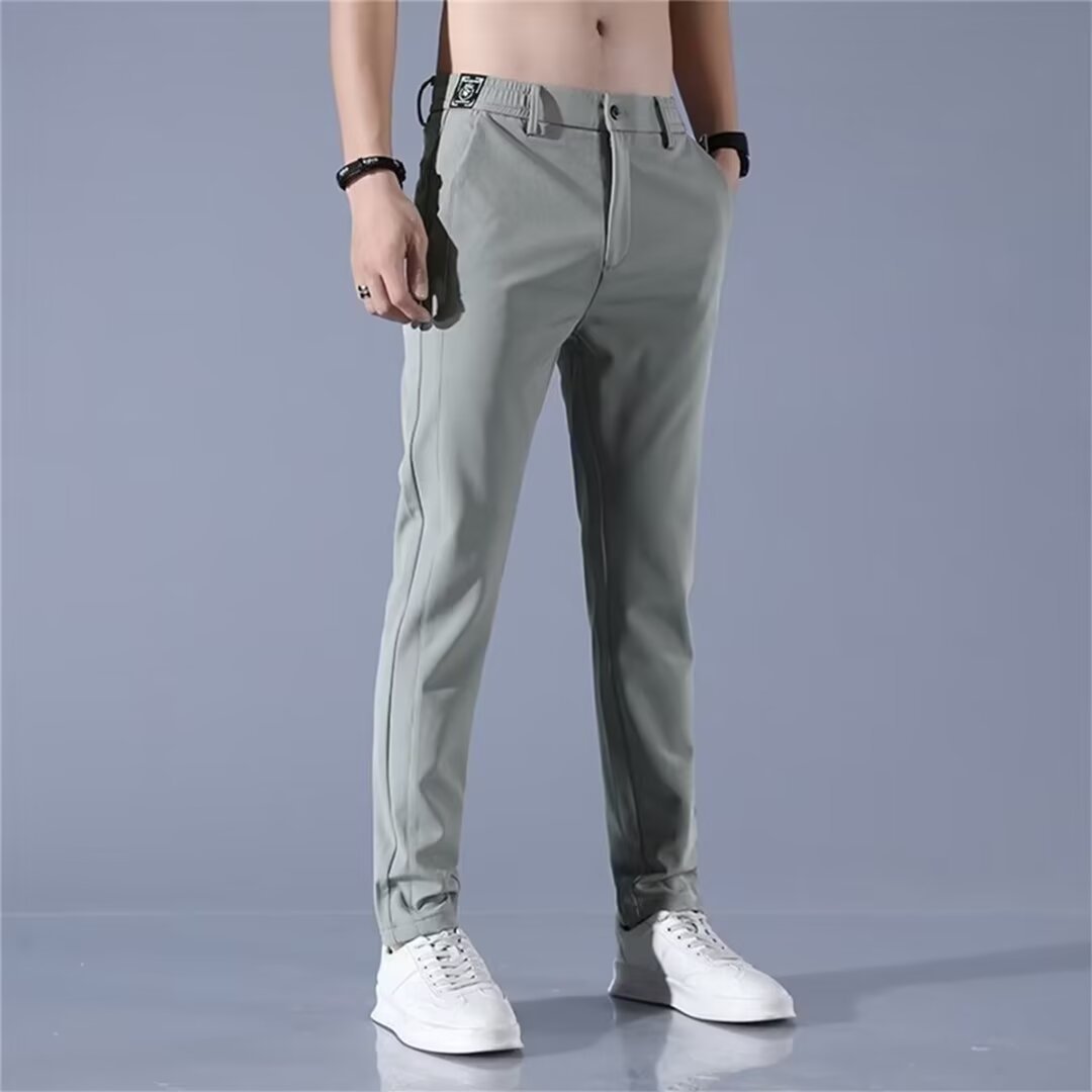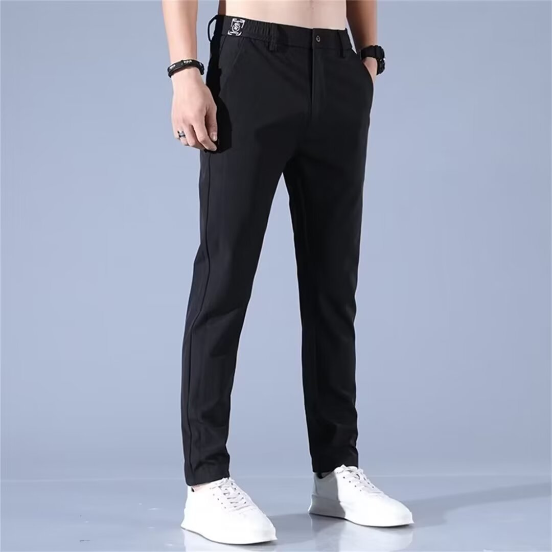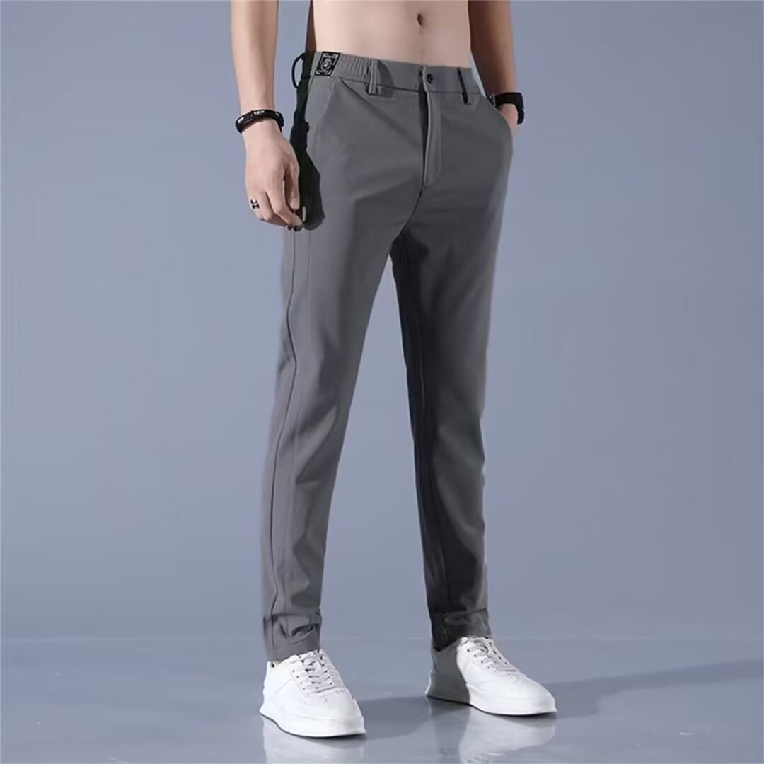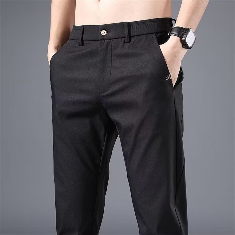 남성용 크로스보더 여름 얇은 캐주얼 바지, 남성용 루즈한 아이스 실크 속건성 스트레이트 팬츠, AliExpress Ready Stock